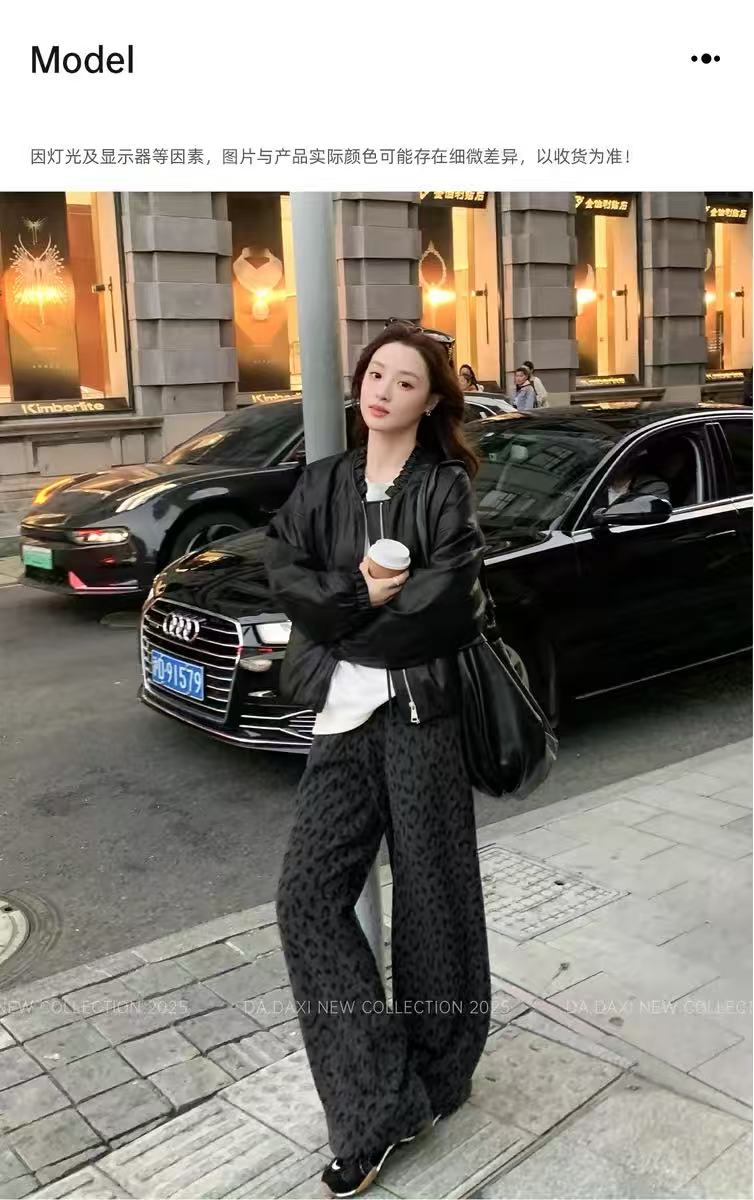🔥🔥🔥加绒【爆款休闲裤】豹纹加绒~8730拼色腰头豹纹直筒裤冬季加绒休闲裤-喜出