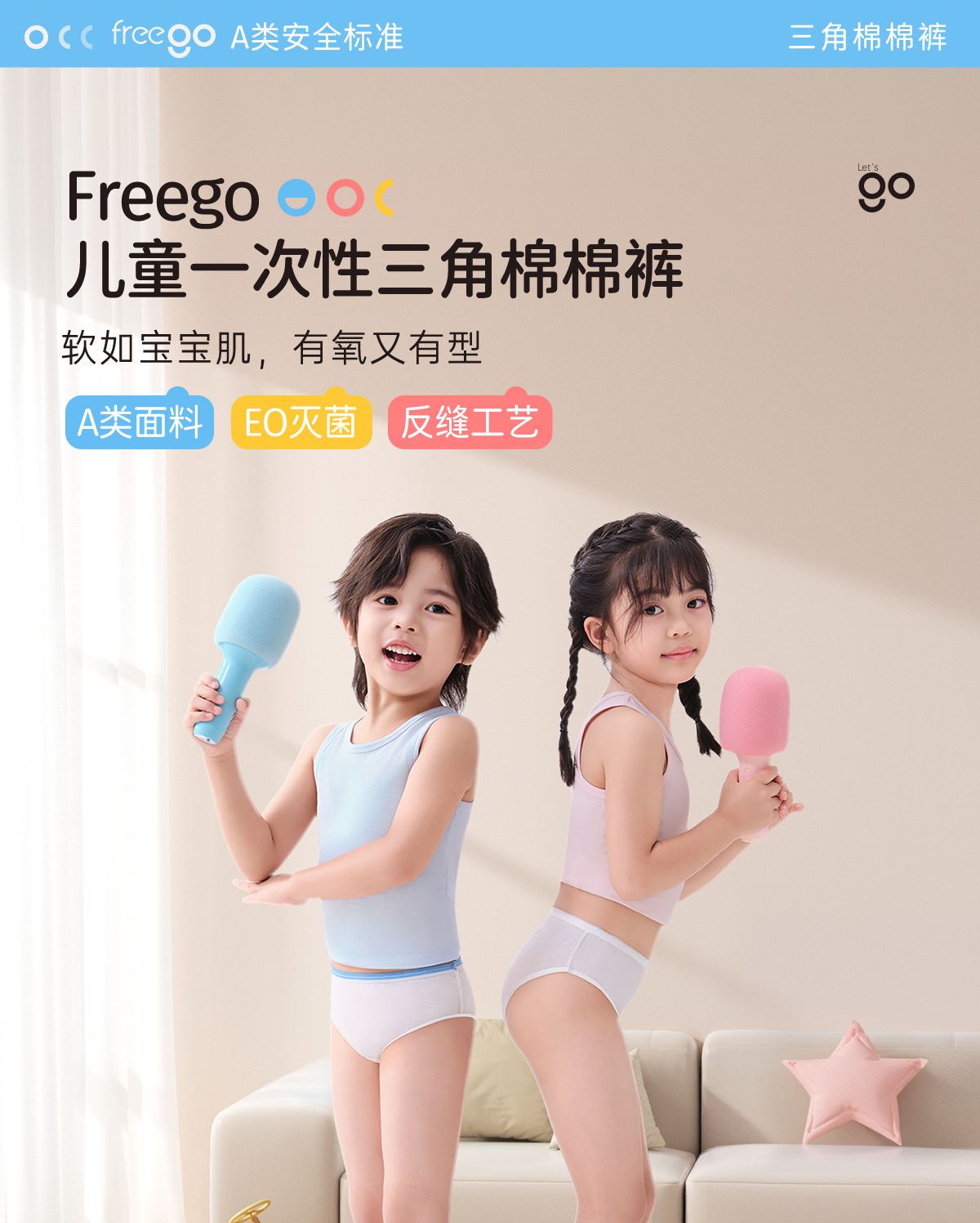 【无菌级】Freego「三角款」5A抗菌儿童A类一次性内裤男女学生全棉吸汗旅行户外免洗短裤5条装