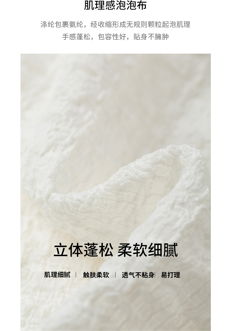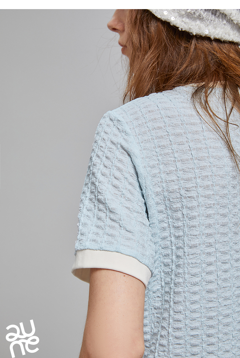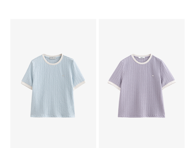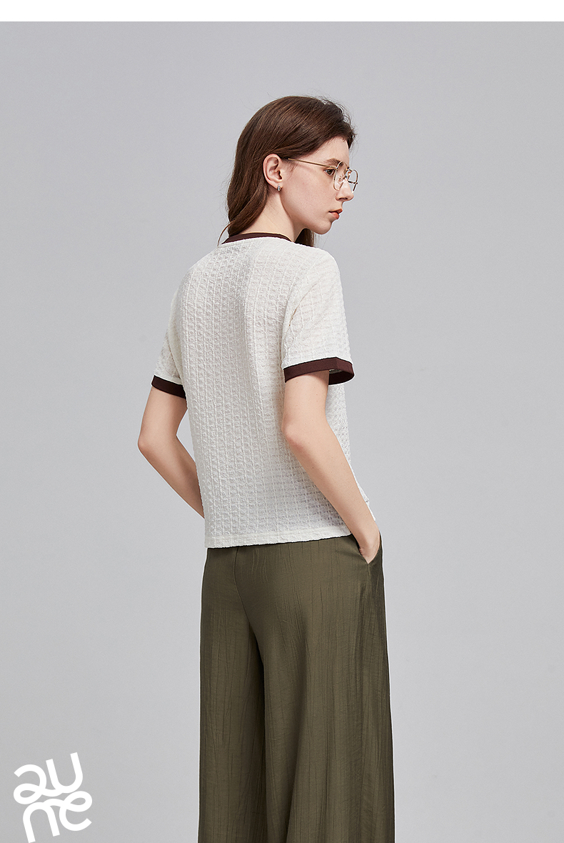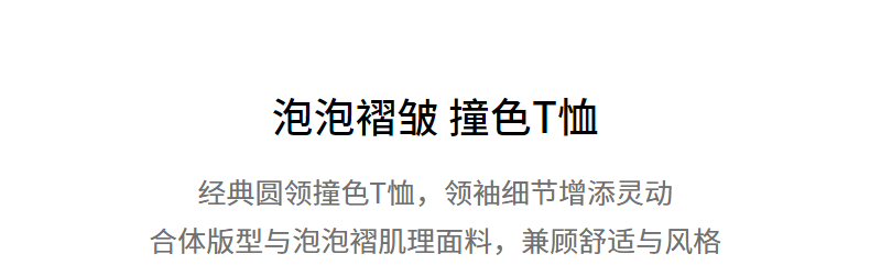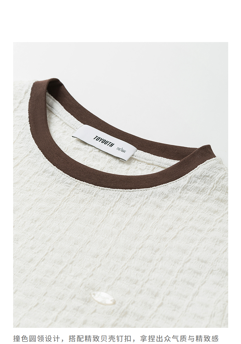 初语浮雕肌理短袖T恤女泡泡褶2025夏季新款撞色圆领别致上衣
