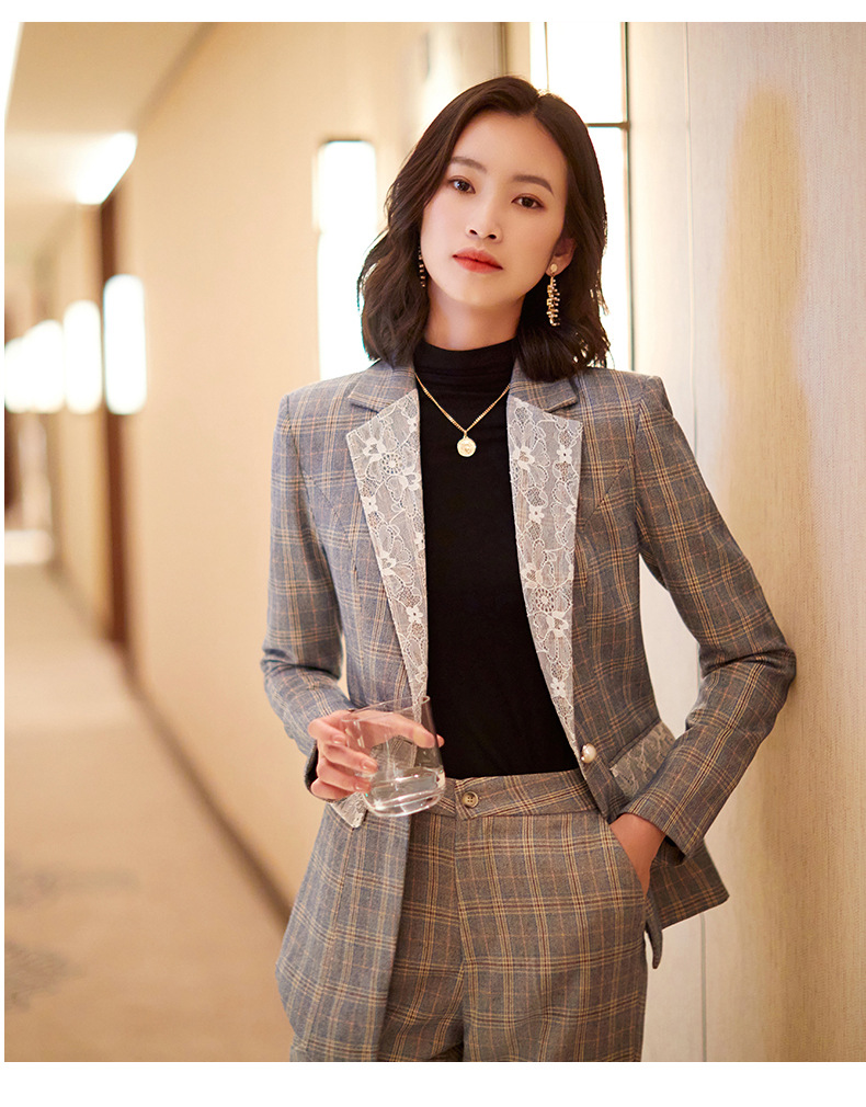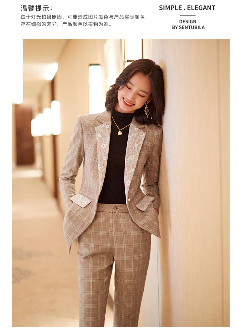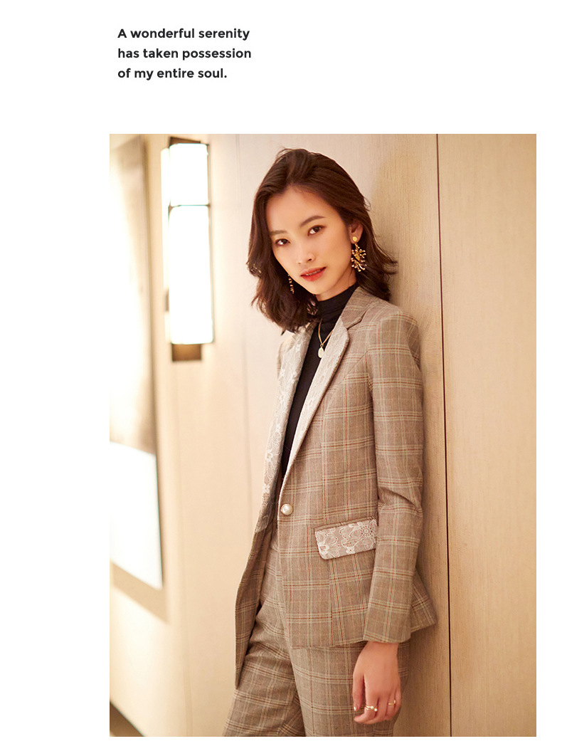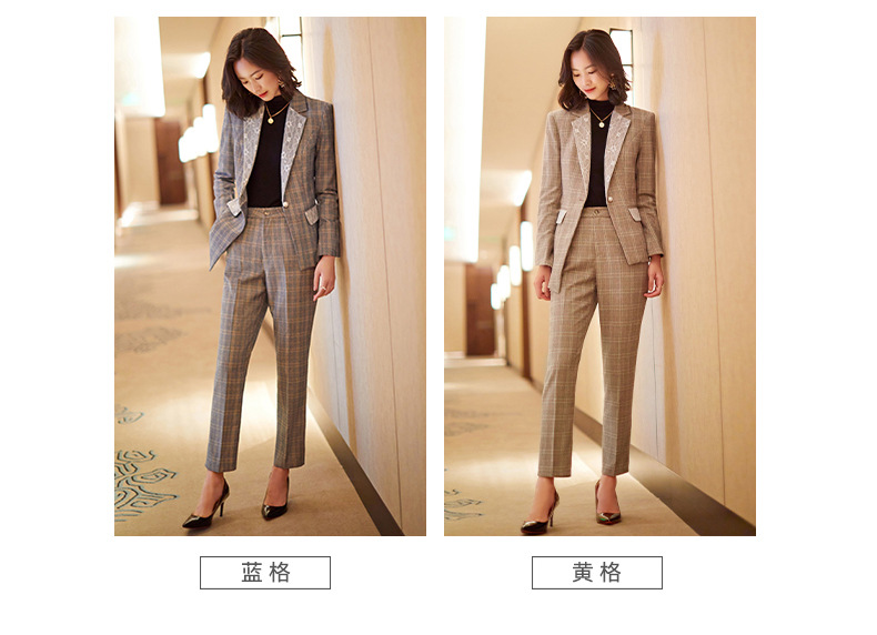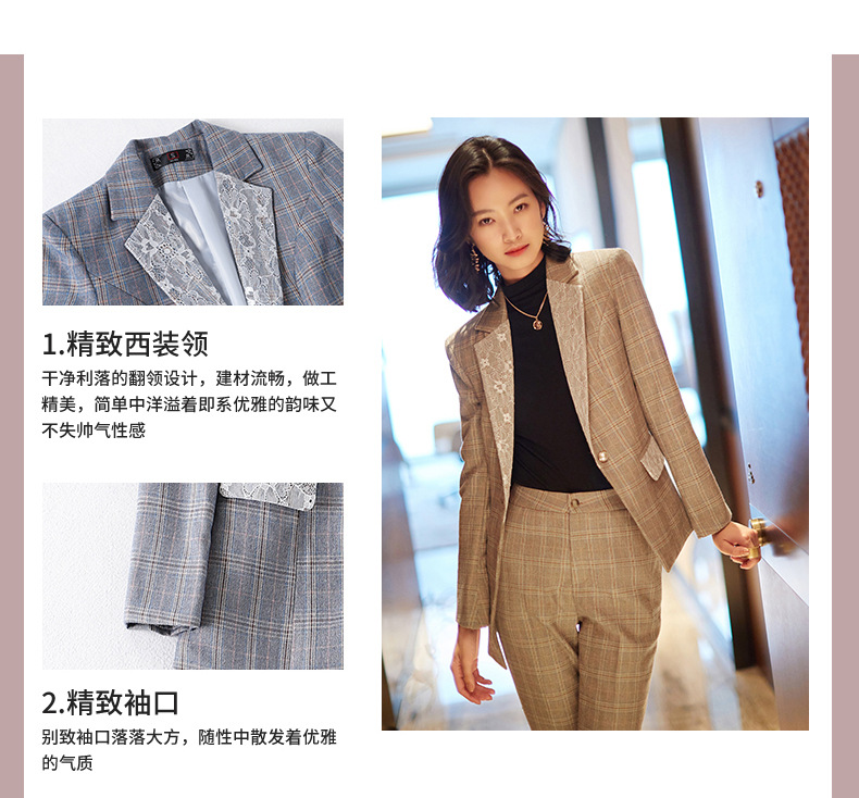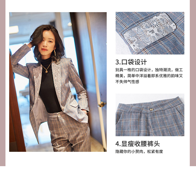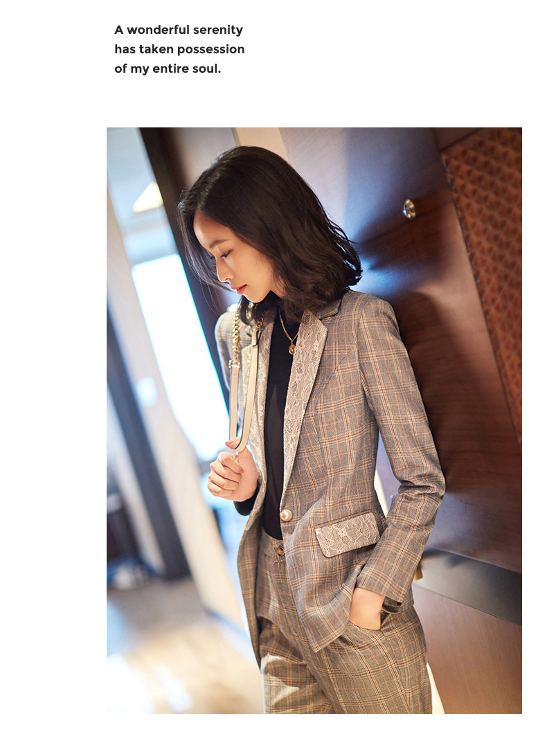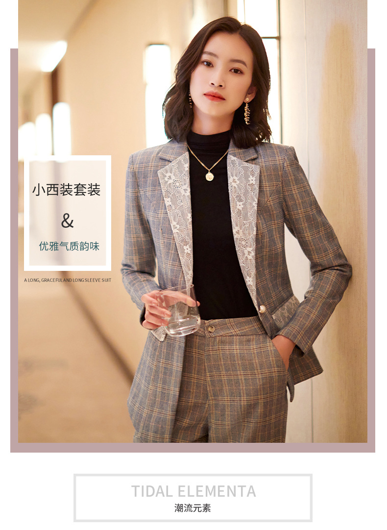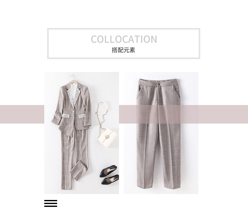 OMW8972KL新款时尚气质修身格纹小西装外套裤子两件套