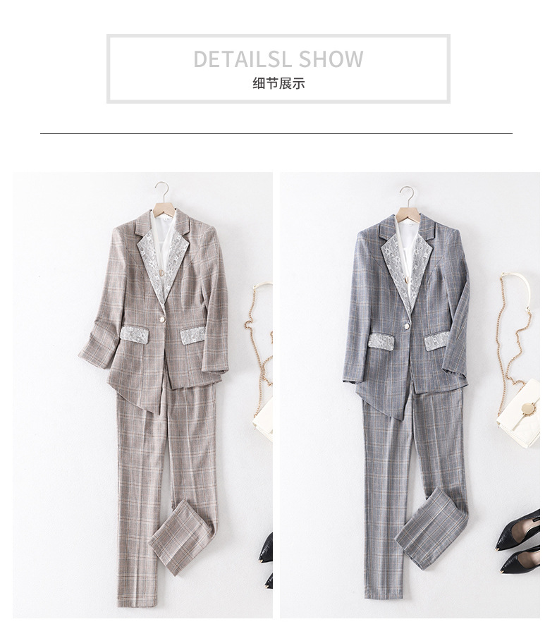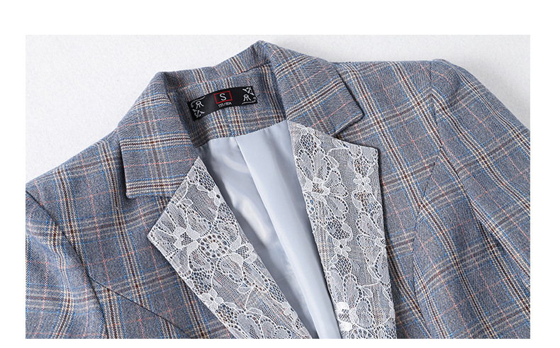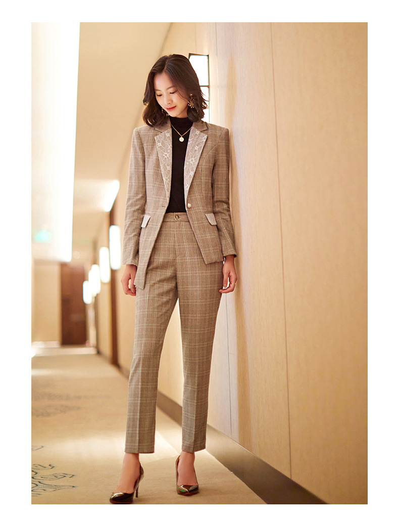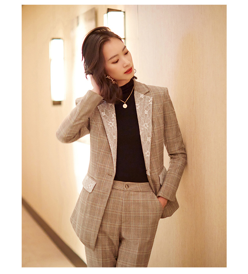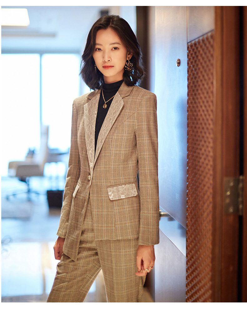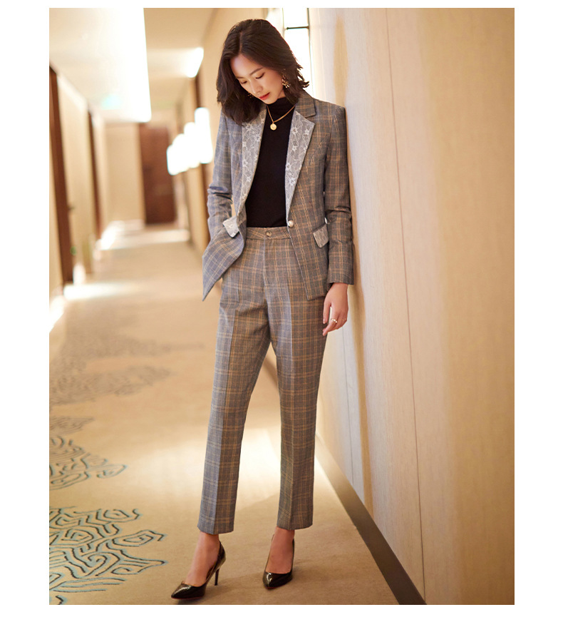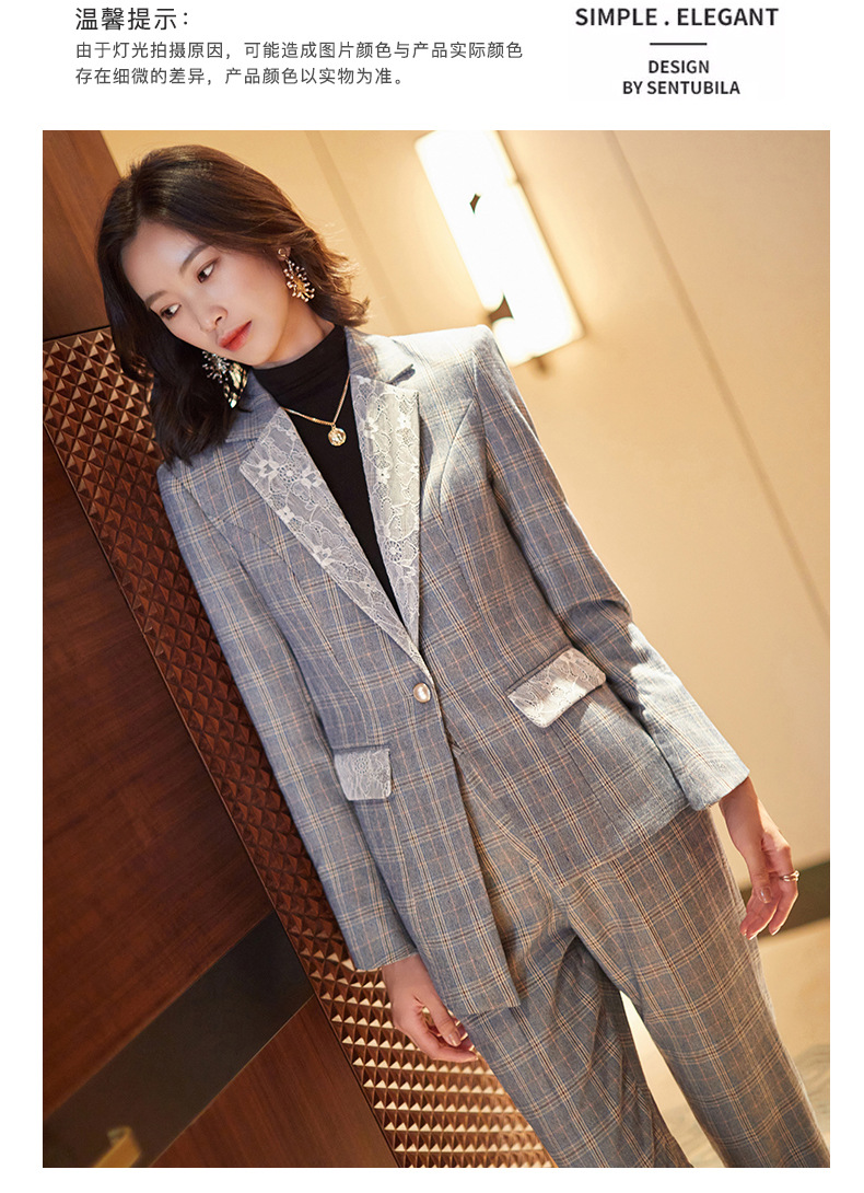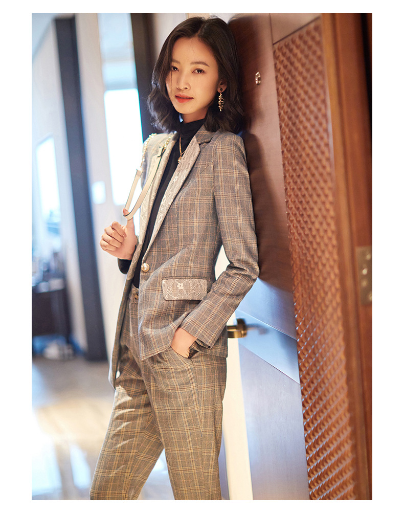 OMW8972KL新款时尚气质修身格纹小西装外套裤子两件套