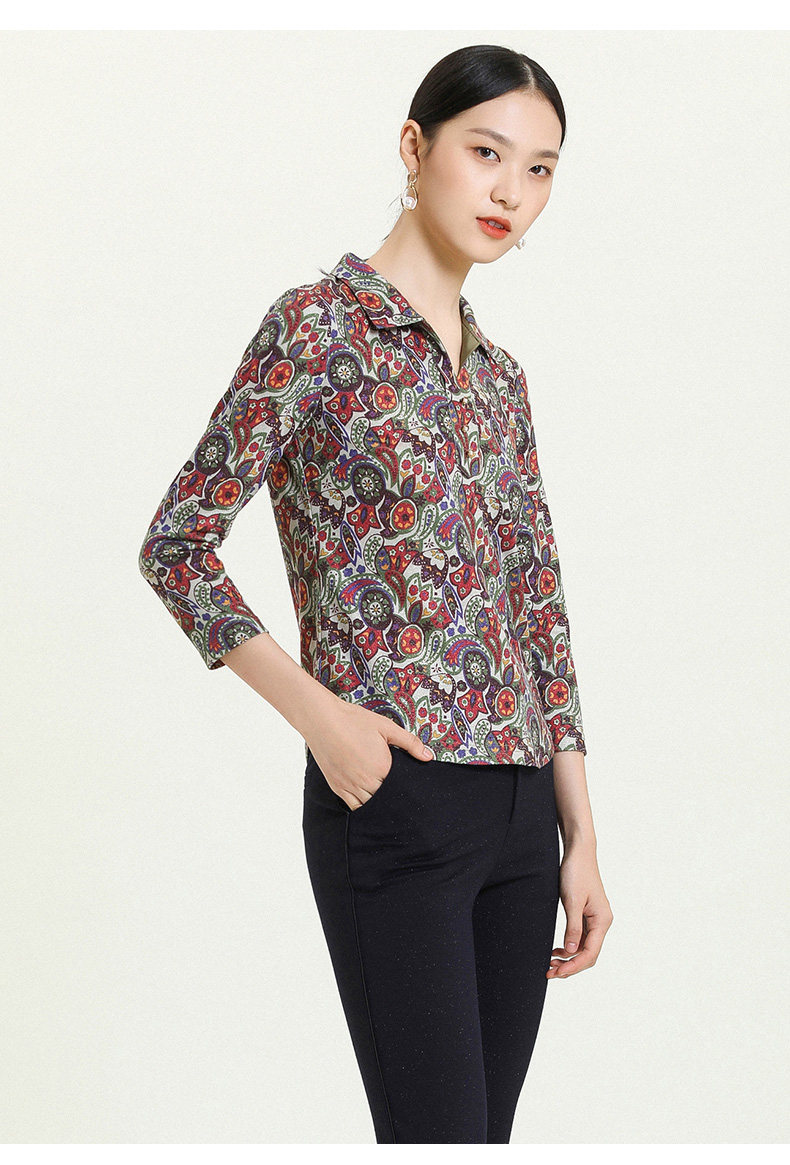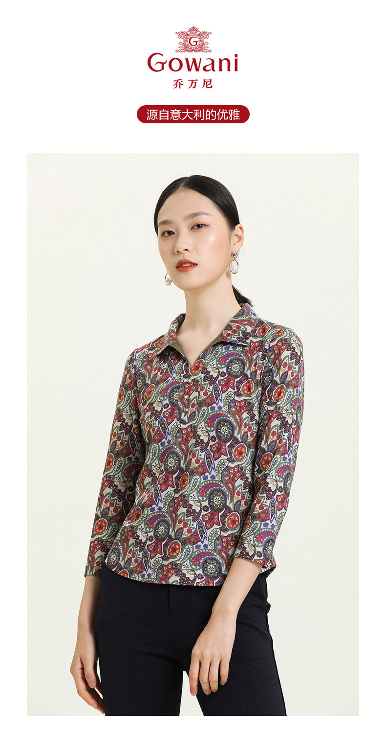 乔万尼秋季新款拼接设计感套头翻领衬衫简约大方舒适简洁上衣ES3C536