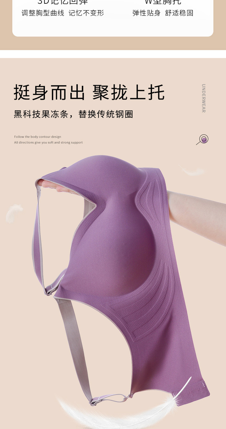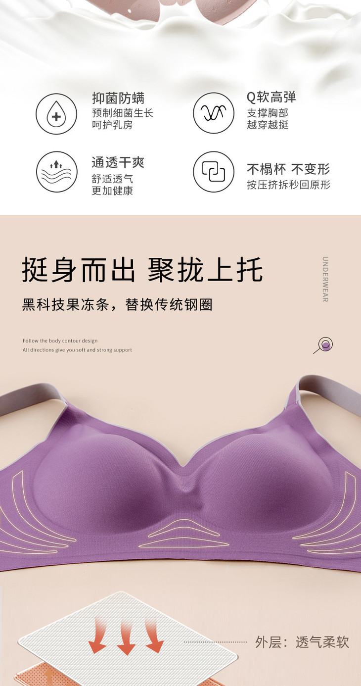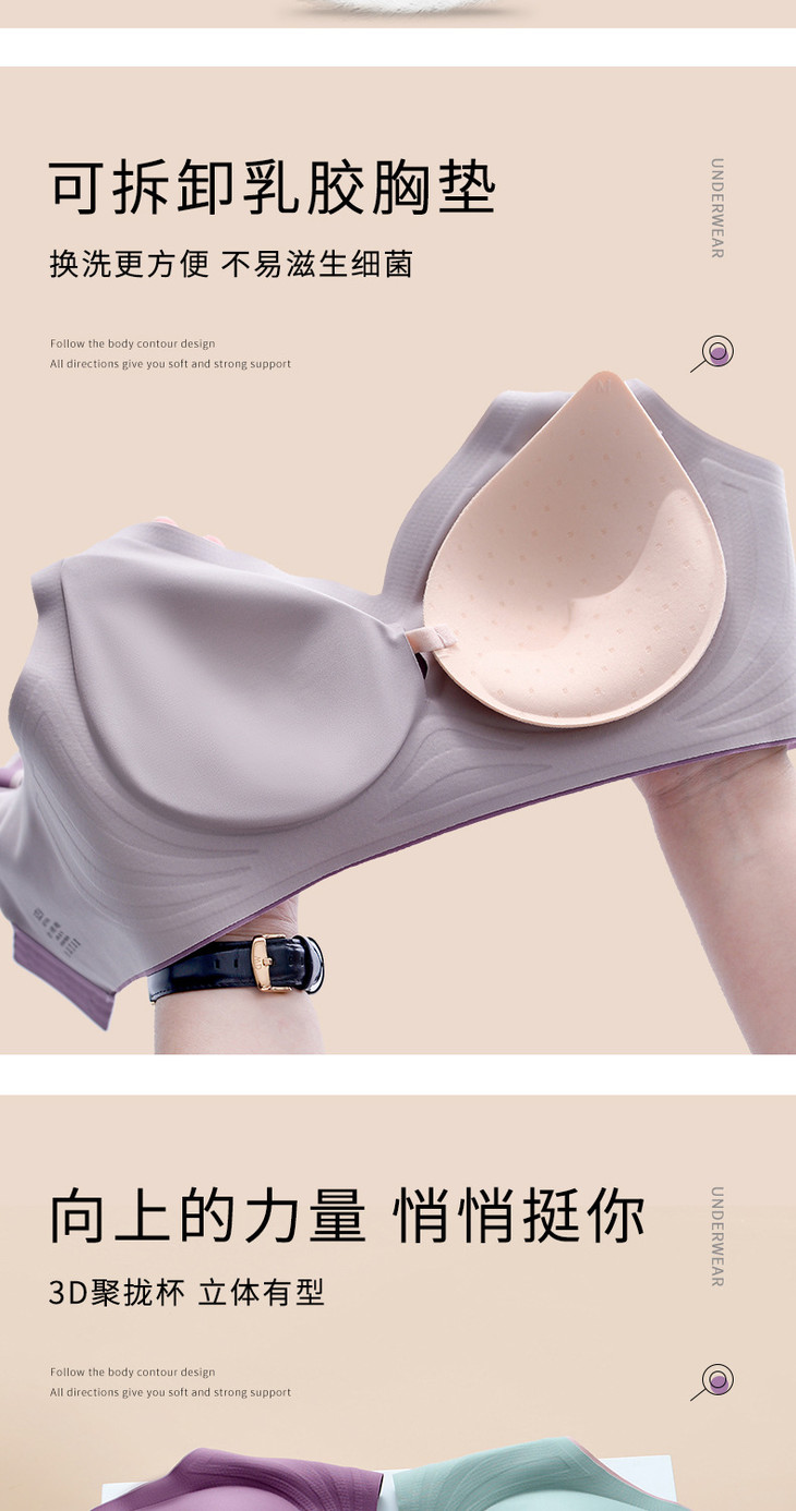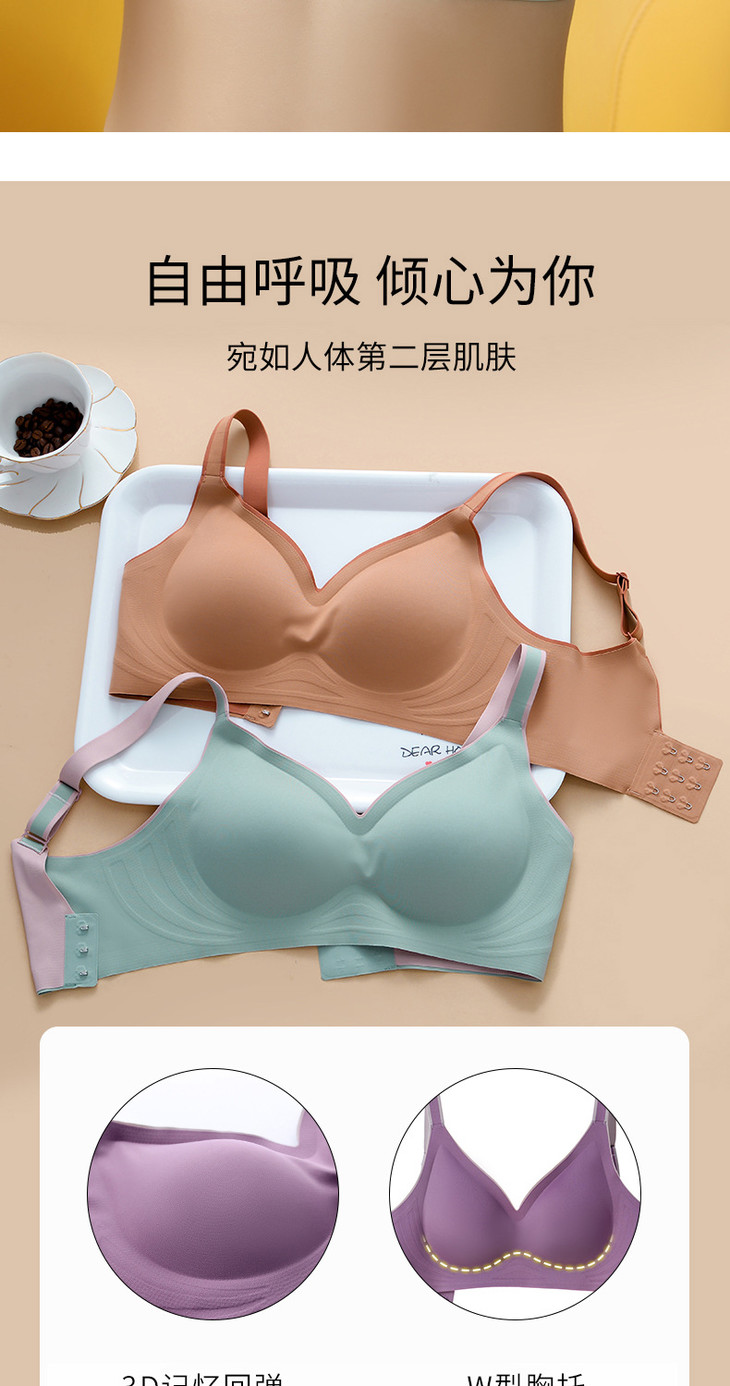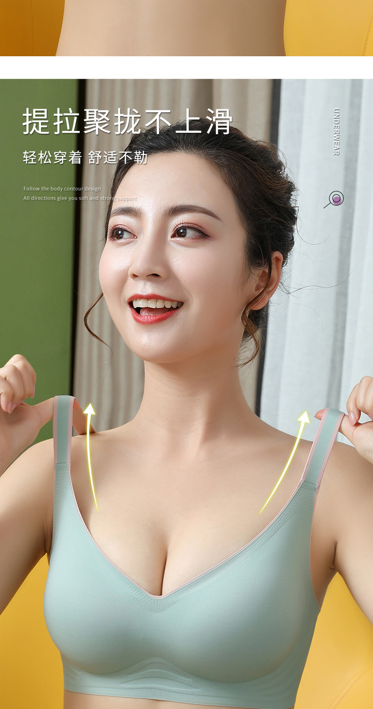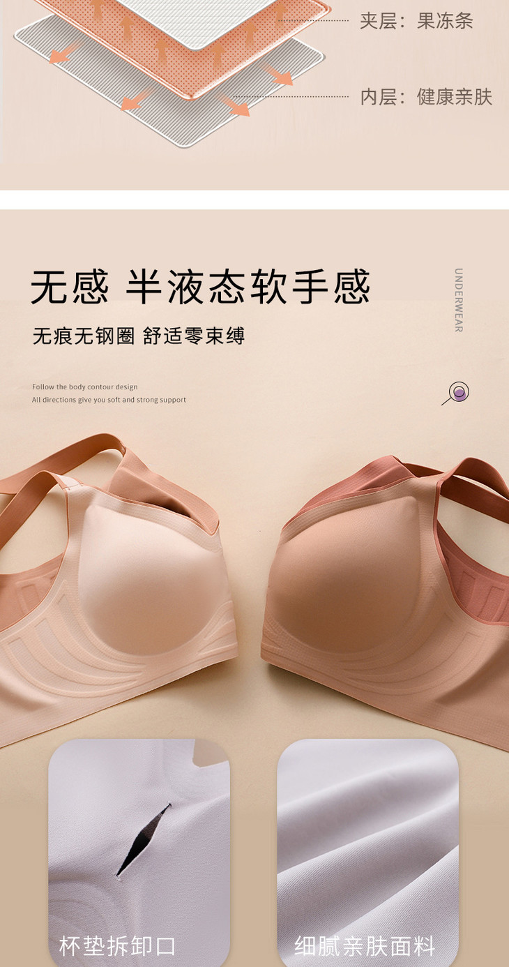 无痕果冻条时尚撞色内衣小胸上托调整型运动无钢圈文胸WLJ撞色果冻条