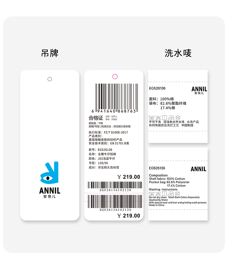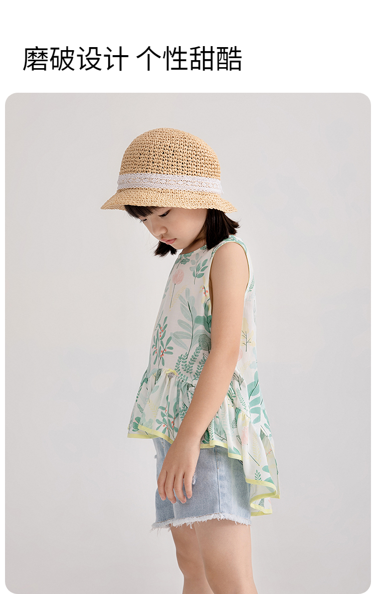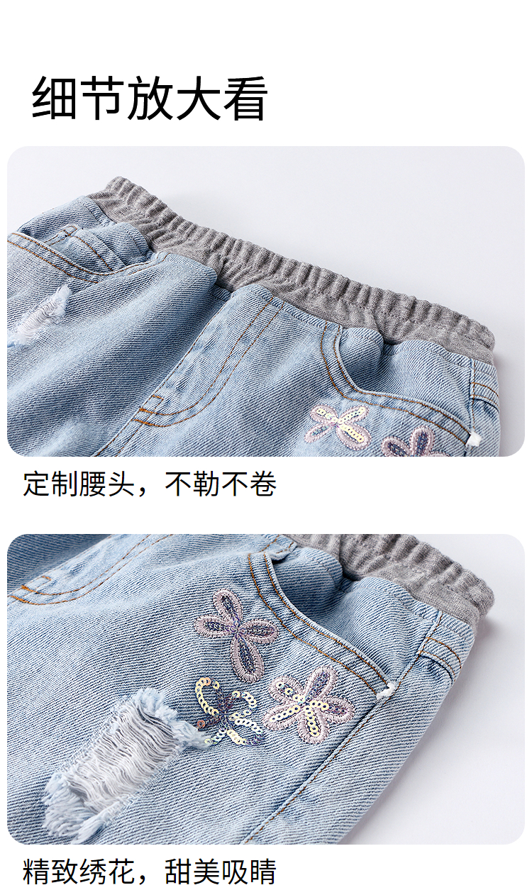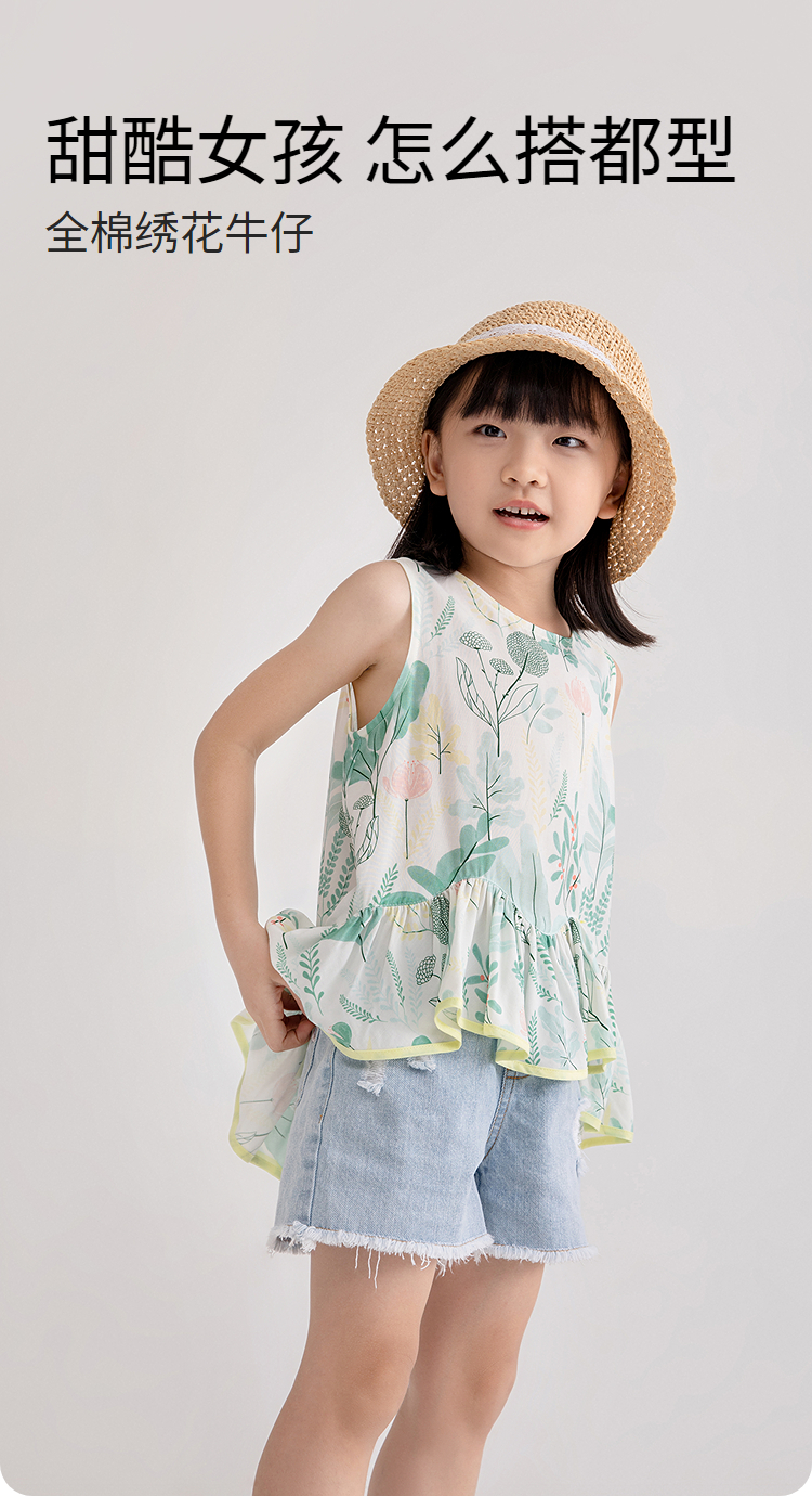 女童全腰牛仔短裤夏季新款安奈儿童装EG526136