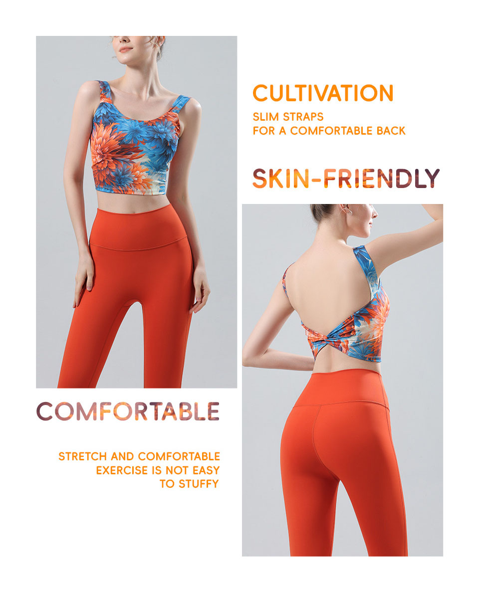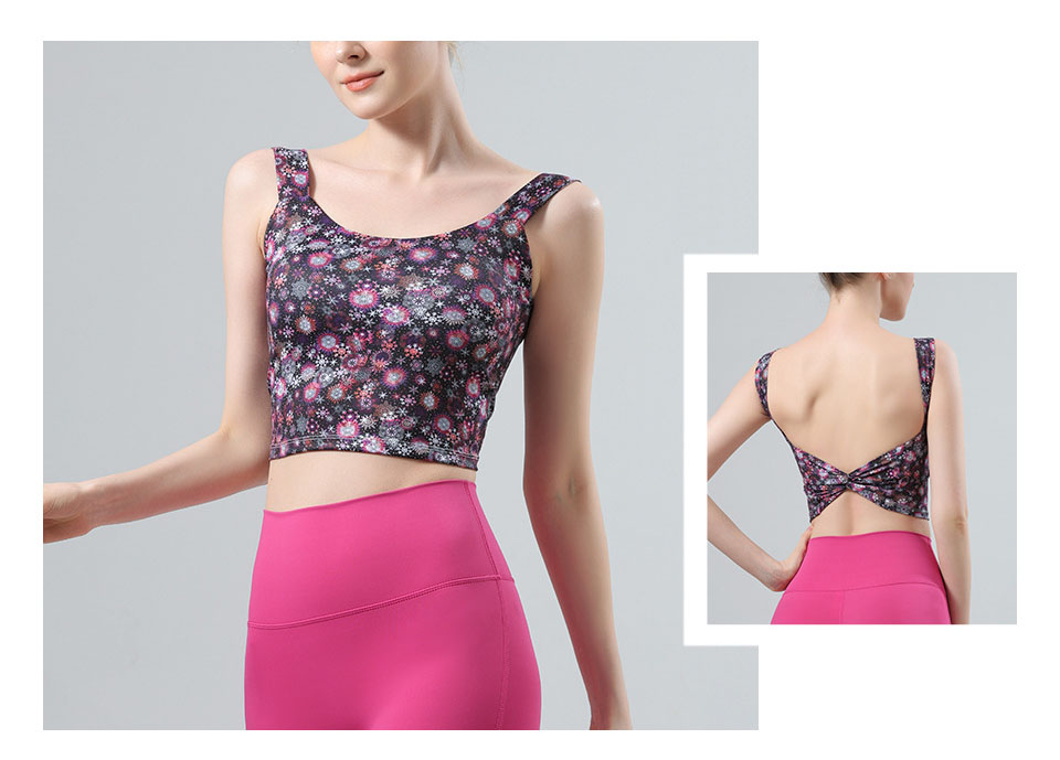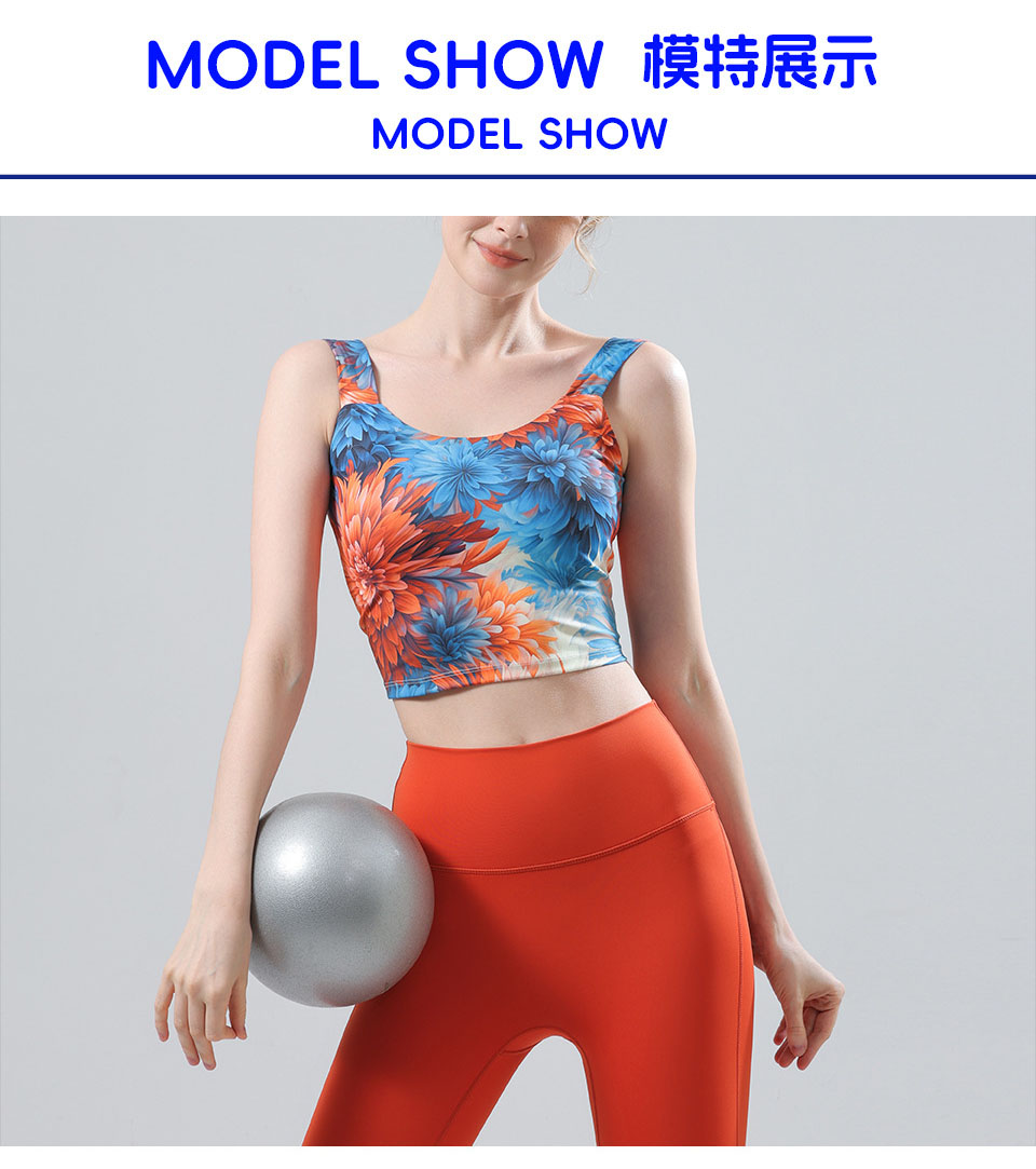 【126元任选2件】跃牌【漫西】系列 新款时尚瑜伽服套装带胸垫印花美背心运动文胸内衣Y256