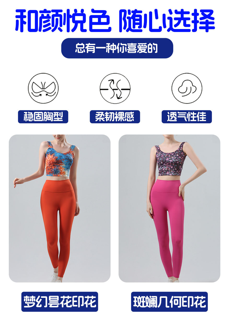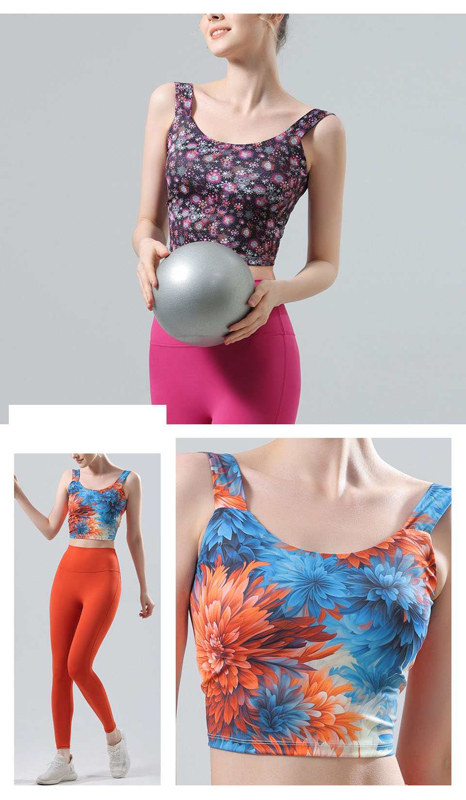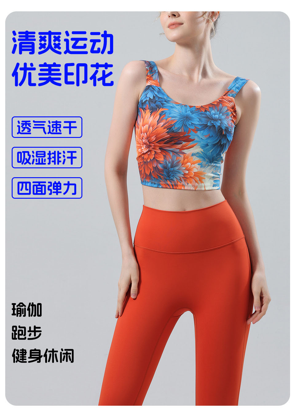 【126元任选2件】跃牌【漫西】系列 新款时尚瑜伽服套装带胸垫印花美背心运动文胸内衣Y256
