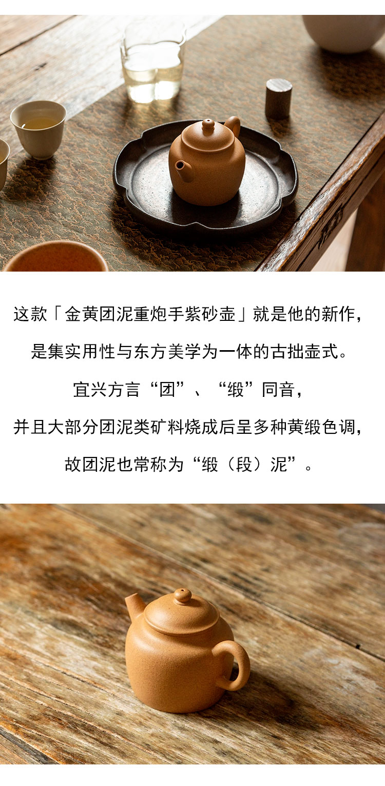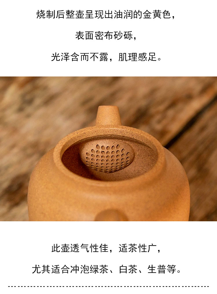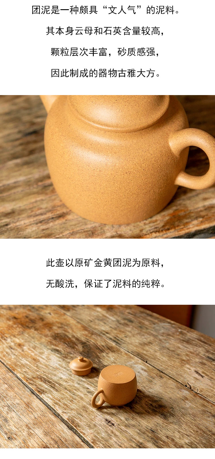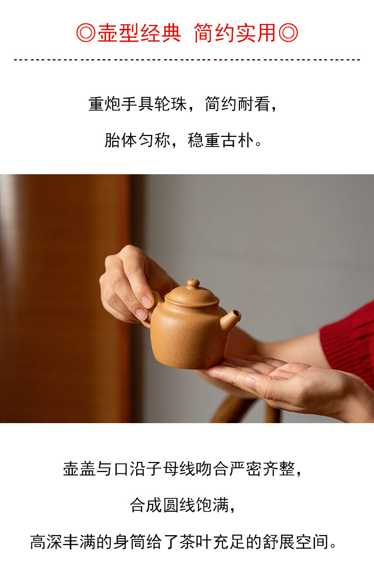 茶香记 润砂堂 金黄团泥重炮手紫砂壶 具轮珠 壶型经典 颗粒感强