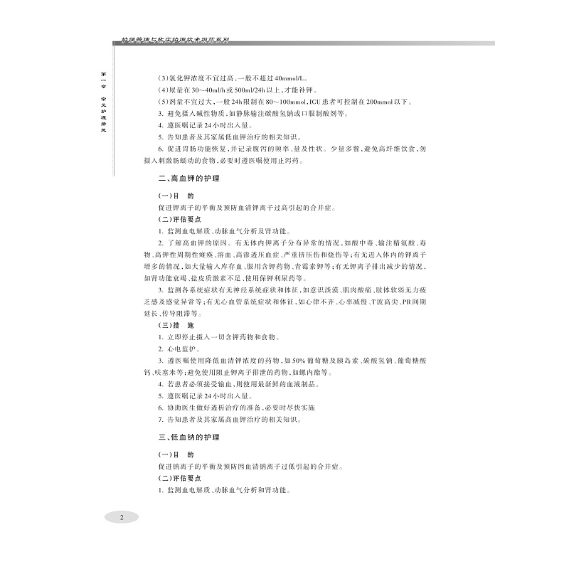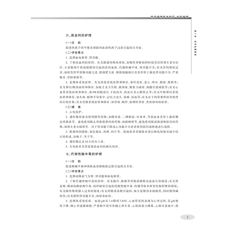 根据国家最新颁布的法律法规和经国家医学权威机构认可的护理专业技术标准,重新修改和撰写护理管理规范。在已完成初稿的基础上反复征求专家意见,组织浙江省护理质控中心委员单位成员进行专项、专题、反复多次讨论。浙江省医疗机构管理与诊疗技术规范丛书,本册为护理管理与临床护理技术规范:内科护理。主要包括常见护理措施、呼吸系统疾病护理常规、心血管系统疾病护理常规、消化系统疾病护理常规、泌尿系统疾病护理常规、血液和造血系统疾病护理常规、内分泌和代谢系统疾病护理常规、风湿性疾病护理常规、传染病护理常规、神经系统疾病护理常规、皮肤病护理常规,共计十一章内容。