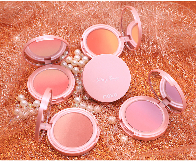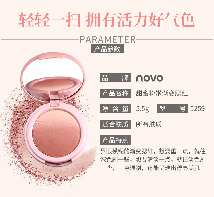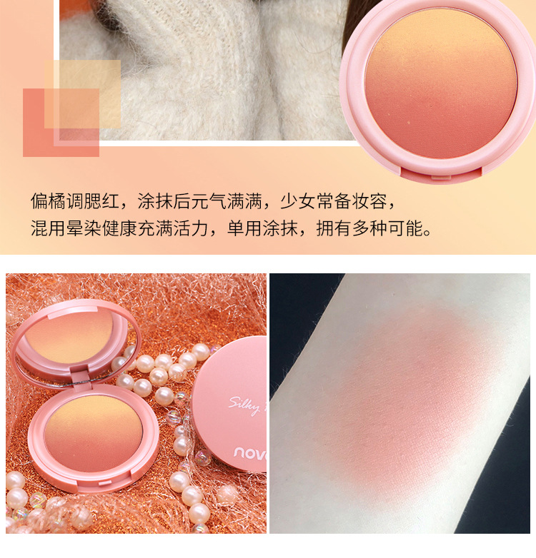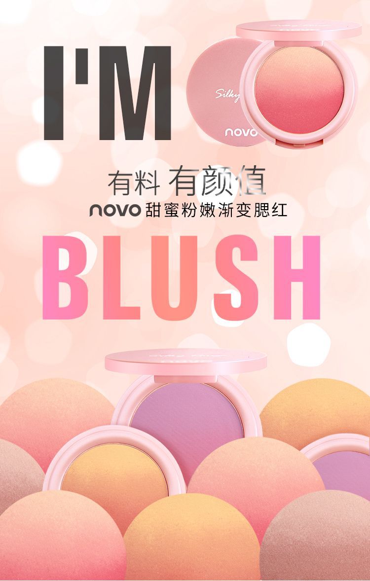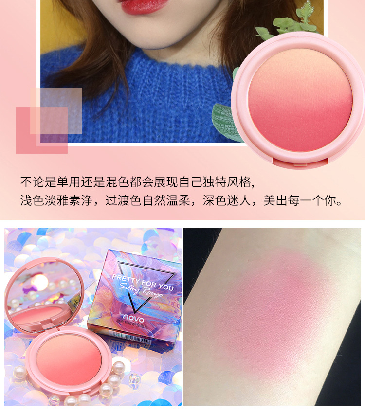 【提气色!自然甜美】彩妆NOVO甜蜜粉嫩双色渐变腮红盘女提升气色自然哑光细闪修容胭脂。xb
