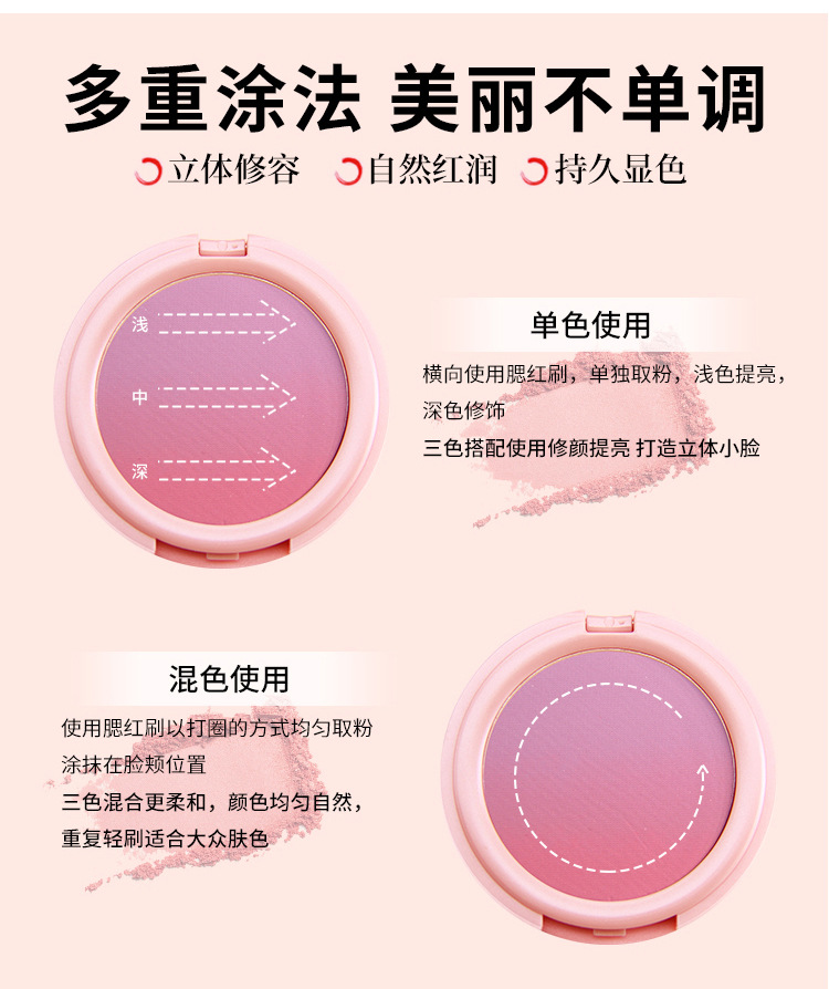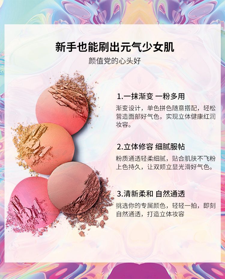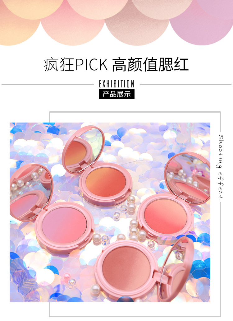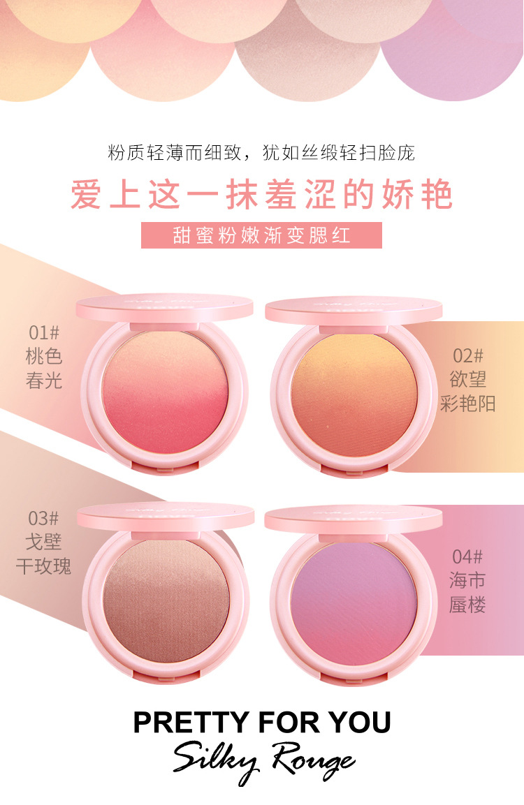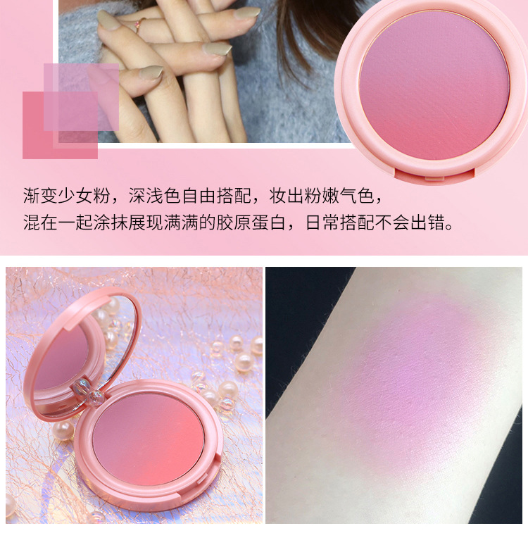 【提气色!自然甜美】彩妆NOVO甜蜜粉嫩双色渐变腮红盘女提升气色自然哑光细闪修容胭脂。xb