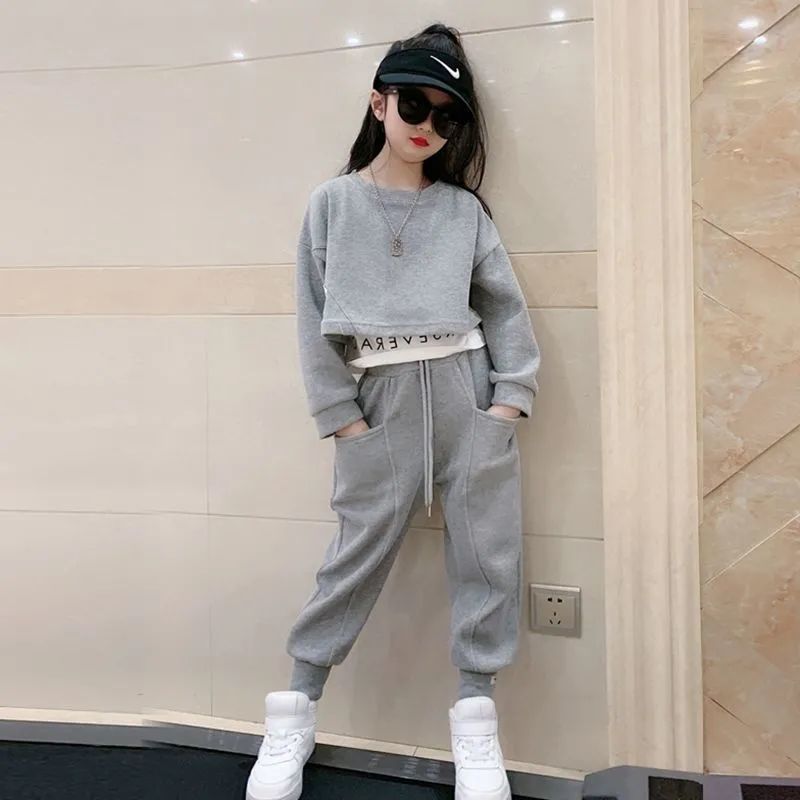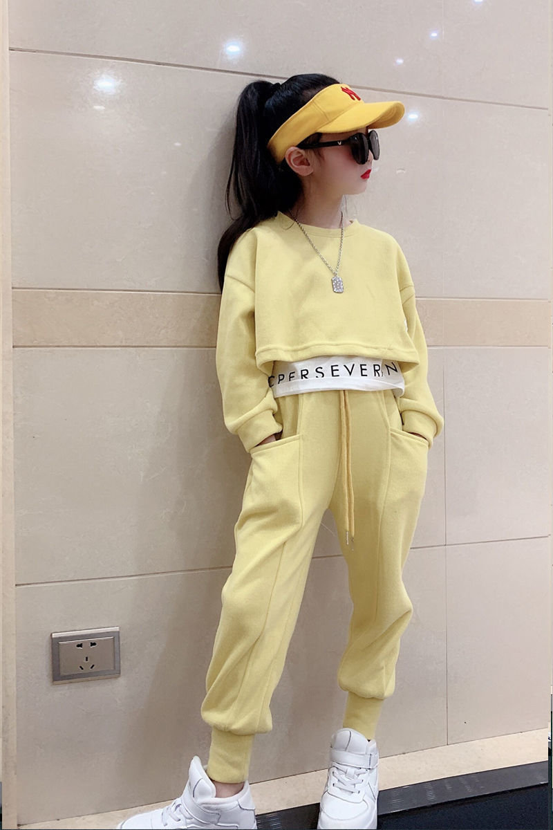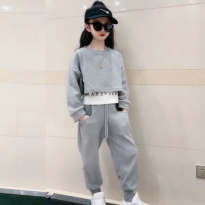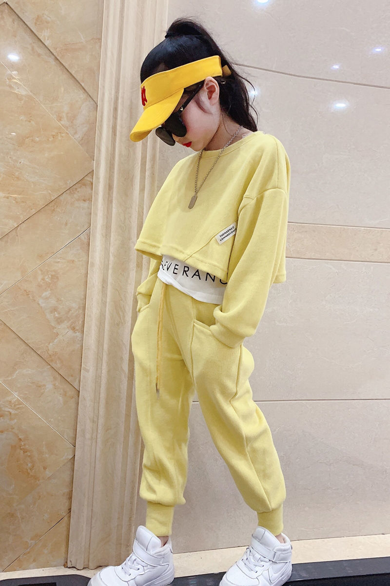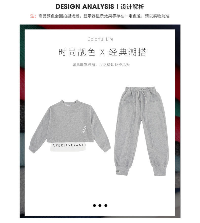 【时尚靓色,经典潮搭】童装女秋套装洋气女孩秋季衣服长袖假两件卫衣儿童两件套运动服装,洋气女孩的秋日时尚选择,双层设计点亮儿童衣橱,ry