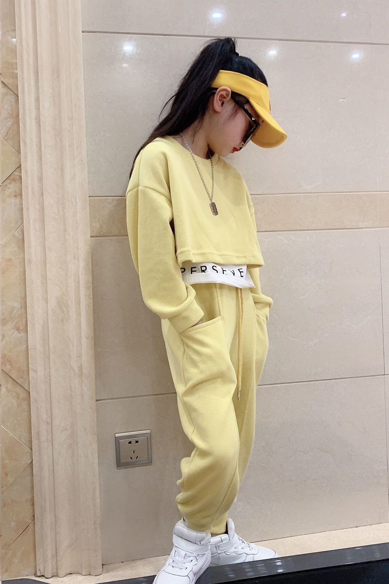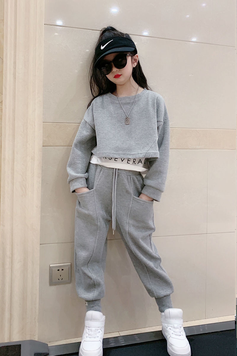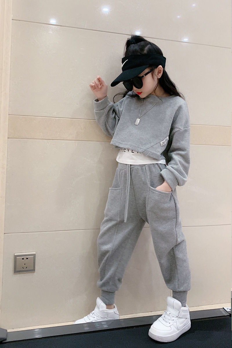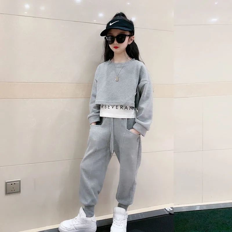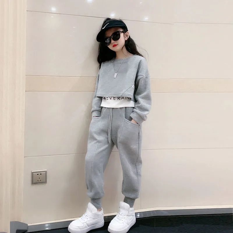 【时尚靓色,经典潮搭】童装女秋套装洋气女孩秋季衣服长袖假两件卫衣儿童两件套运动服装,洋气女孩的秋日时尚选择,双层设计点亮儿童衣橱,ry