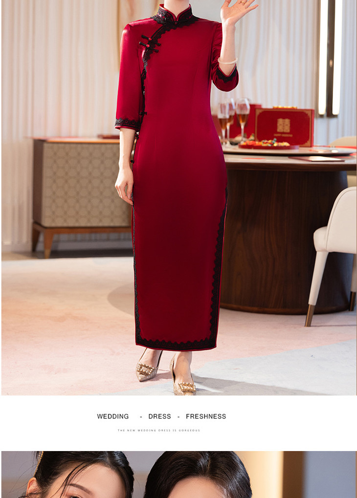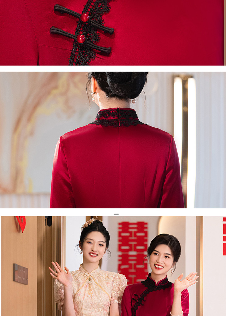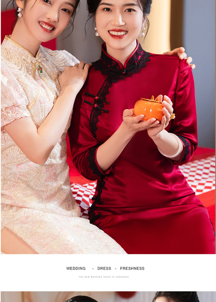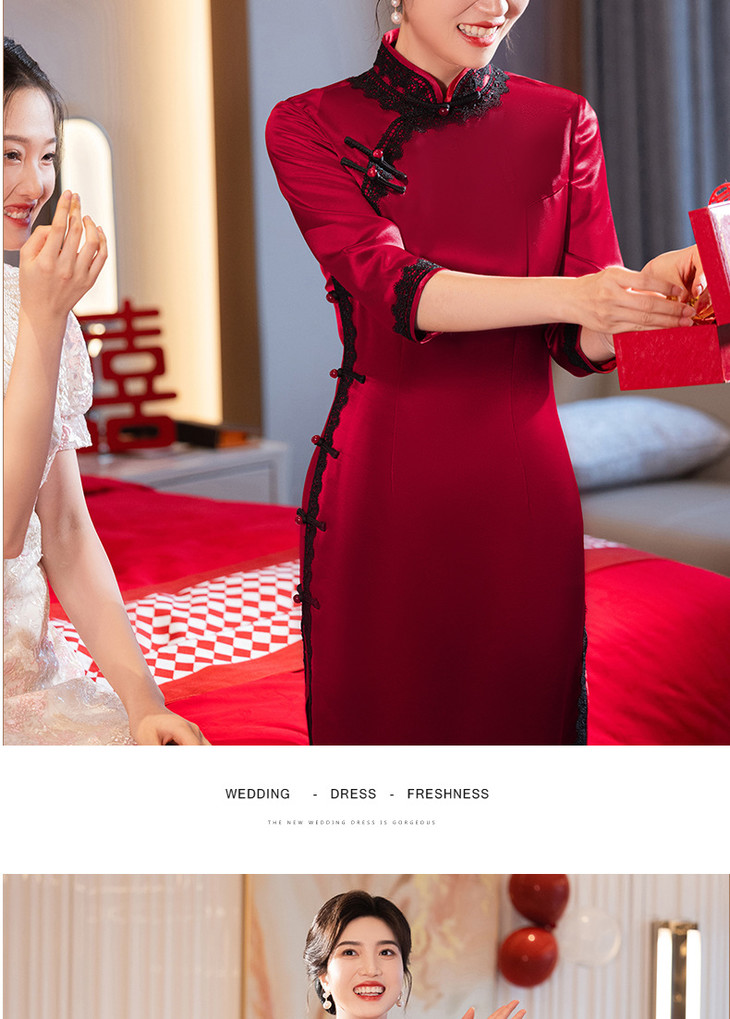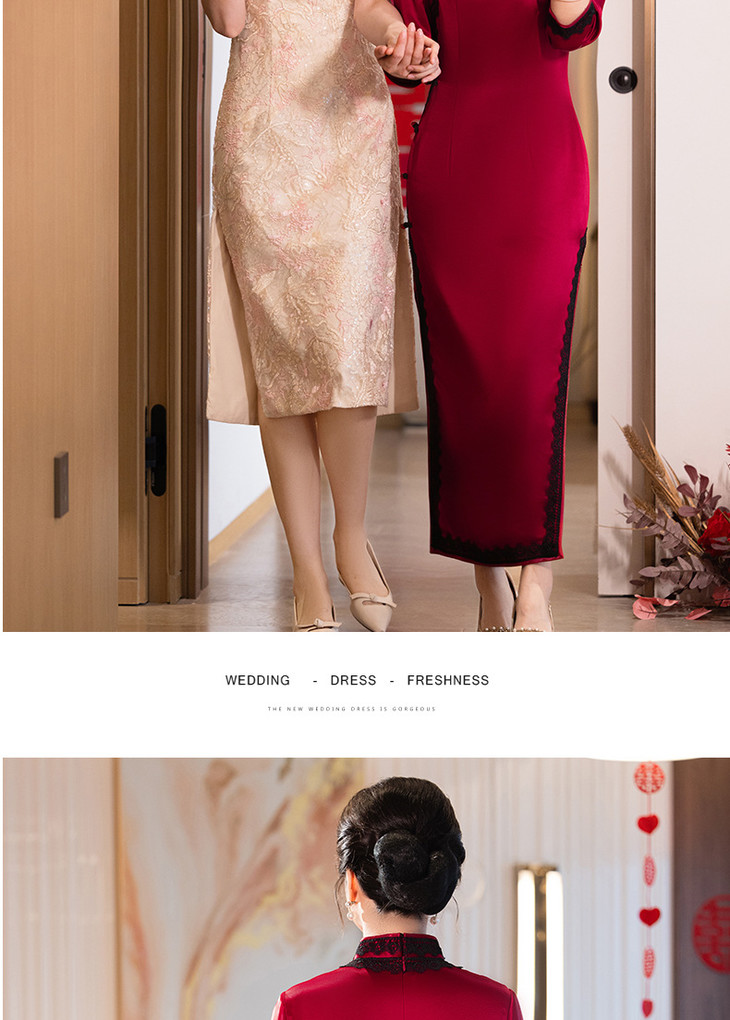 LHS喜婆婆婚宴装高贵蕾丝旗袍2024新款秋季新中式婚礼妈妈礼服连衣裙