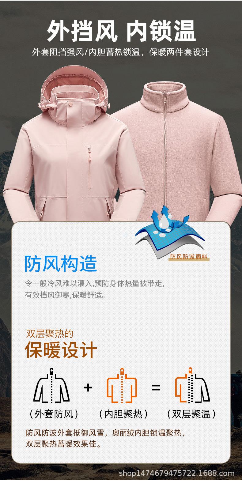爆!户外运动男士情侣三合一户外防水防风透气登山服冲锋衣
