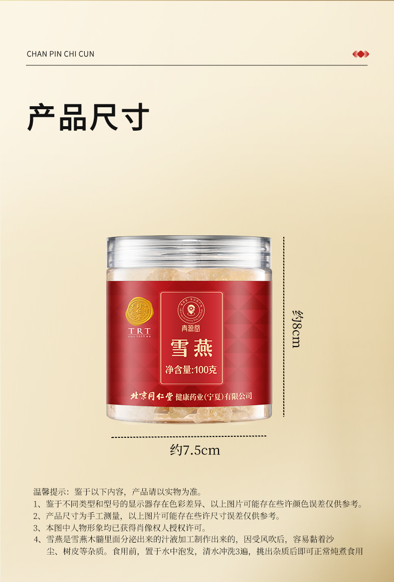 【正宗同仁堂品牌】北京同仁堂 青源堂 雪燕100克 品质雪燕 胶质浓稠SY