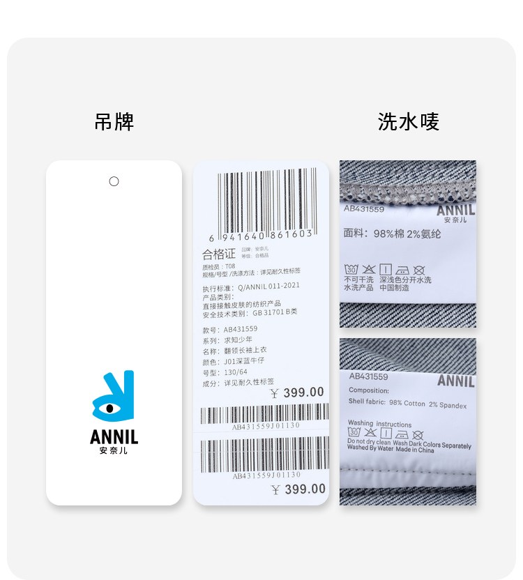 男童防褪色衬衫式牛仔上衣新款安奈儿童装实体店同款AB431559
