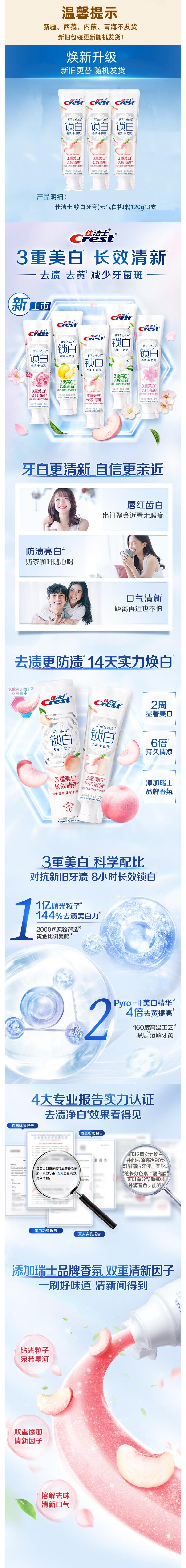 佳洁士 锁白牙膏(元气白桃味)120g*3支 pg-sb03bt