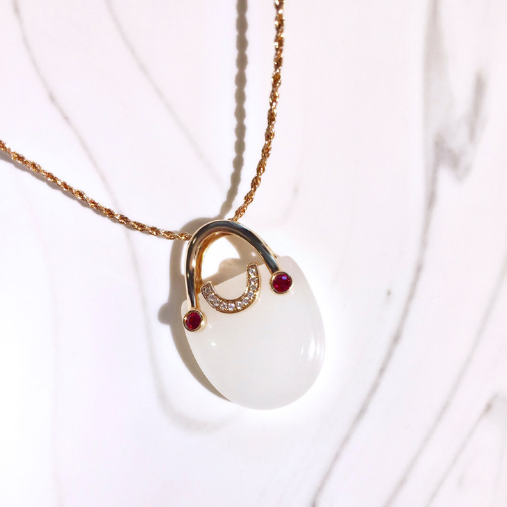 18k玫瑰金和田玉(白玉)吊坠