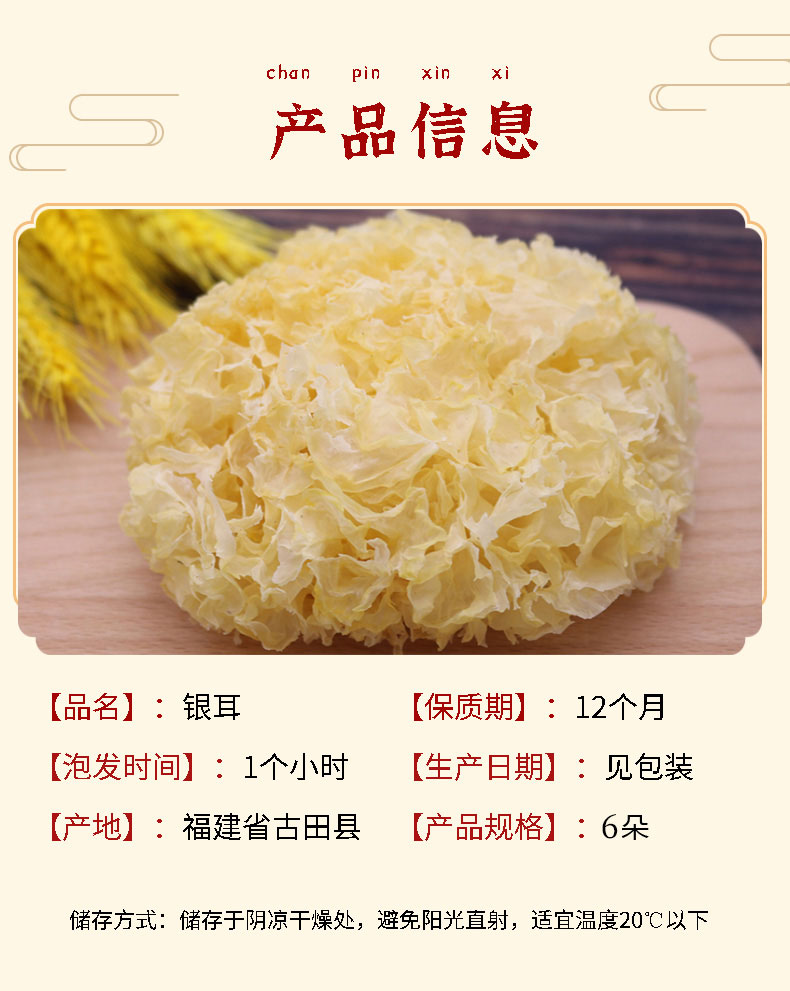 九养芝古田干银耳 朵型圆整、色泽鲜艳,口感滑嫩 6朵装