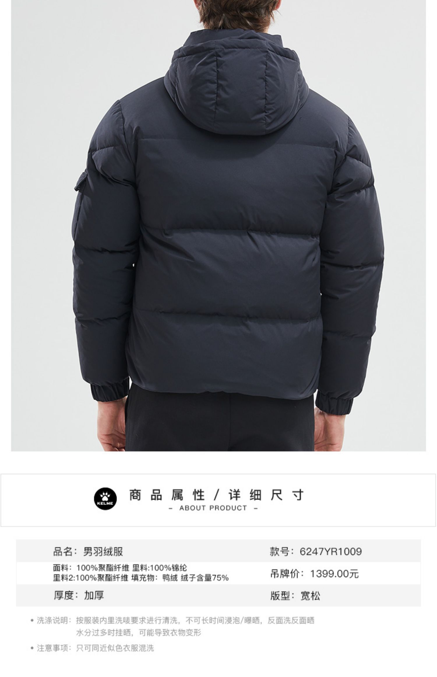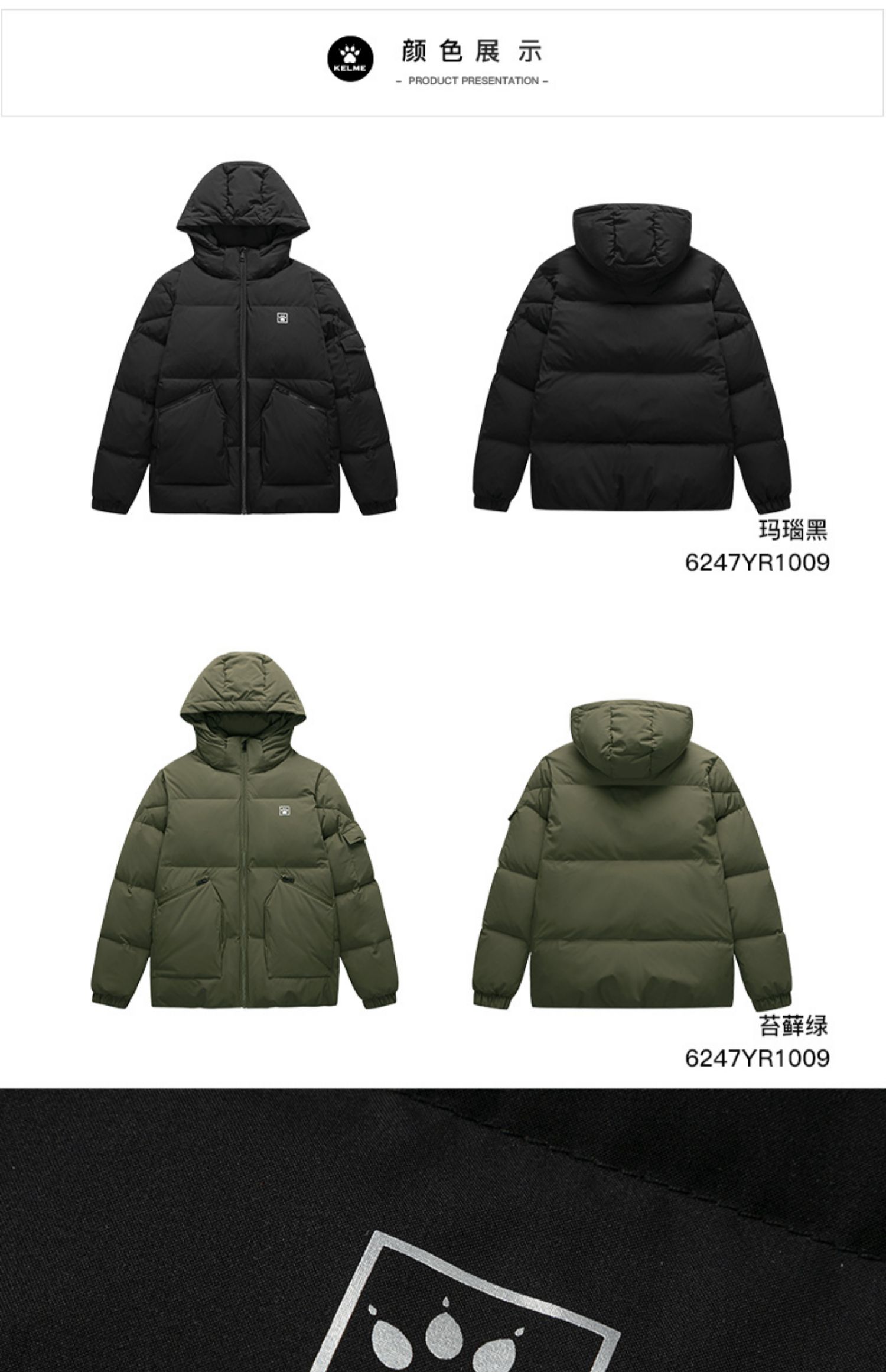 卡尔美潮流百搭短款羽绒服男冬季新款加厚保暖连帽外套6247YR1009