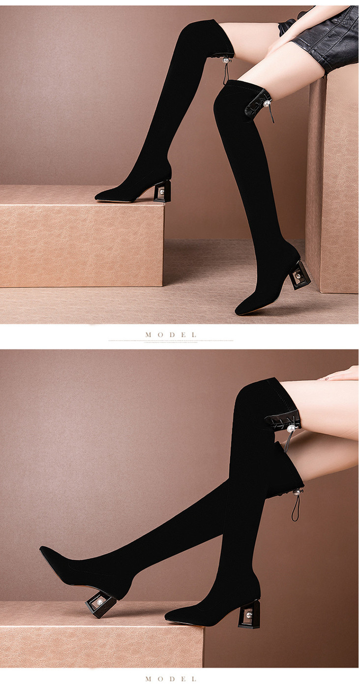 OLD391-2秋冬新款系带瘦腿弹力靴