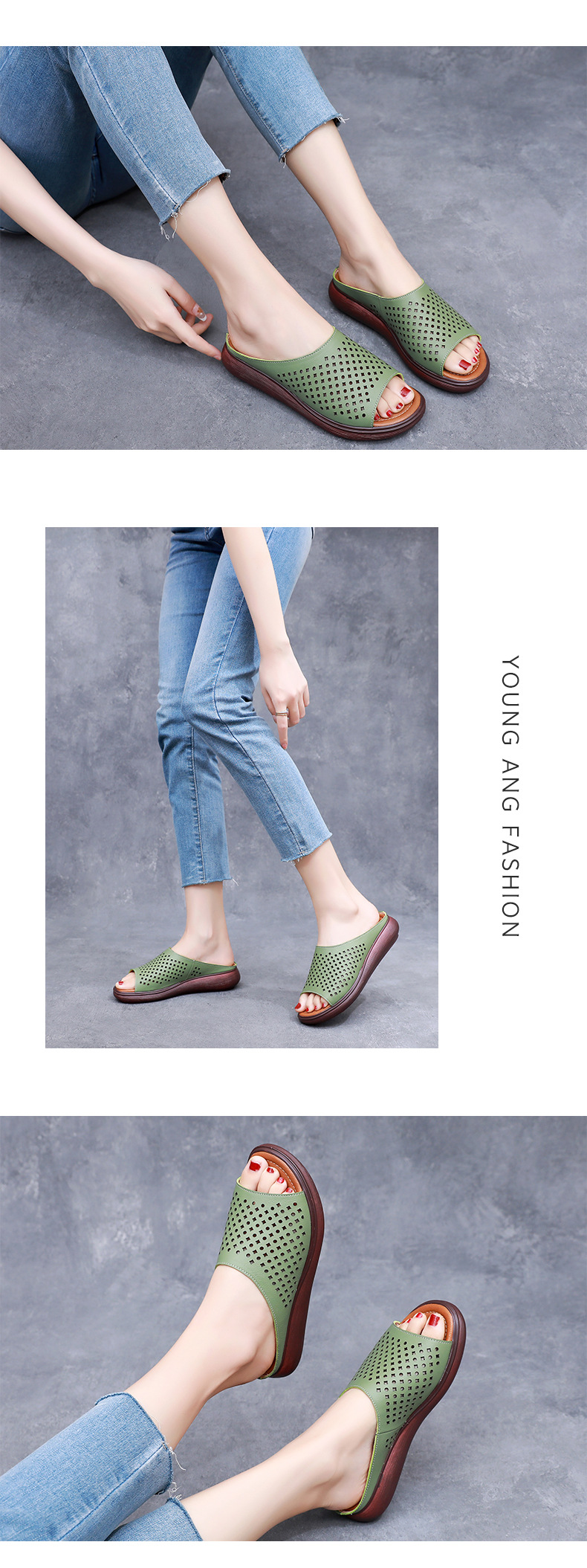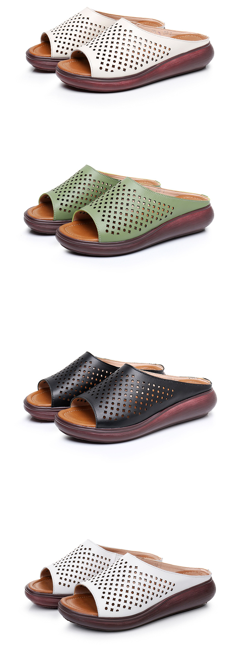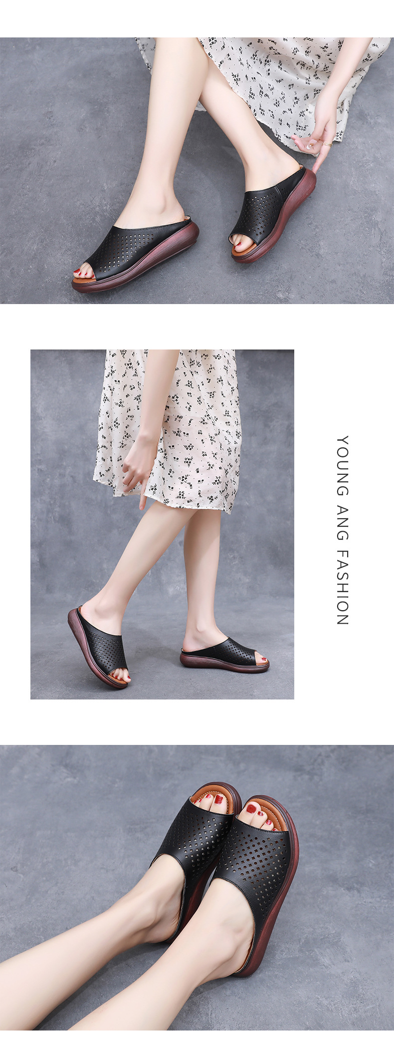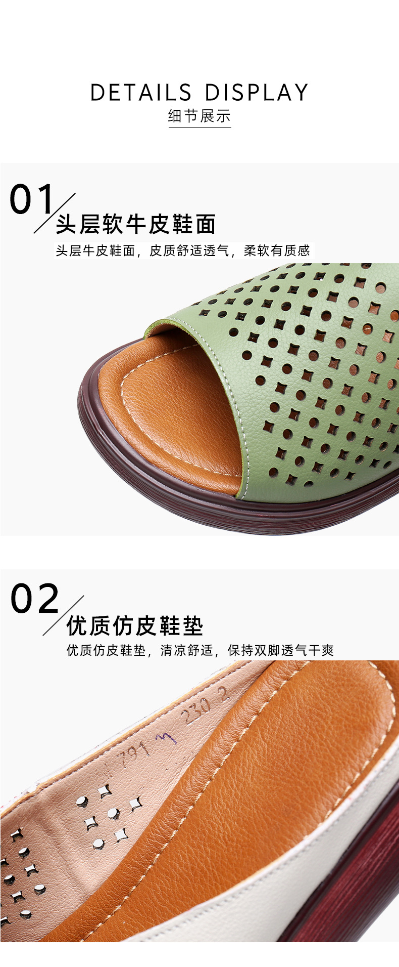 丁摩 夏季休闲真皮拖鞋厚底软底中老年女鞋妈妈鞋5ZF-791