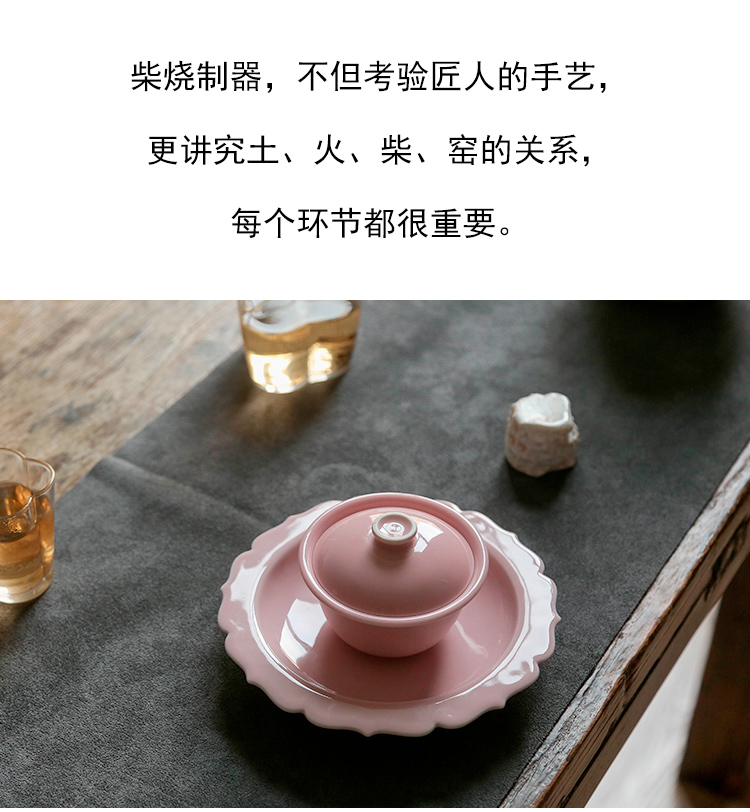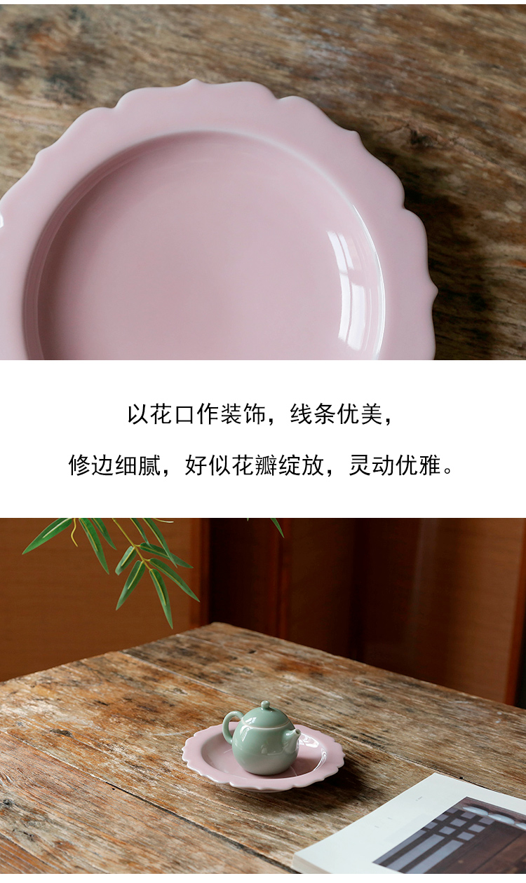 茶香记 李现锋柴烧玉粉花口壶承陶瓷灵动茶盘茶桌零配古典清雅