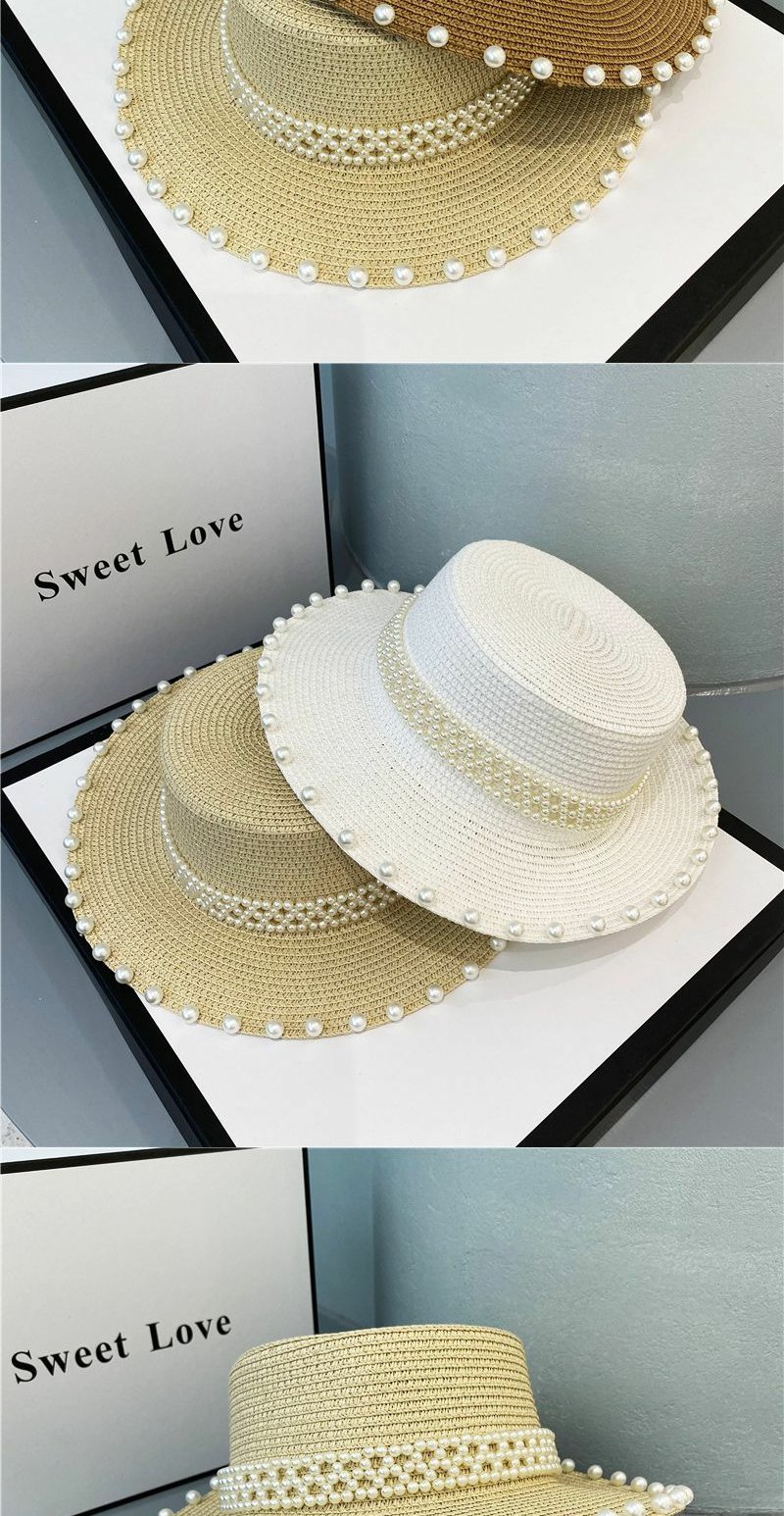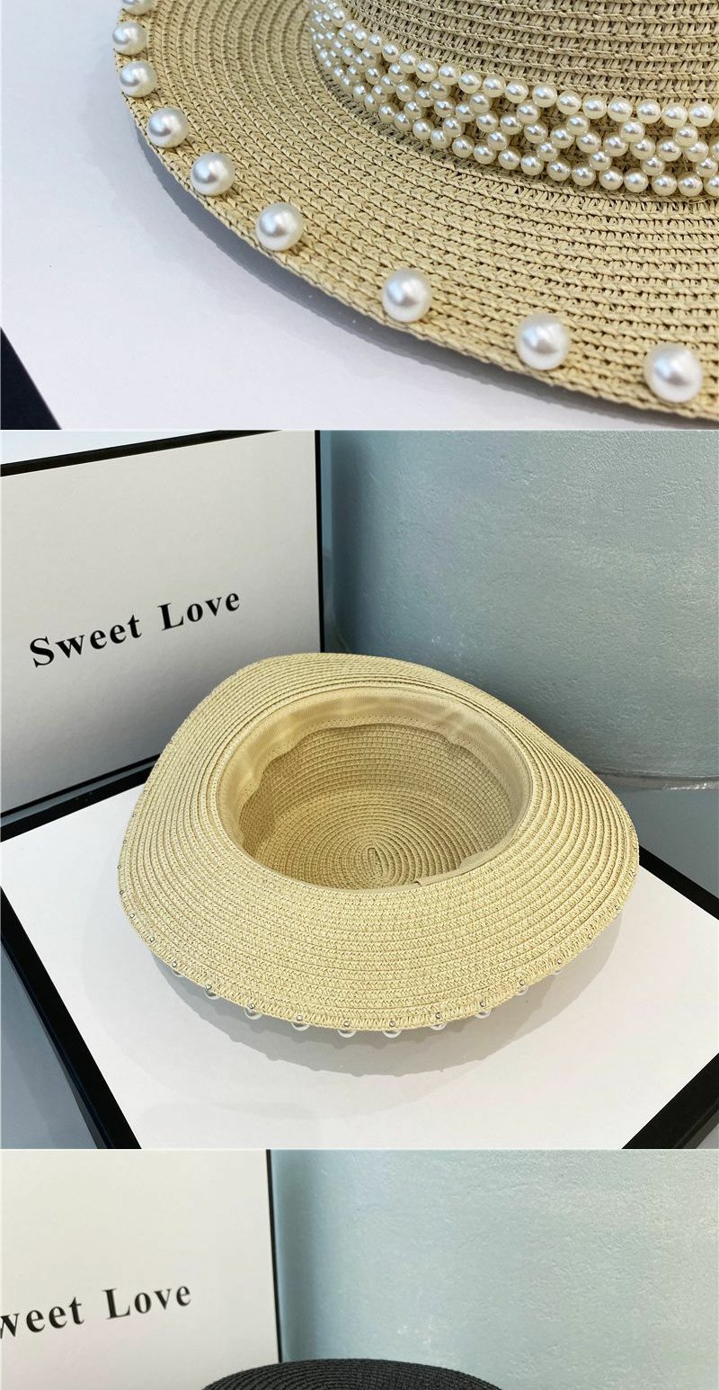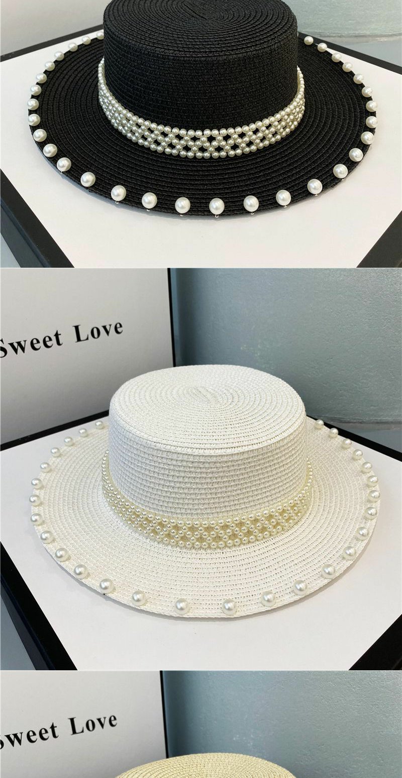 赫本风帽子海边珍珠草编草帽遮阳帽复古网红平顶礼帽