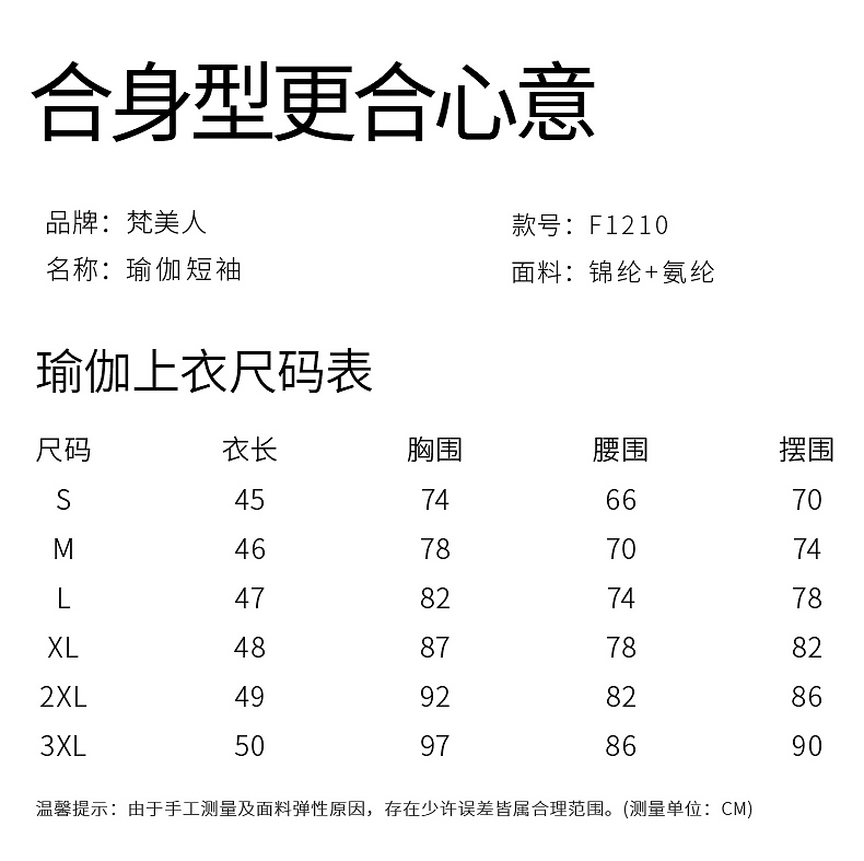 梵美人 F1397 瑜伽短袖 一体胸垫 莱卡云柔