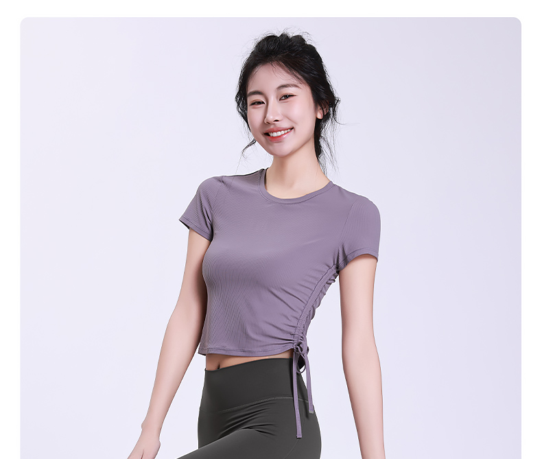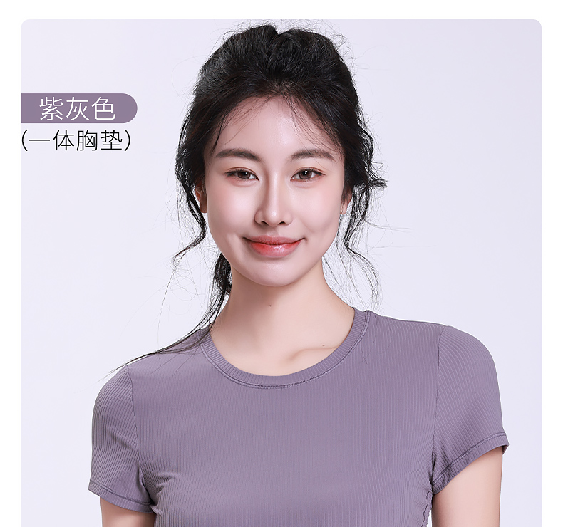 梵美人 F1210 瑜伽短袖 薄云螺纹 一体胸垫