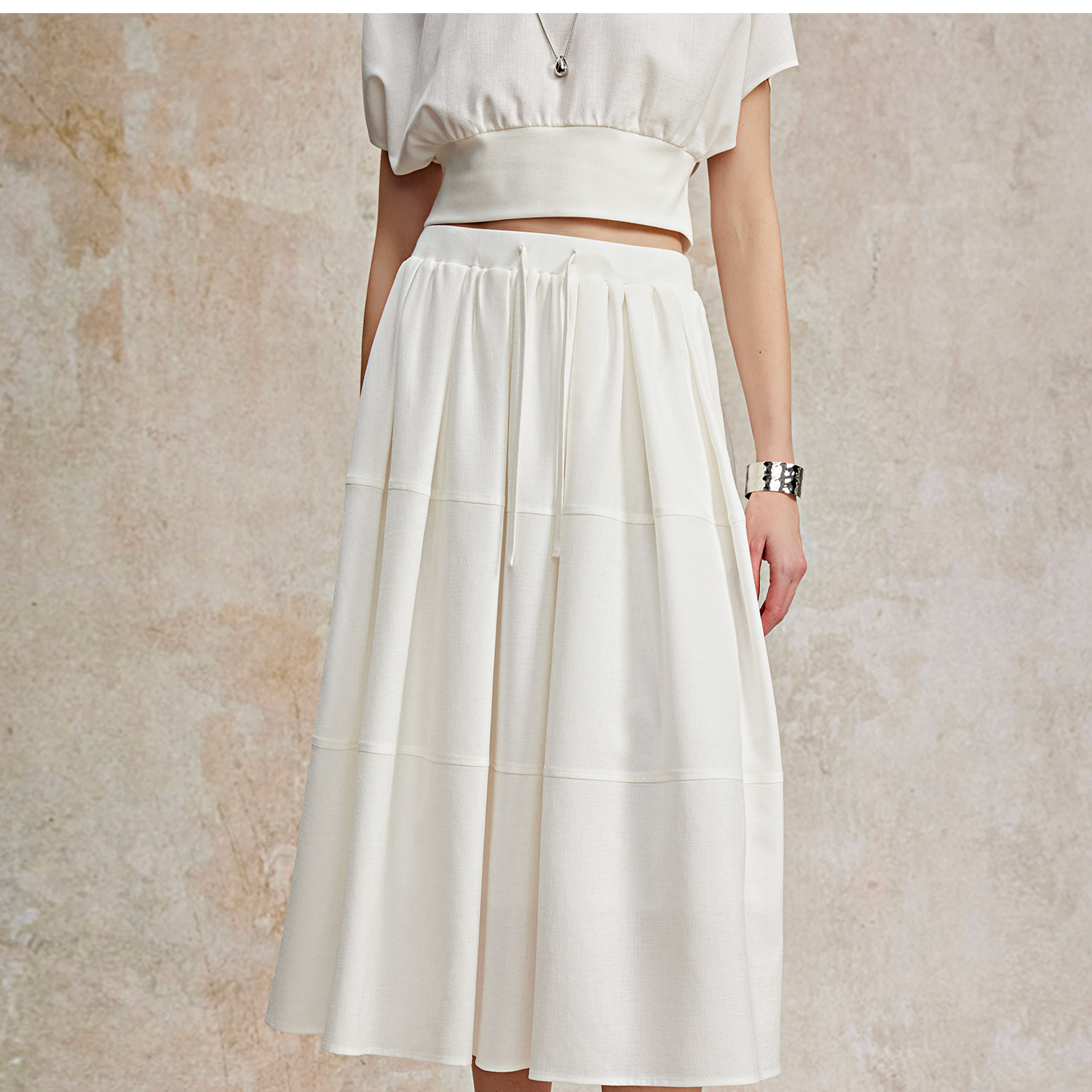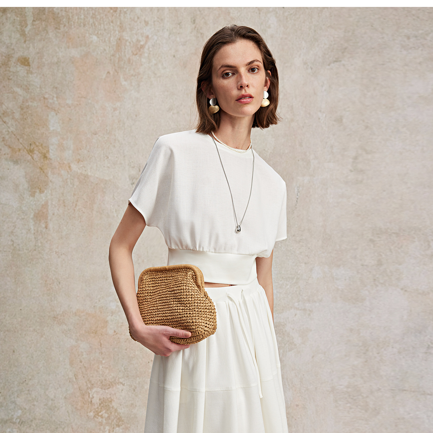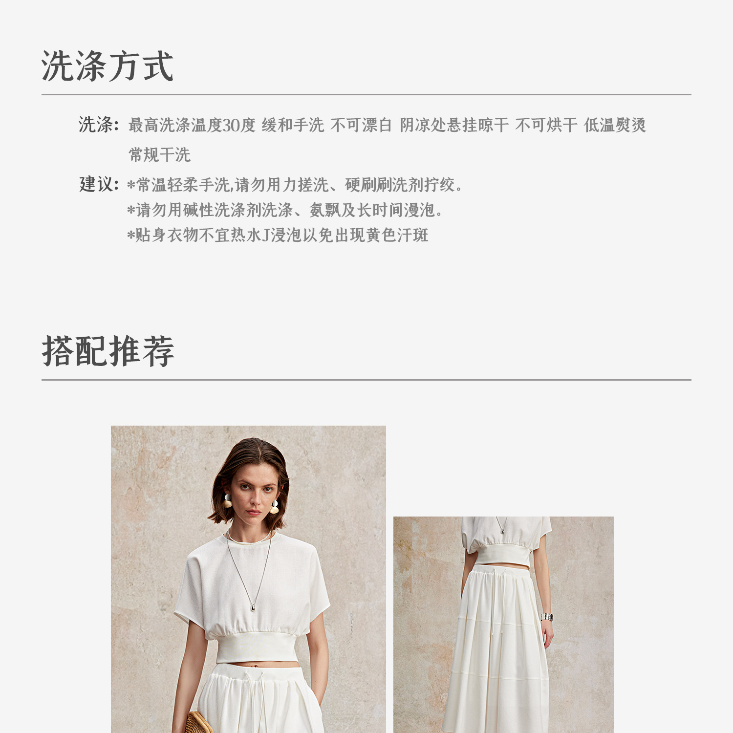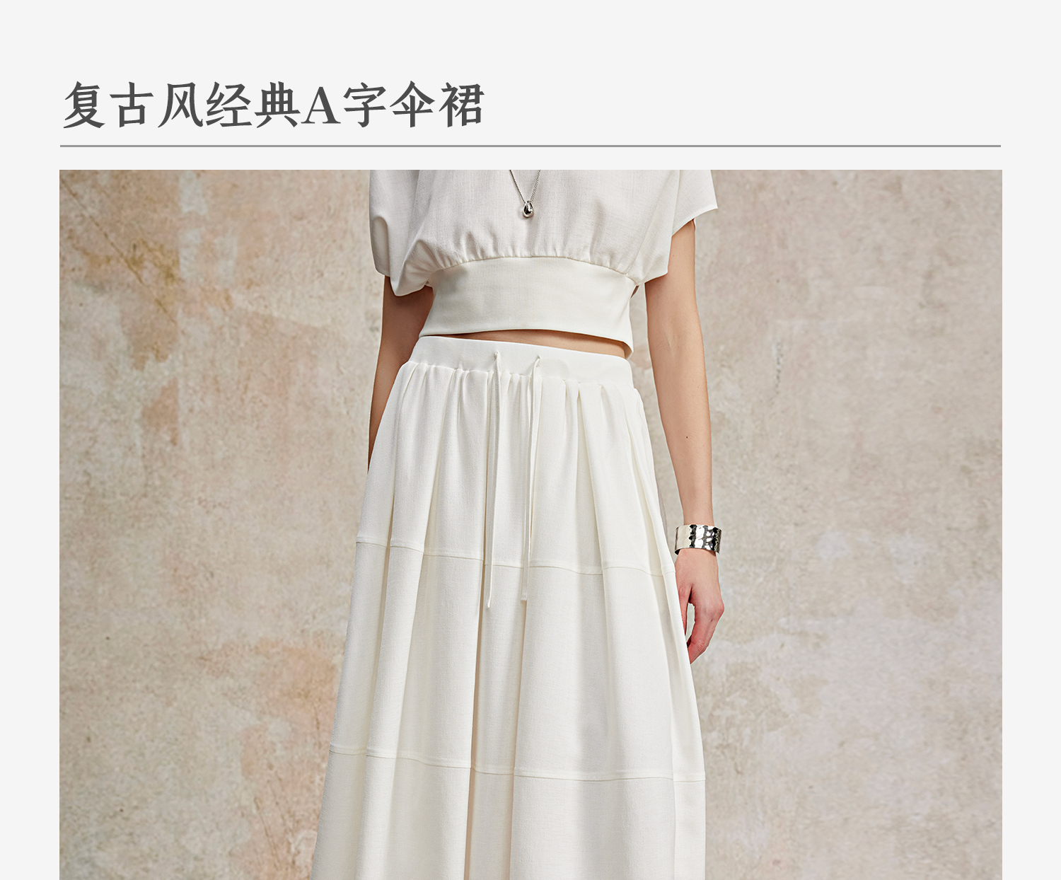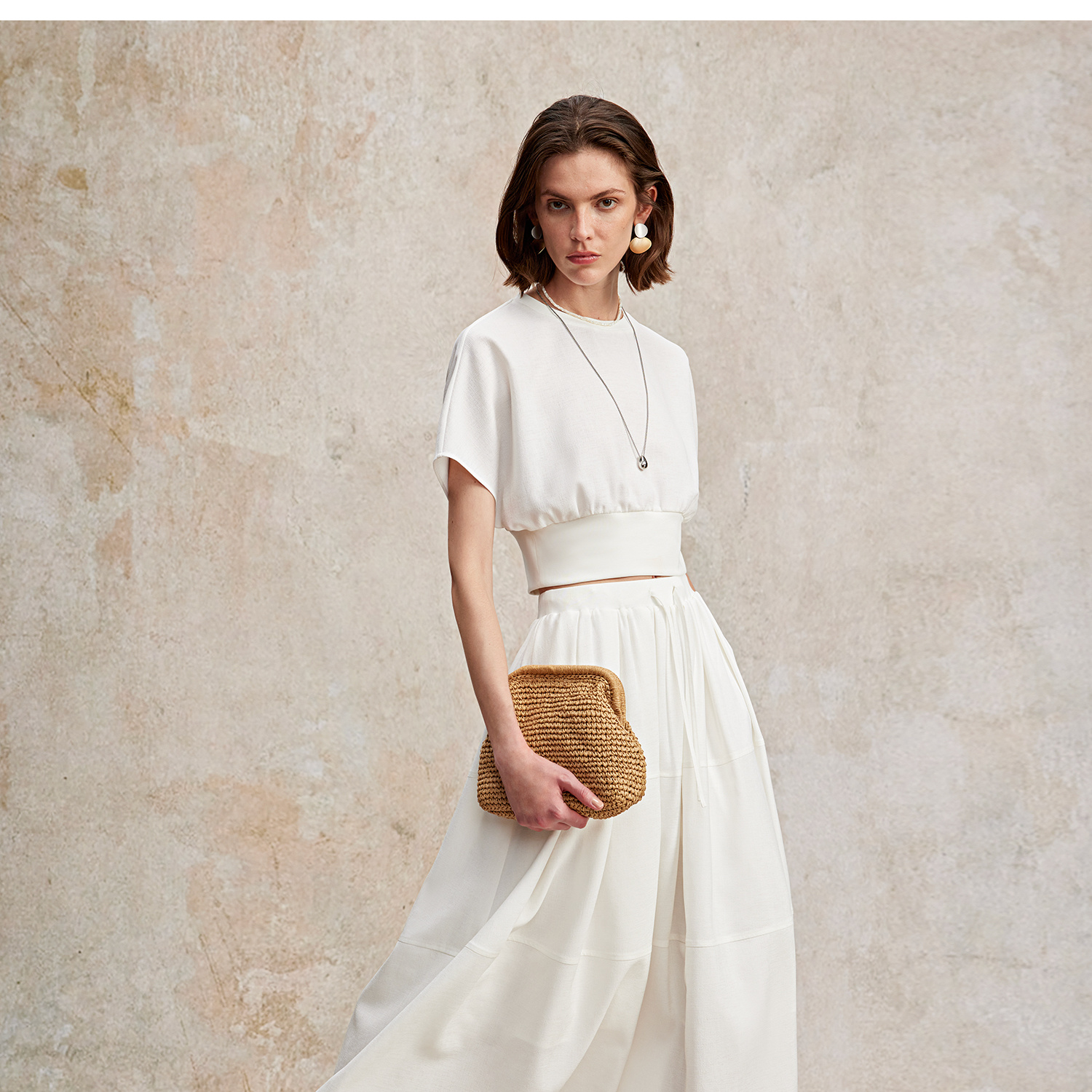 南法假日醋酸仿麻拼接罗纹简约短上衣/分割设计伞裙2025夏T2502018