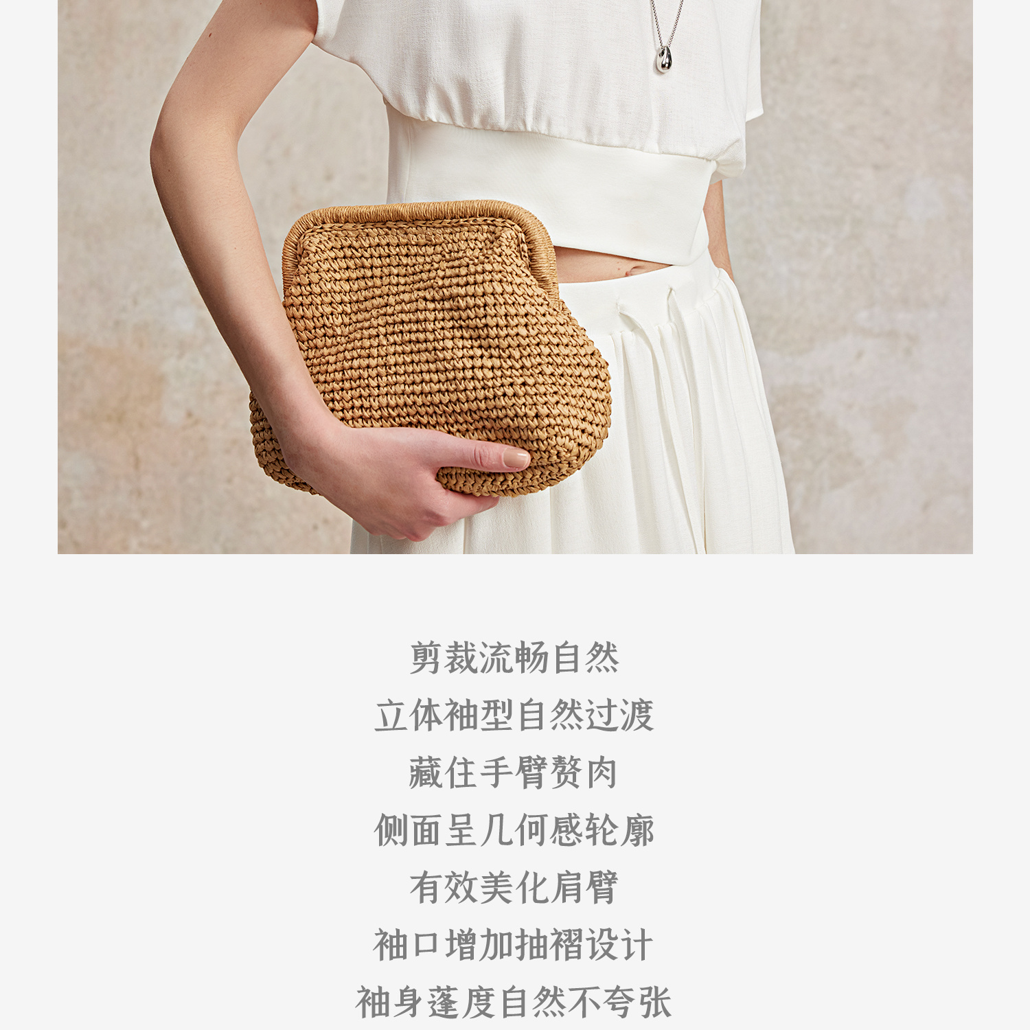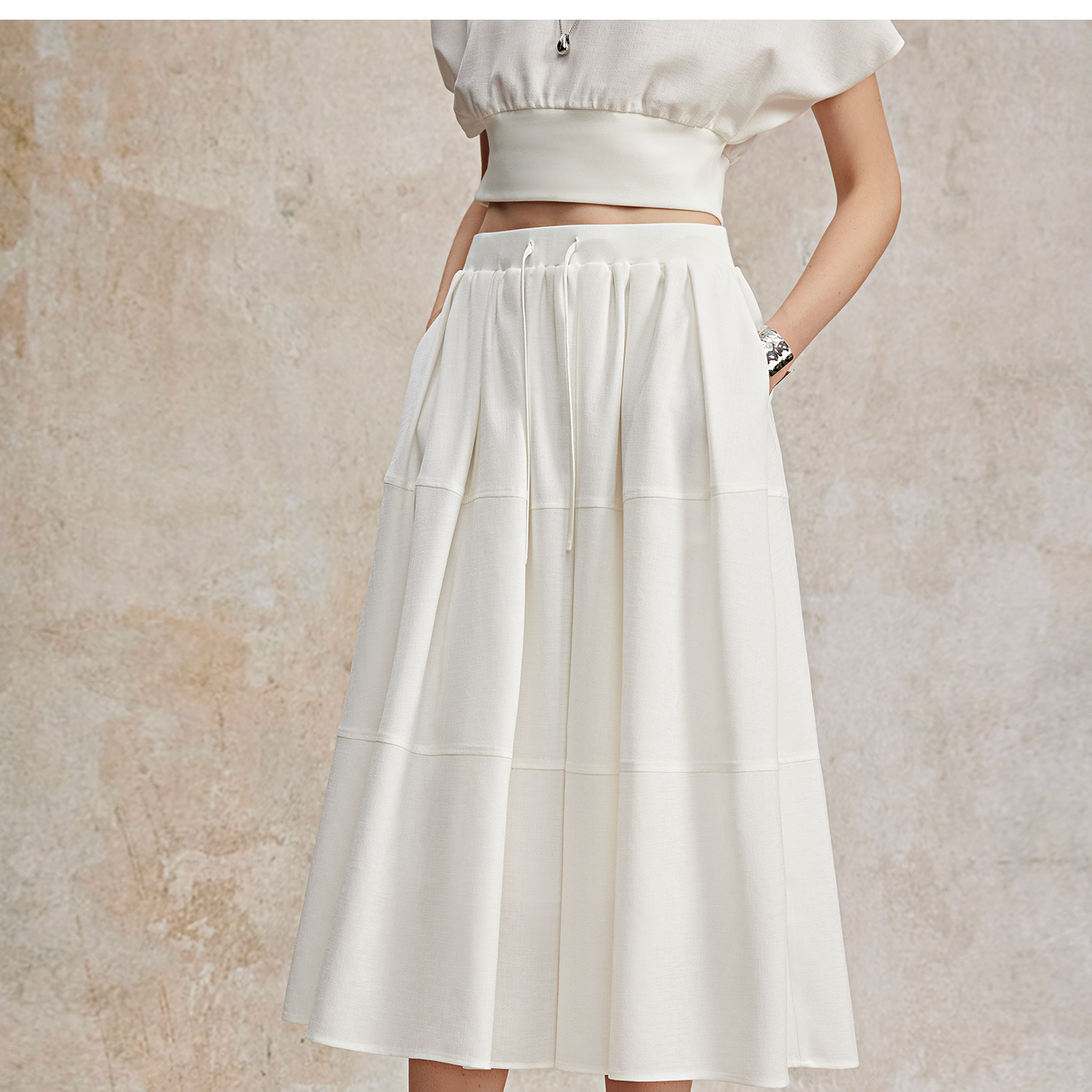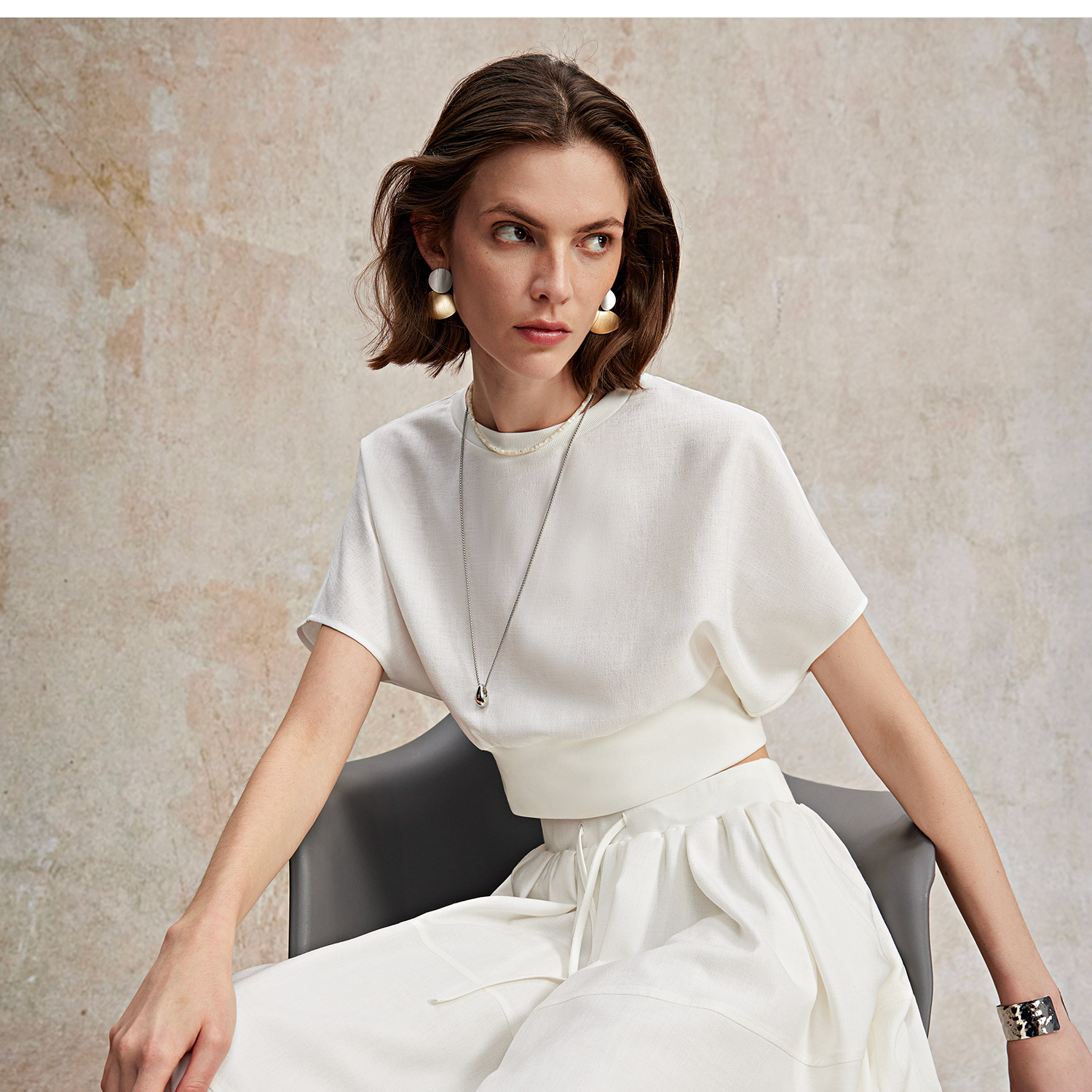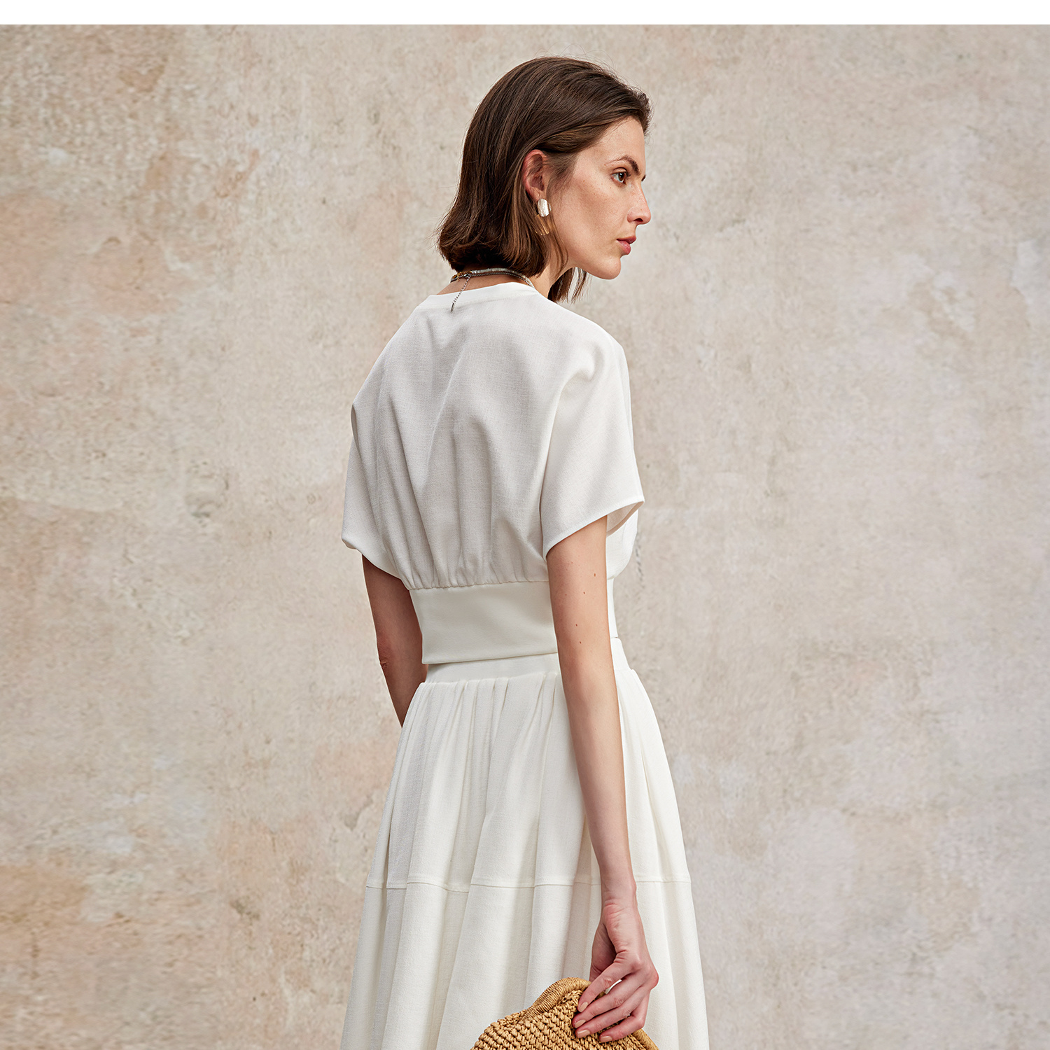 南法假日醋酸仿麻拼接罗纹简约短上衣/分割设计伞裙2025夏T2502018