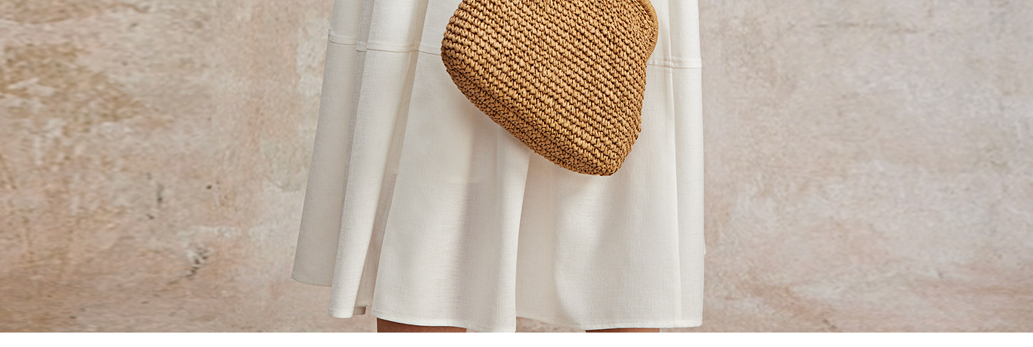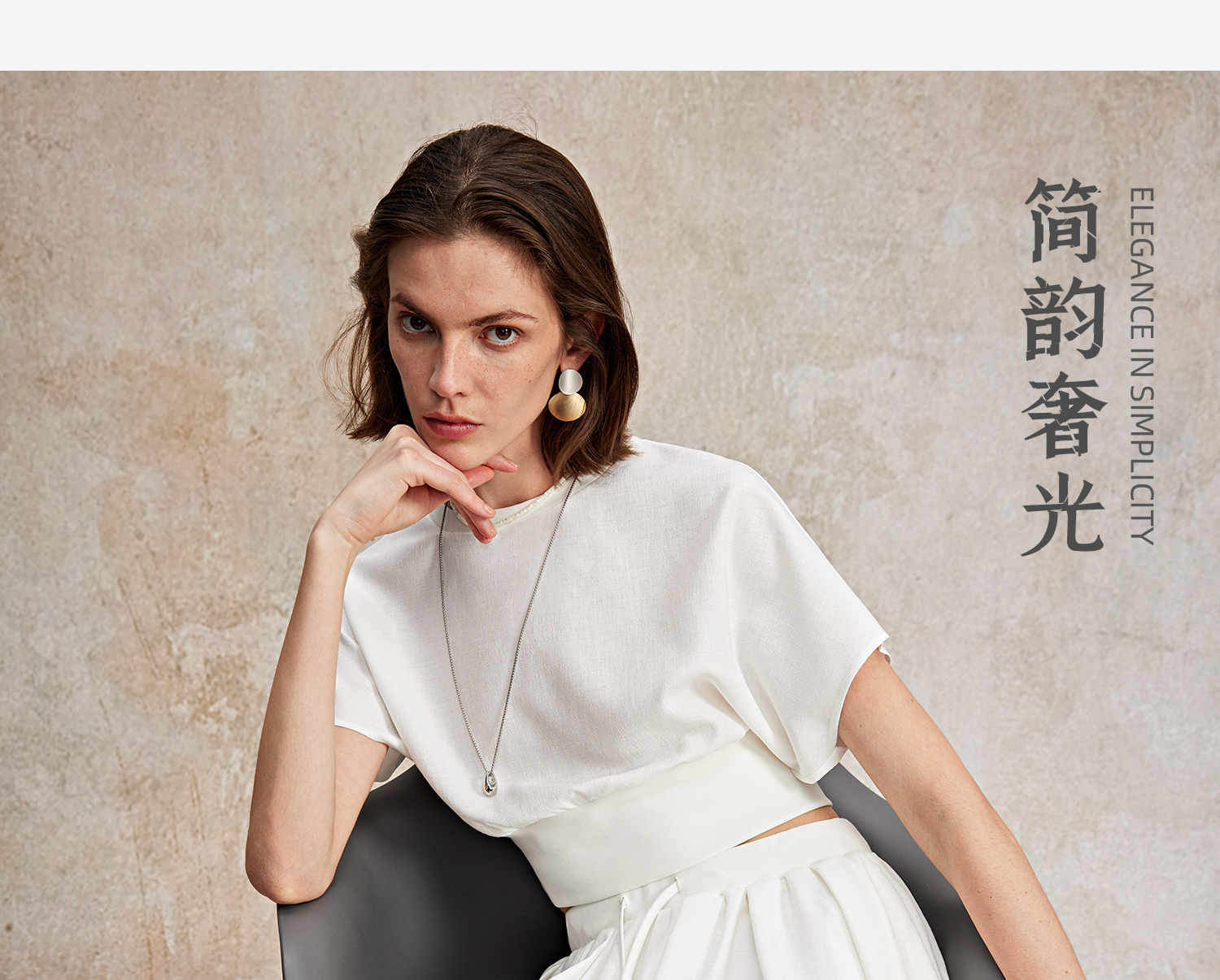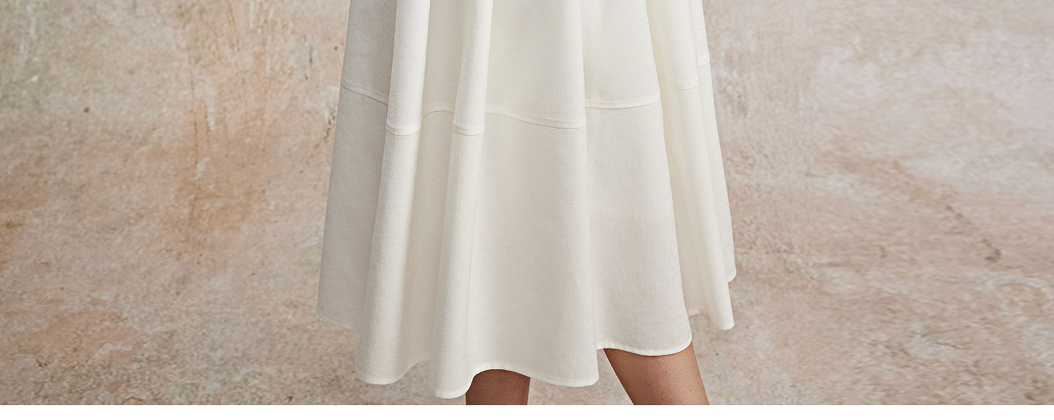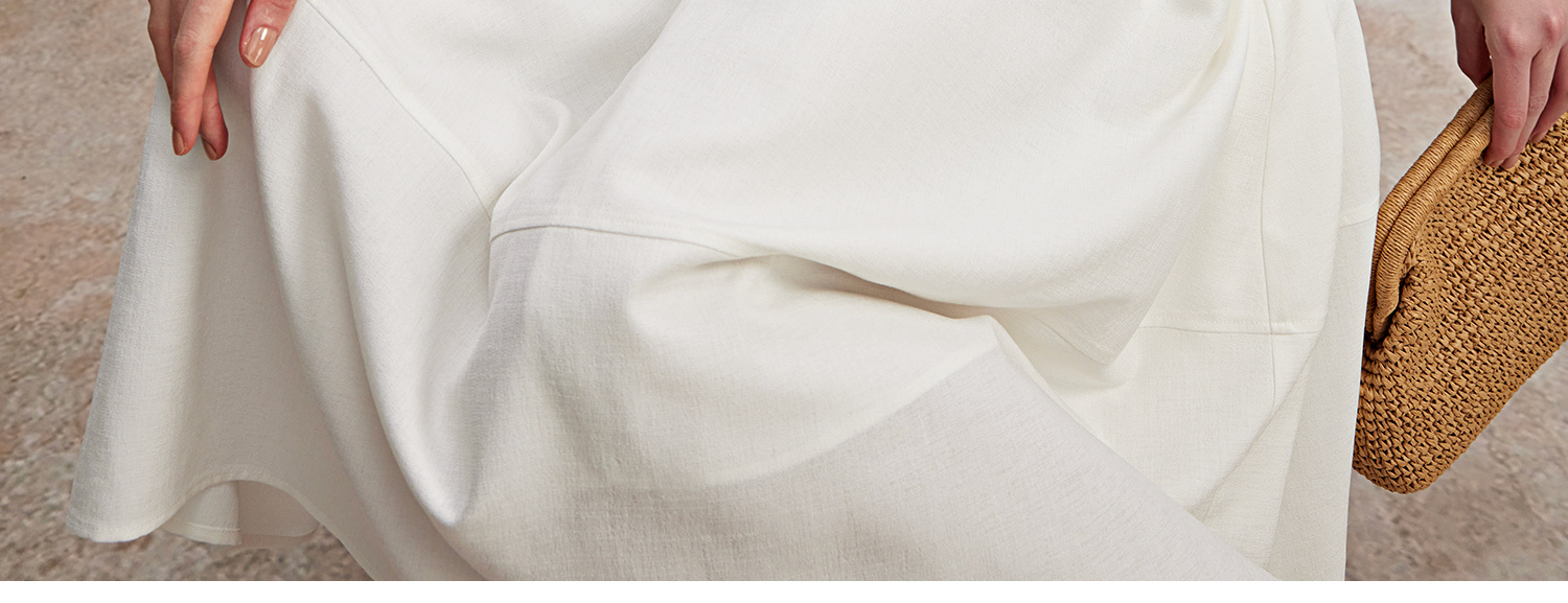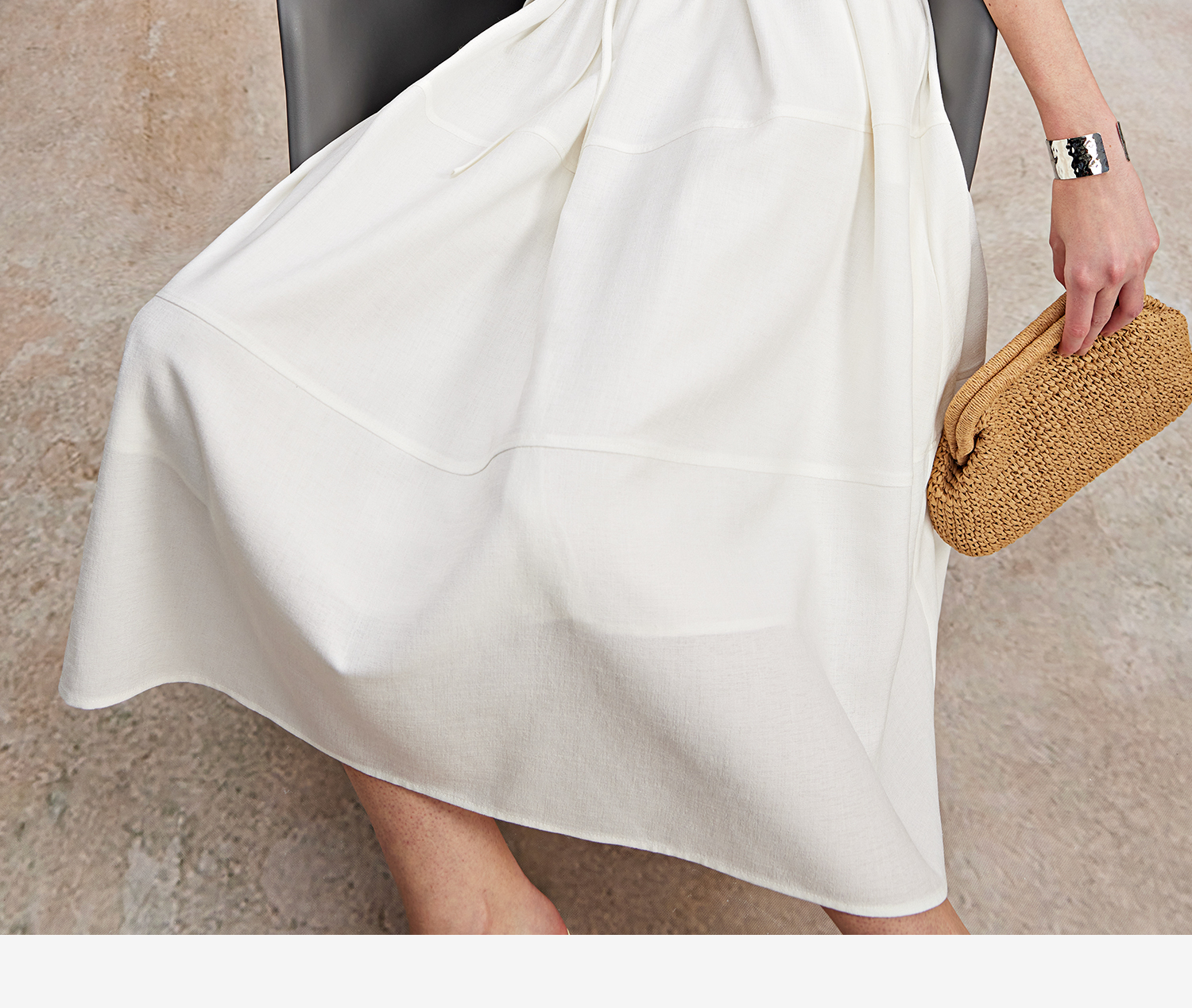 南法假日醋酸仿麻拼接罗纹简约短上衣/分割设计伞裙2025夏T2502018