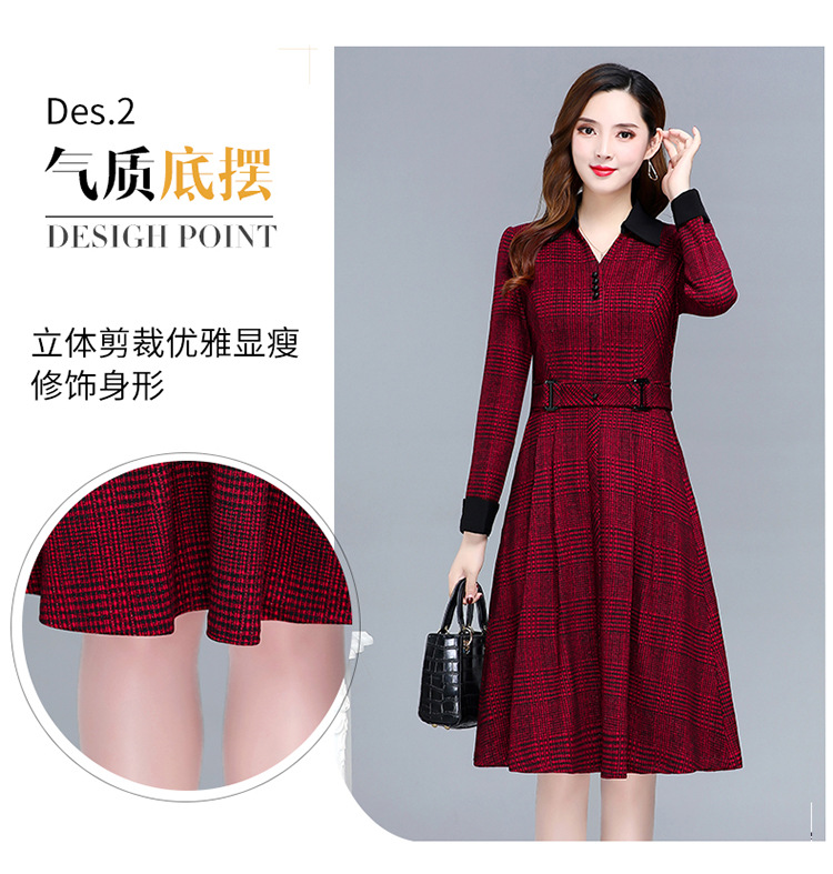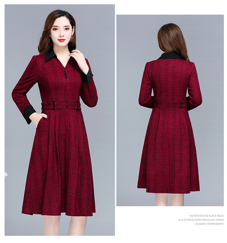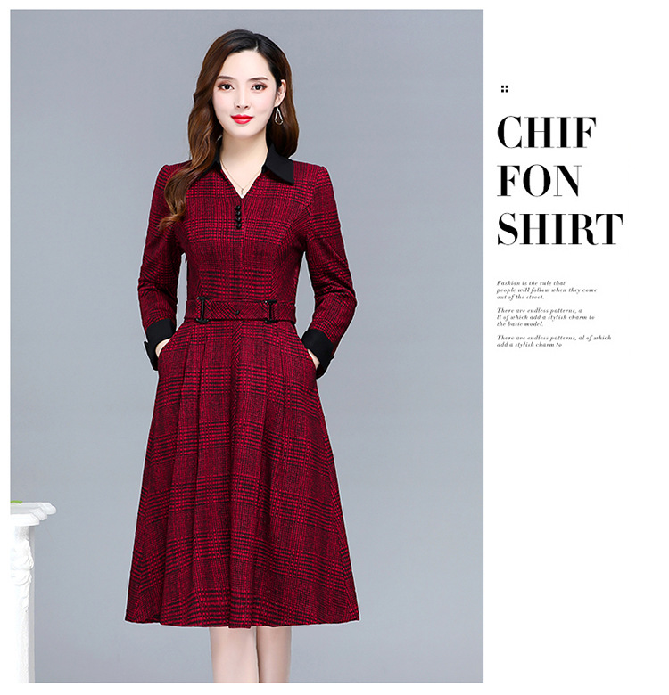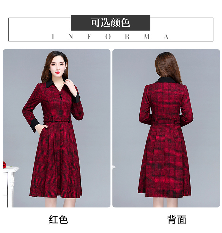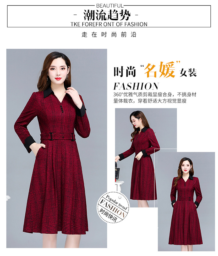 QYM-XY-22XMY331-Y条纹格子连衣裙中长款口袋A字裙厚款春秋季新款时尚连衣裙