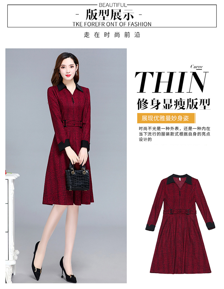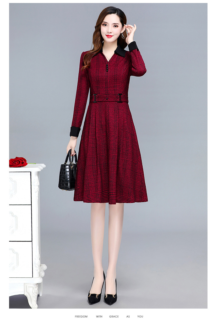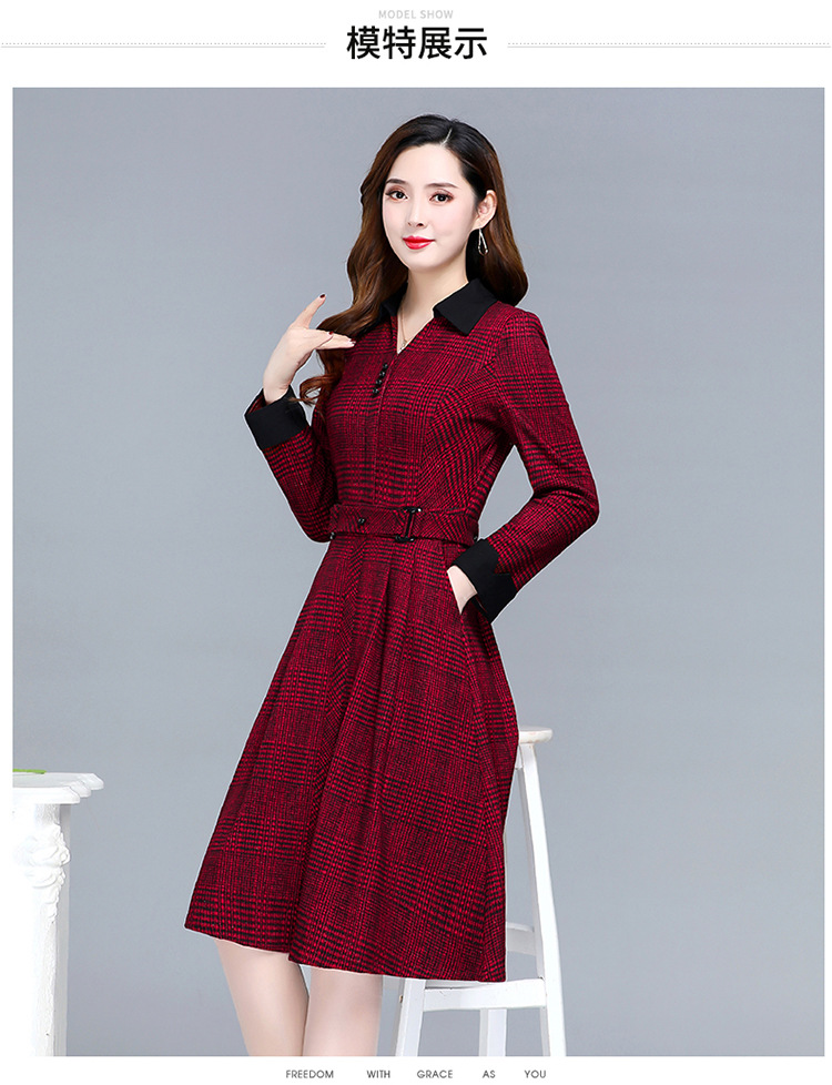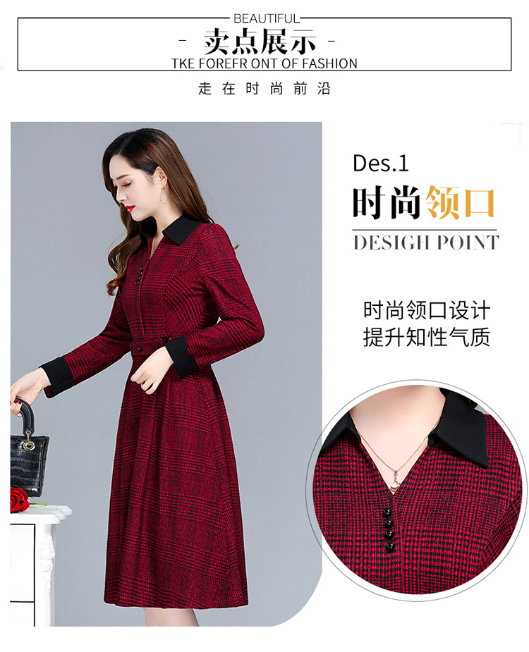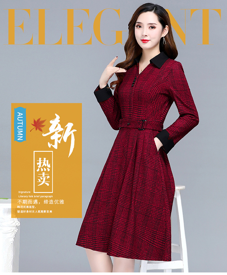 QYM-XY-22XMY331-Y条纹格子连衣裙中长款口袋A字裙厚款春秋季新款时尚连衣裙