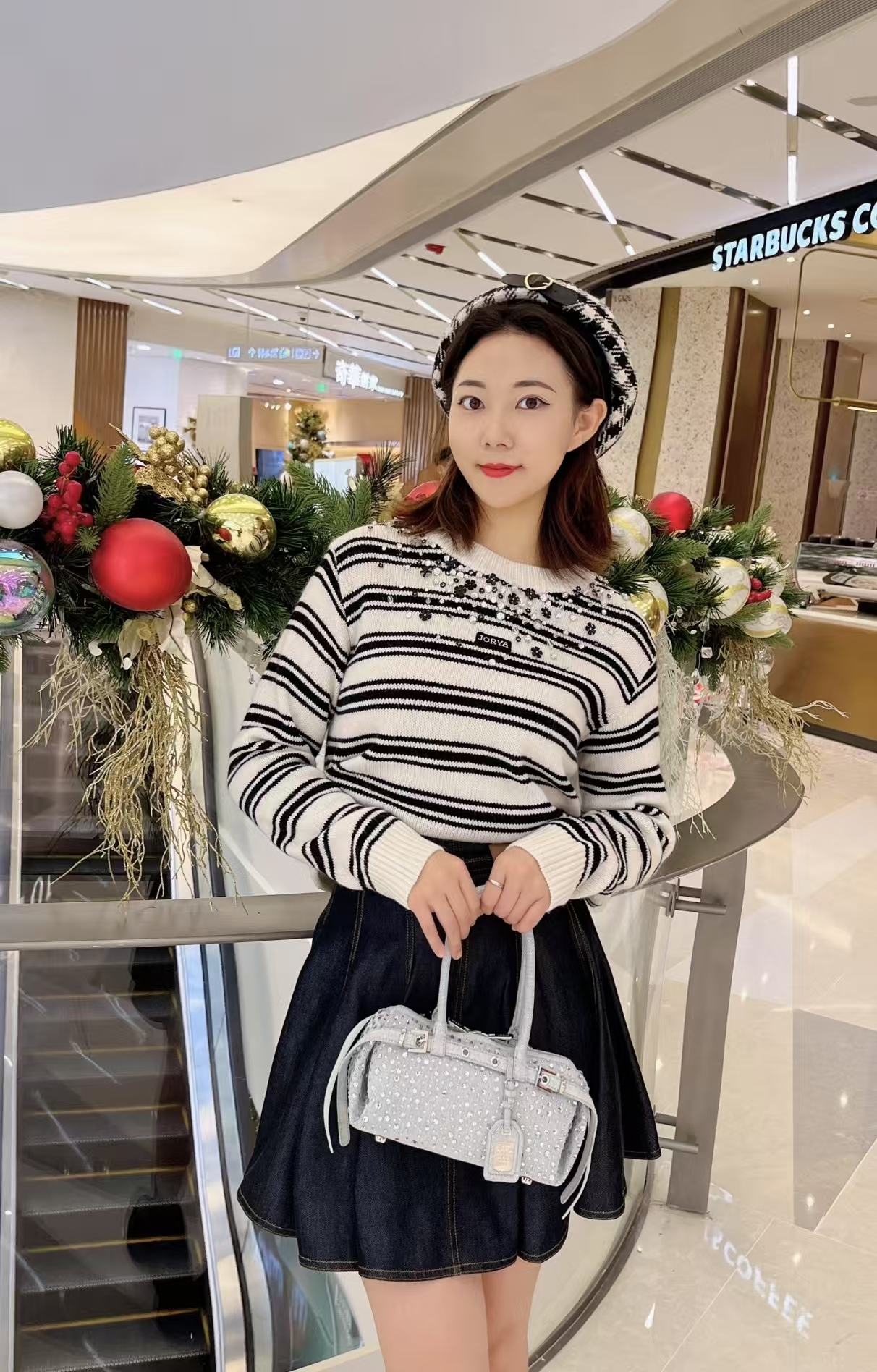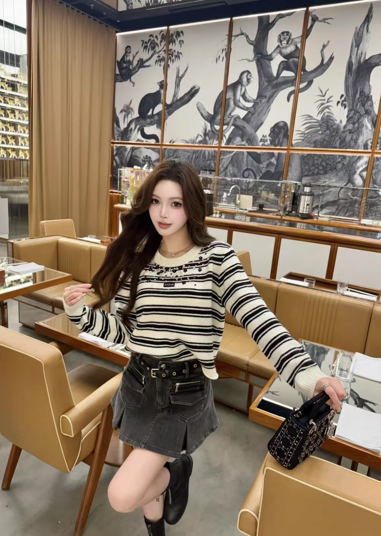 JR2025春季新款黑白条针织衫 R104002C