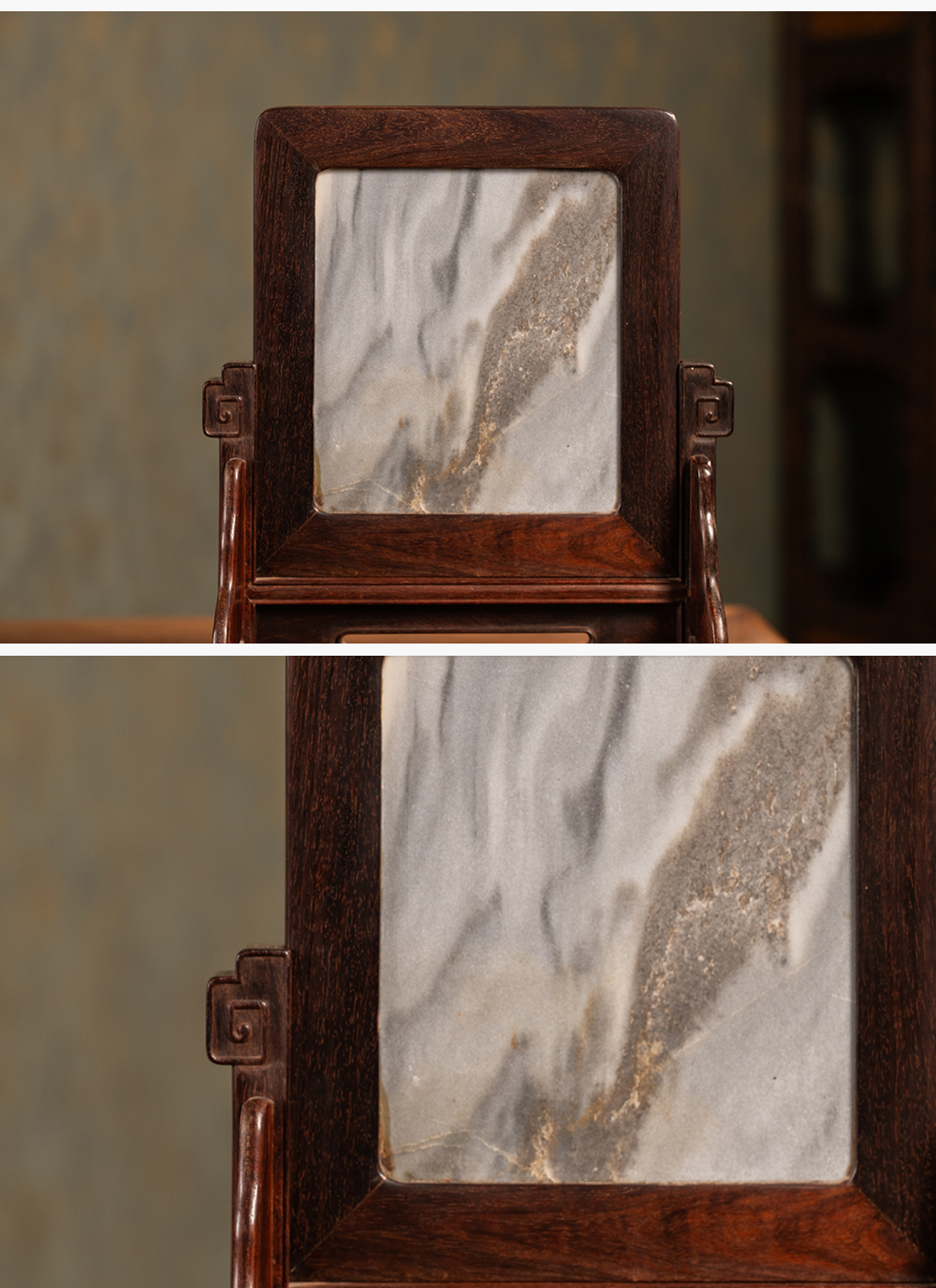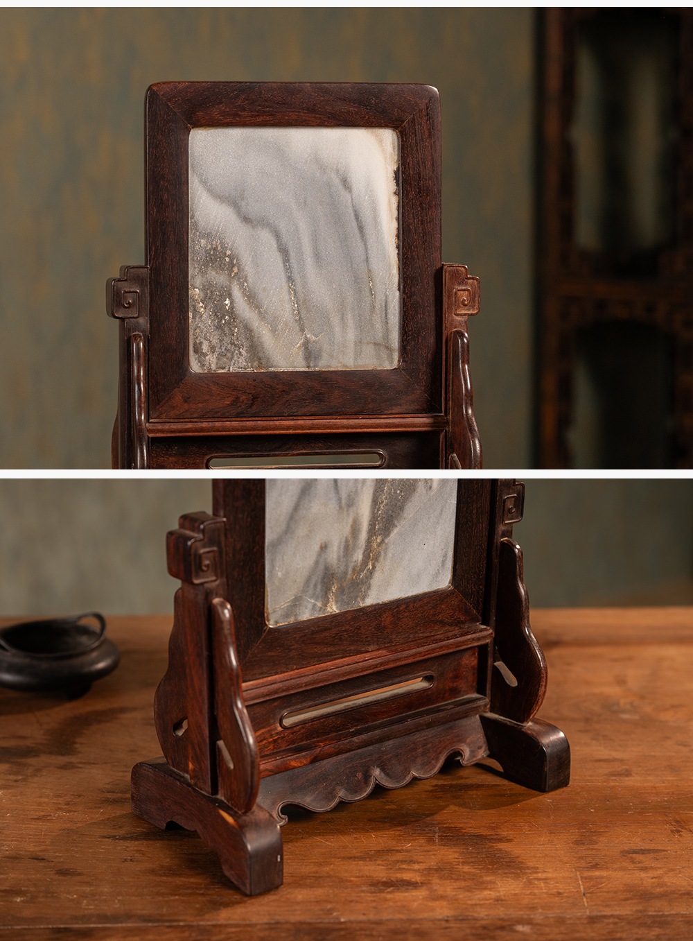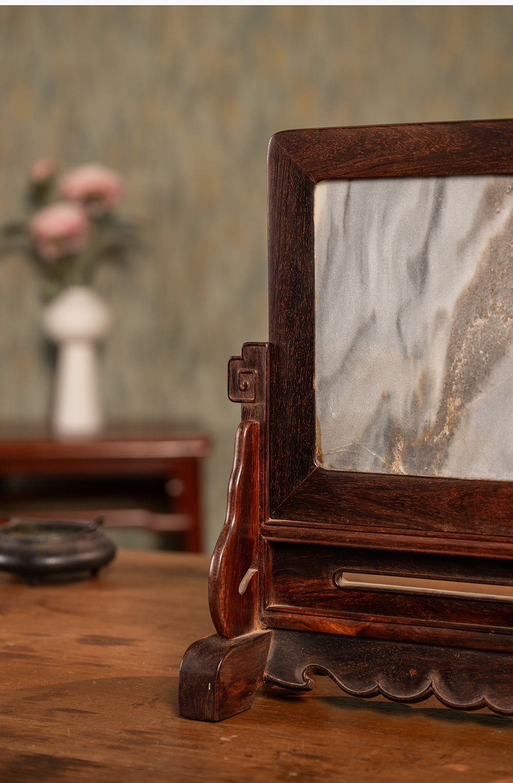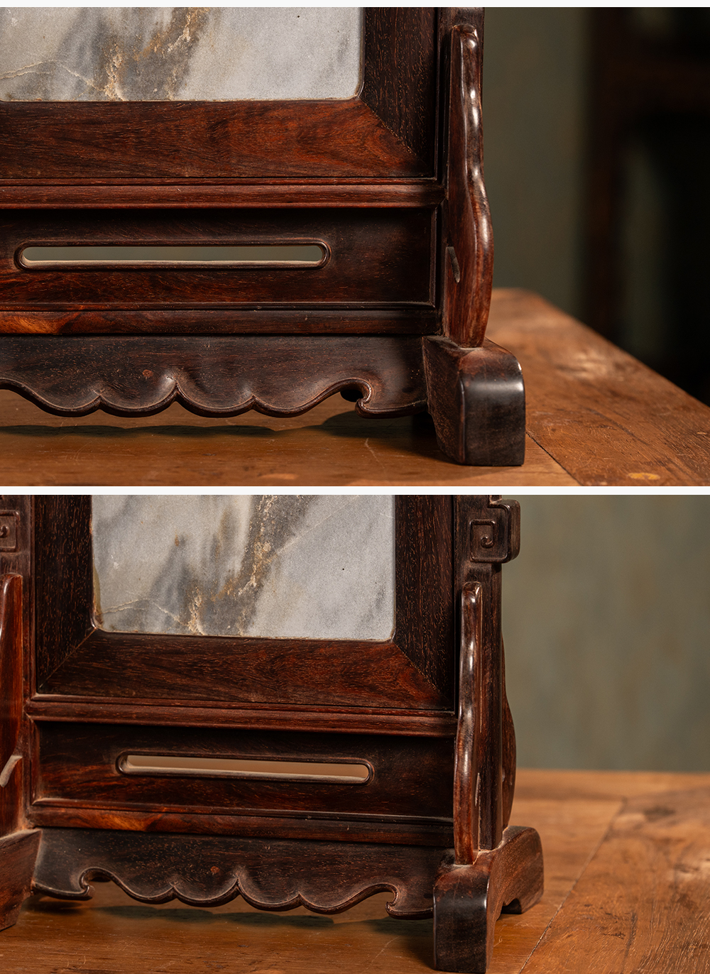 二十世纪 紫檀镶云石插屏