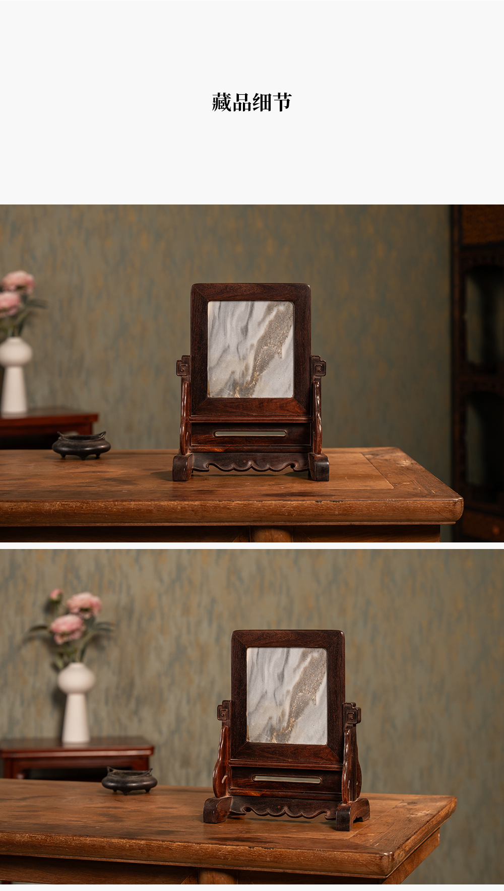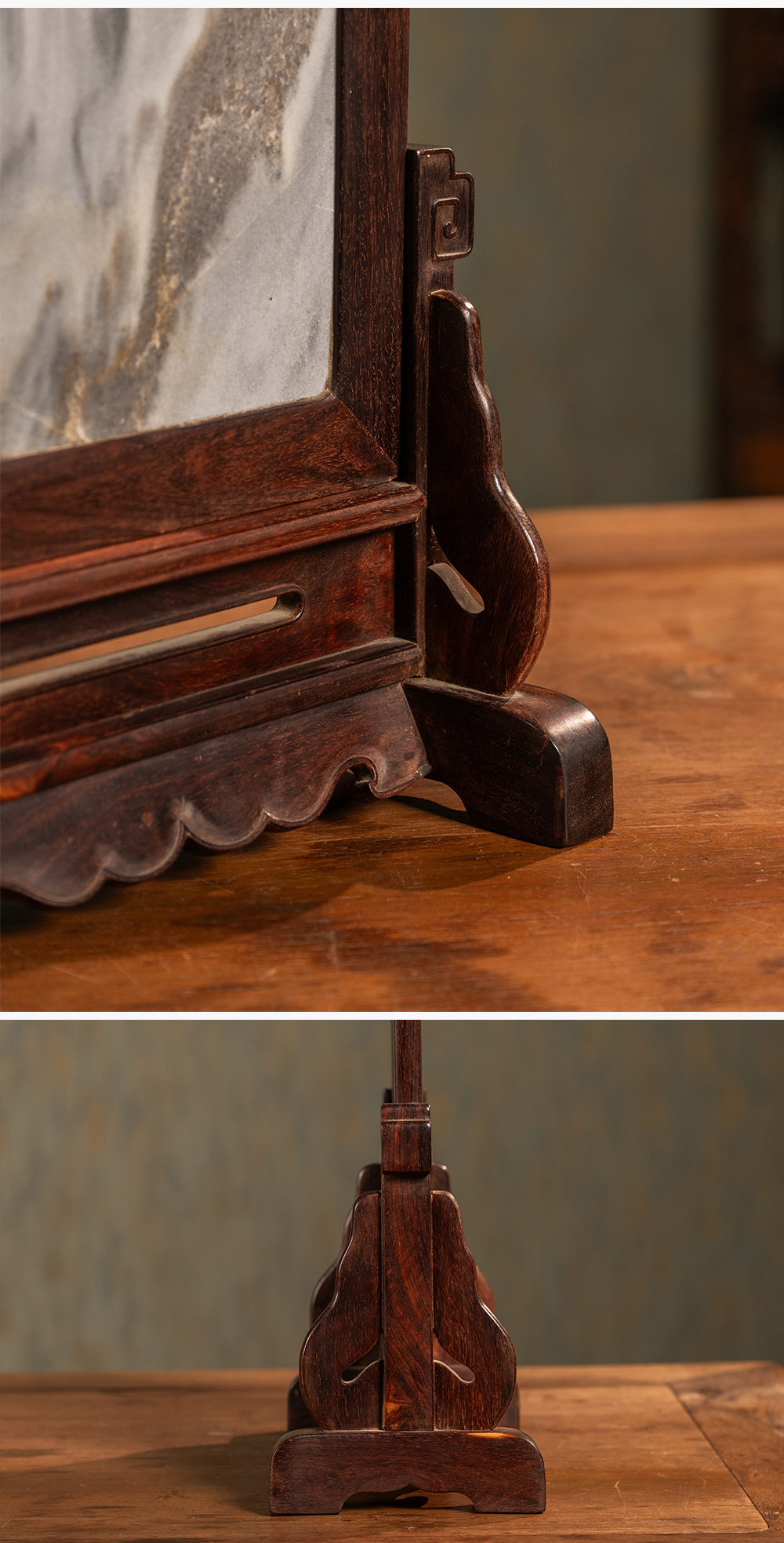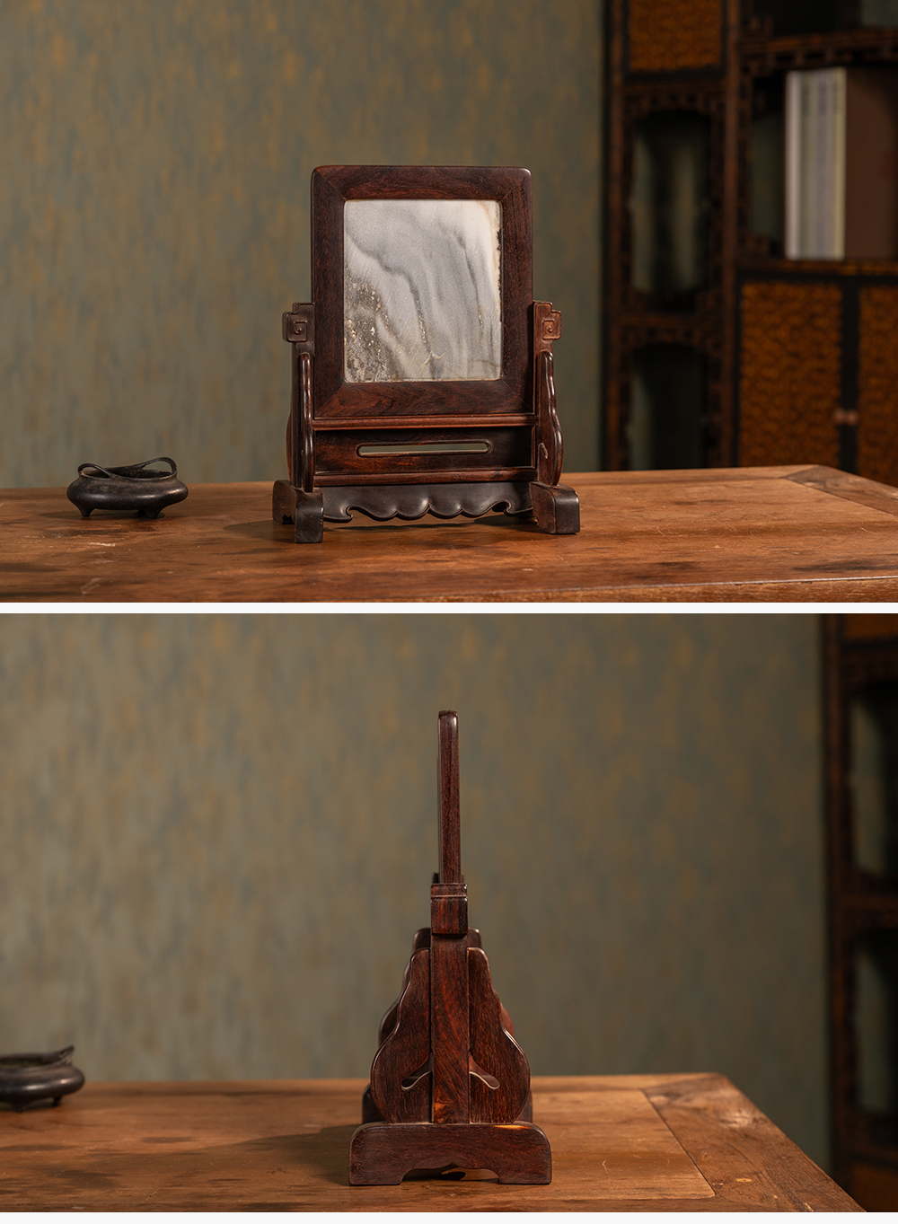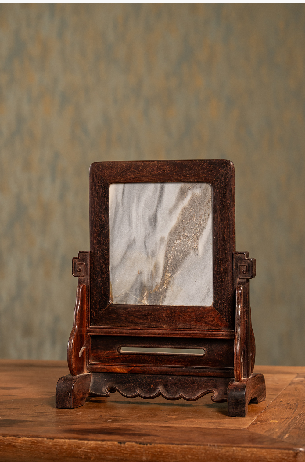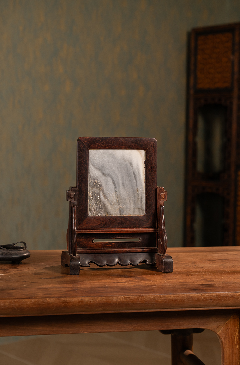 二十世纪 紫檀镶云石插屏