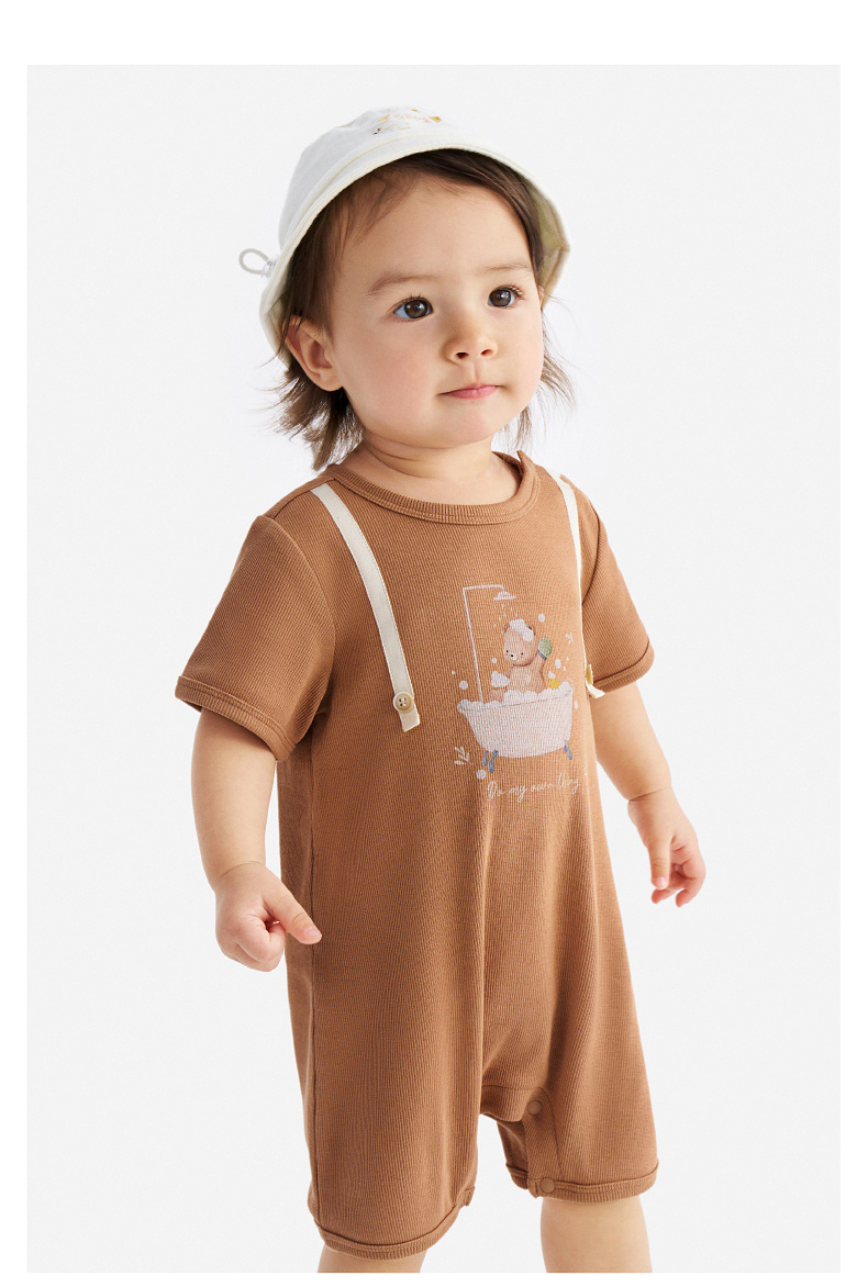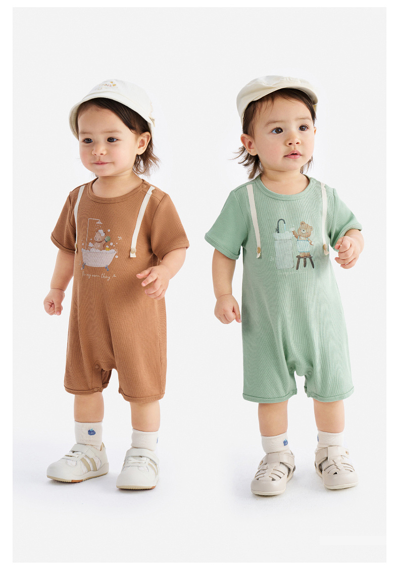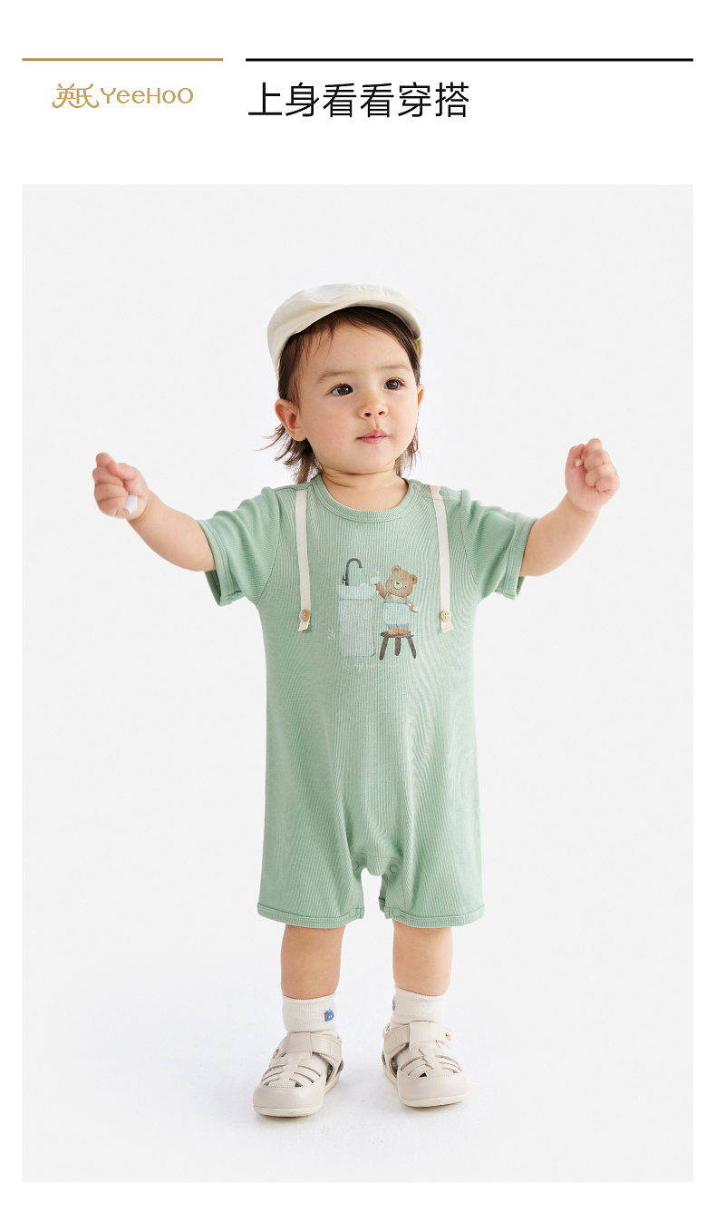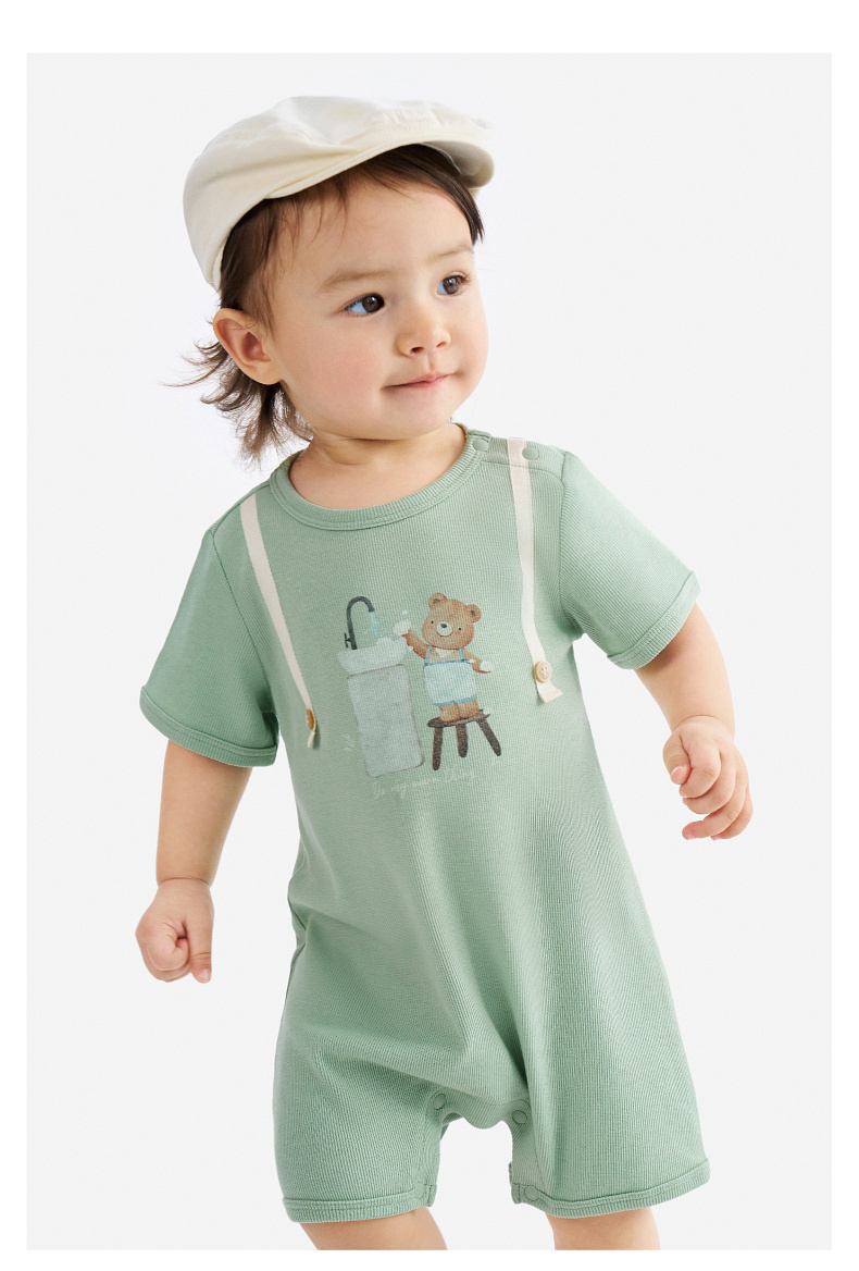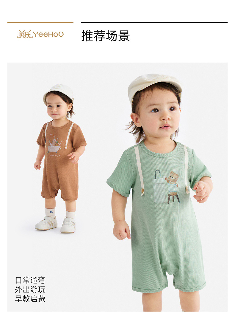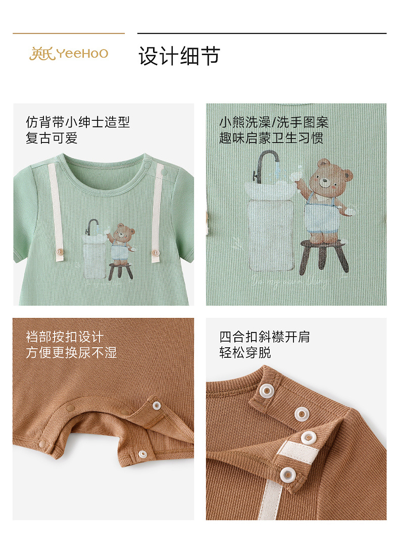 英氏婴儿衣服夏季男宝宝短袖连身衣卡通印花可爱薄款连体衣休闲