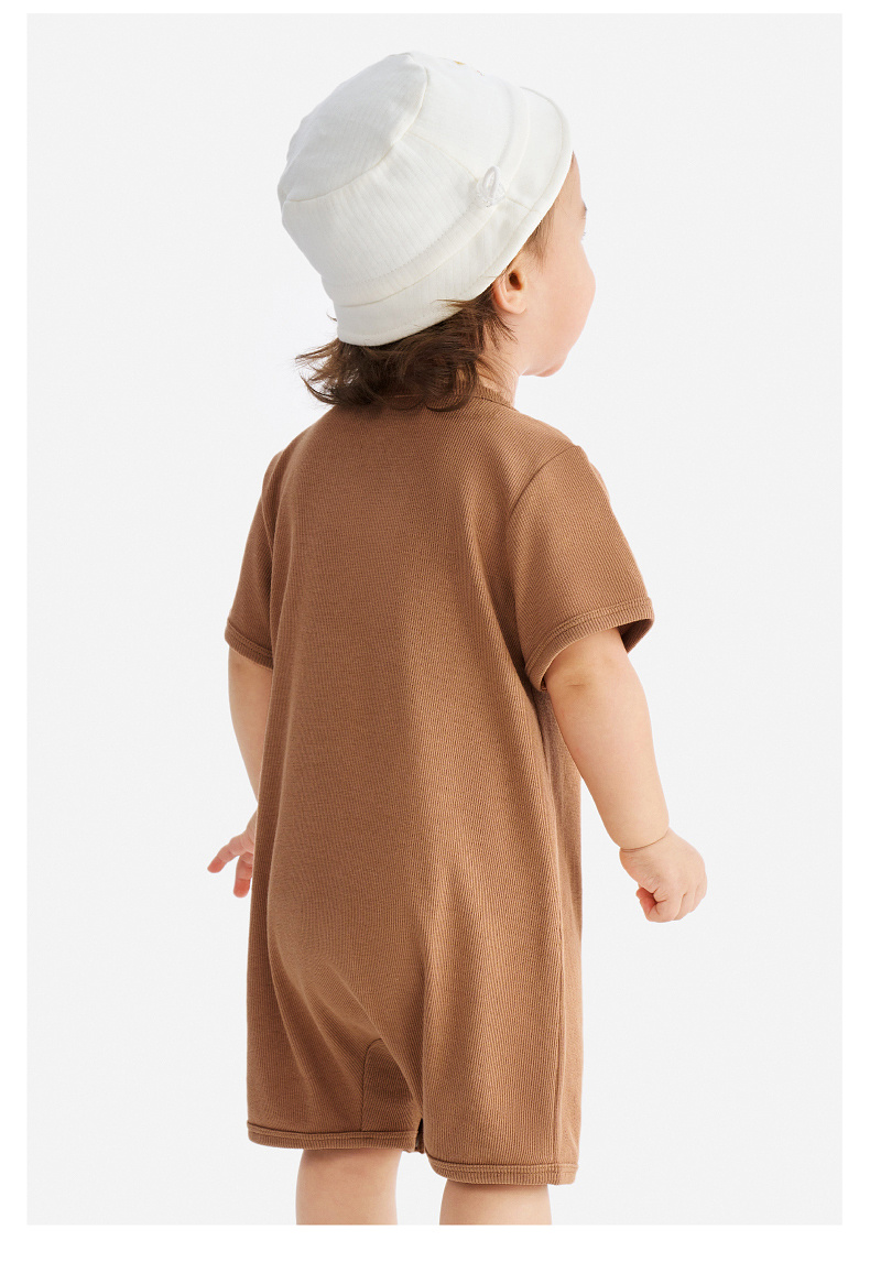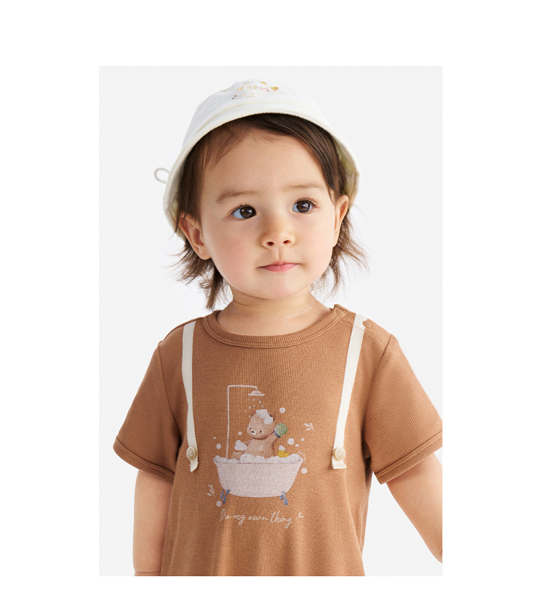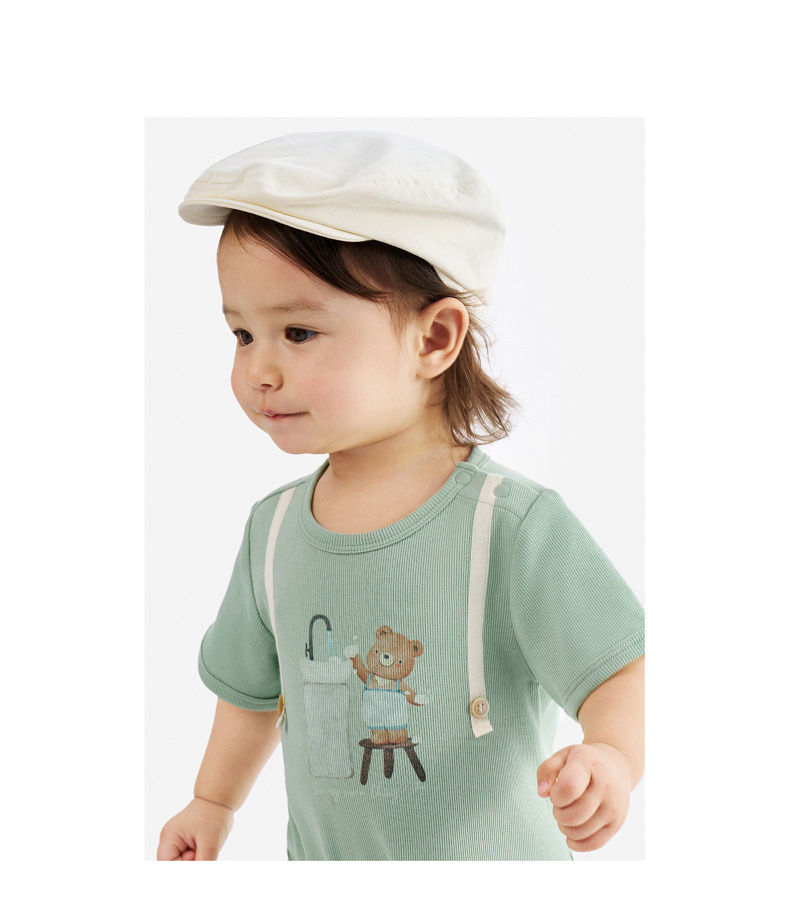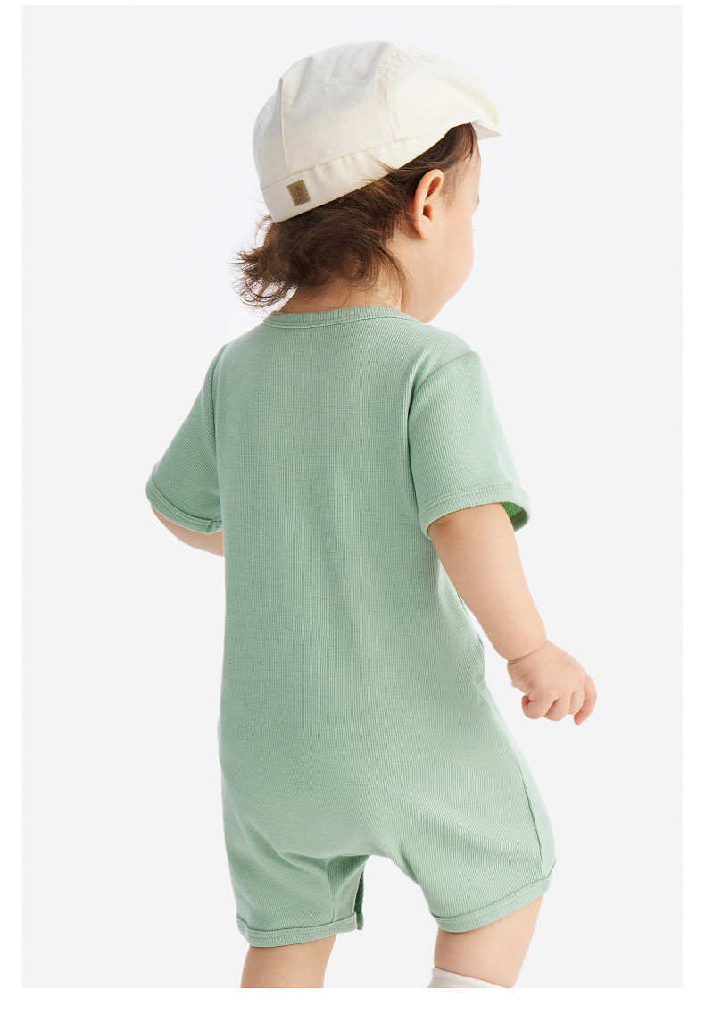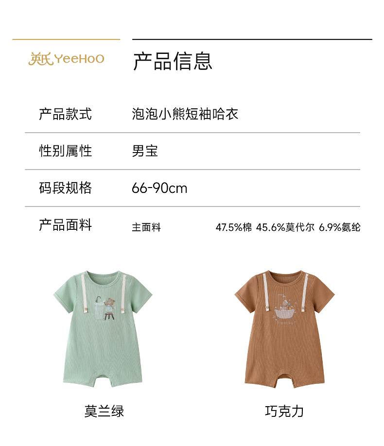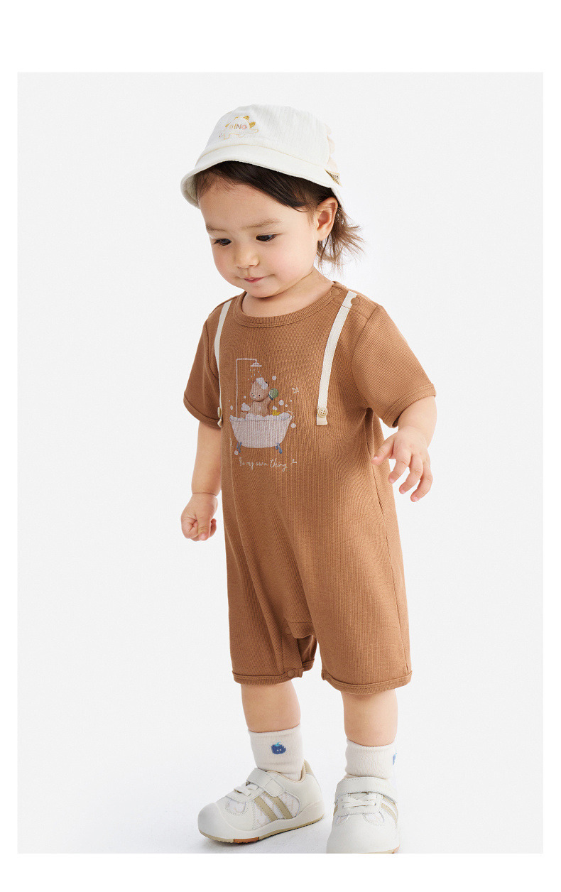 英氏婴儿衣服夏季男宝宝短袖连身衣卡通印花可爱薄款连体衣休闲