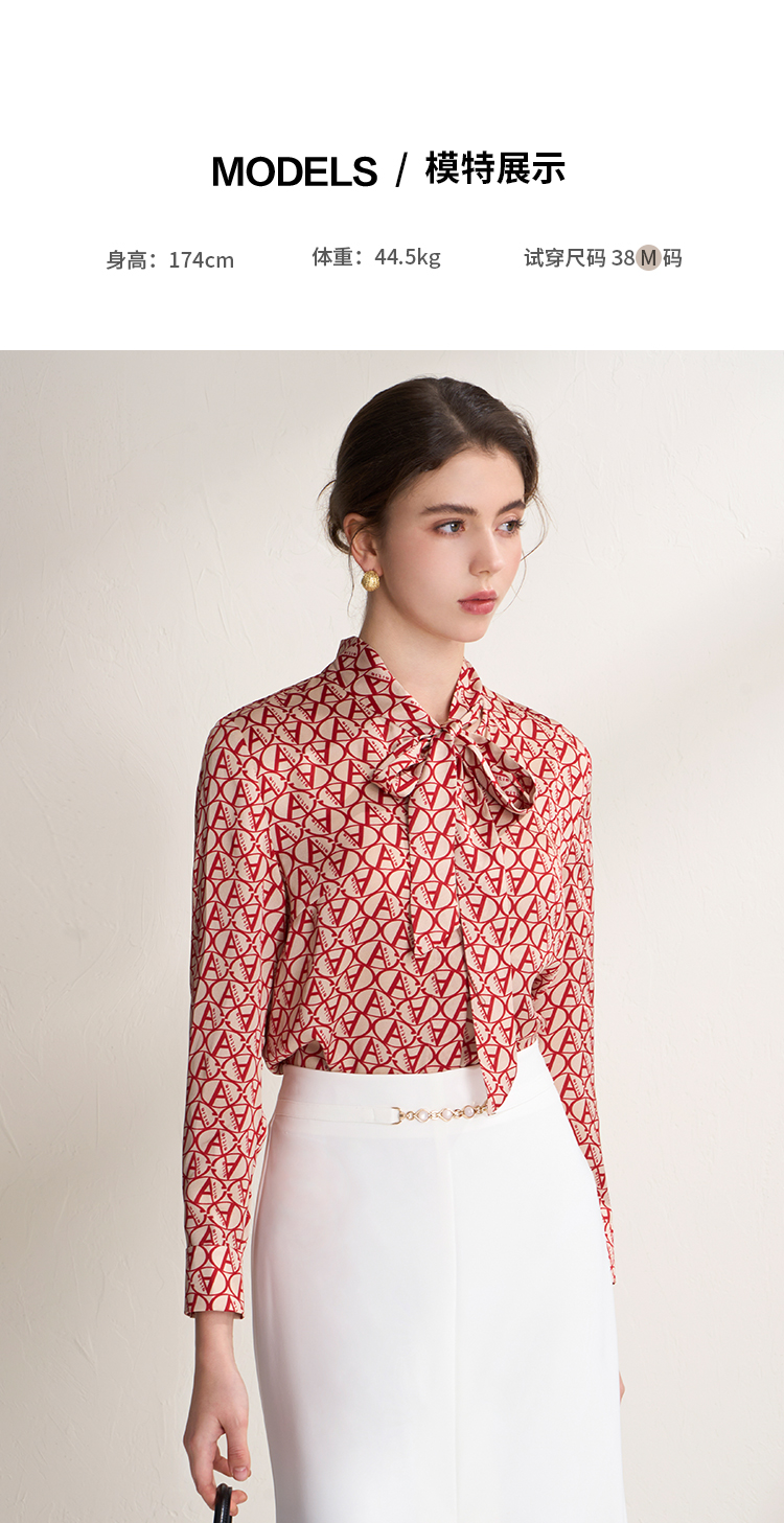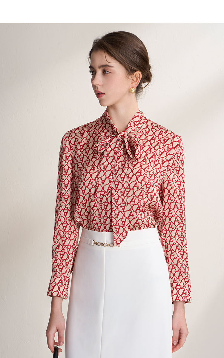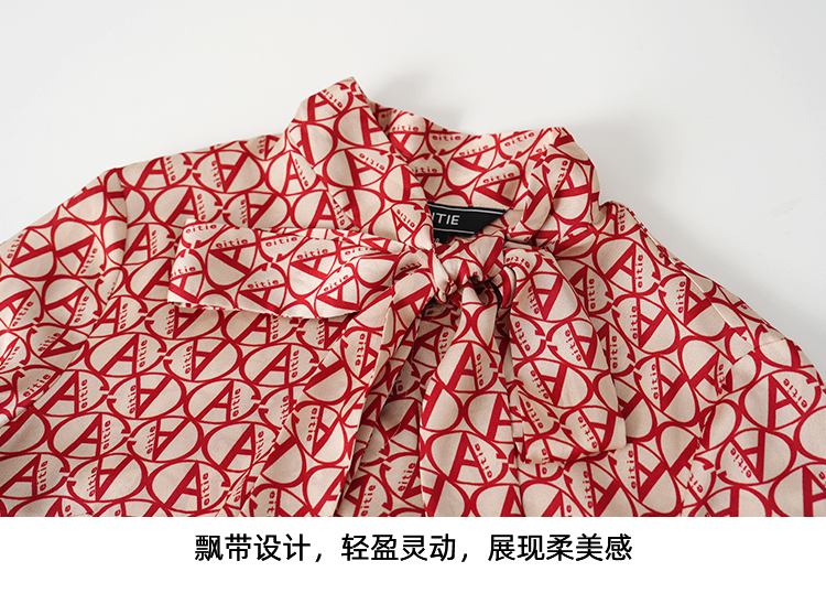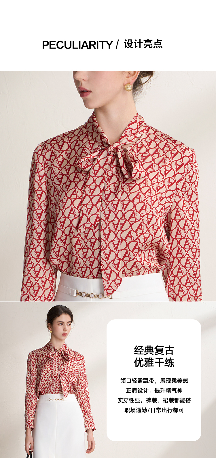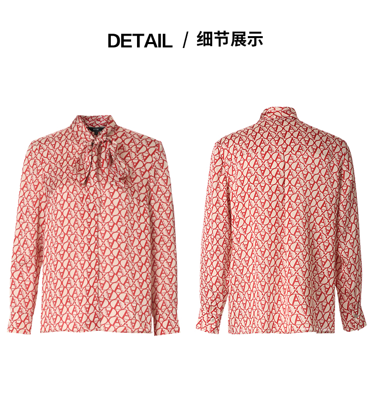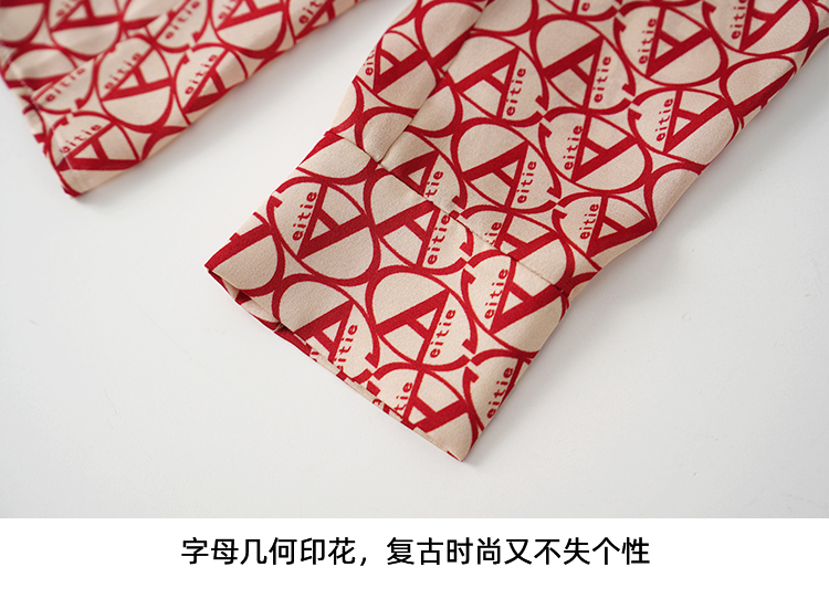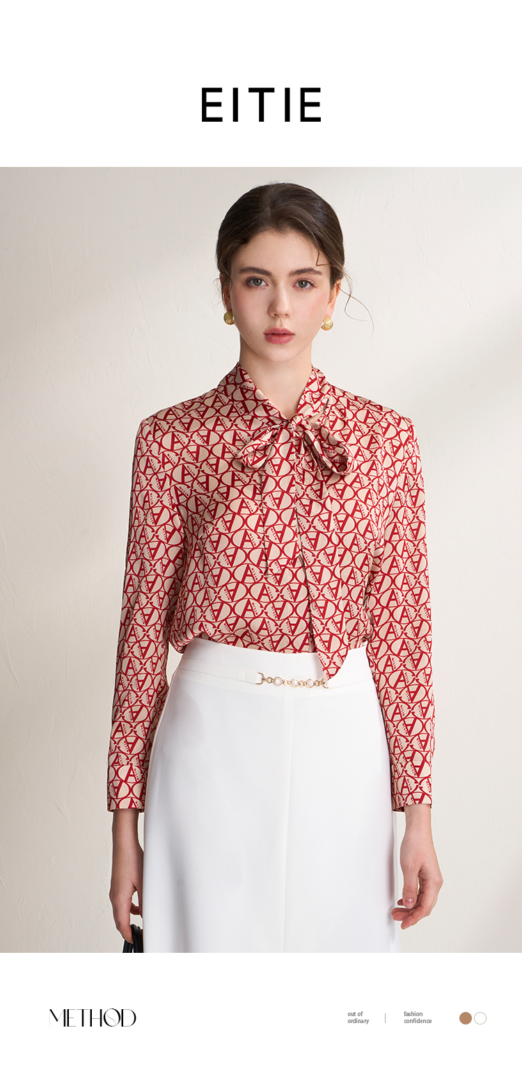 EITIE爱特爱复古飘带气质通勤直筒显瘦印花衬衫上衣2025春季新款8109806