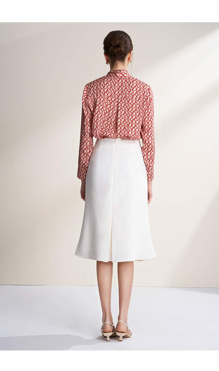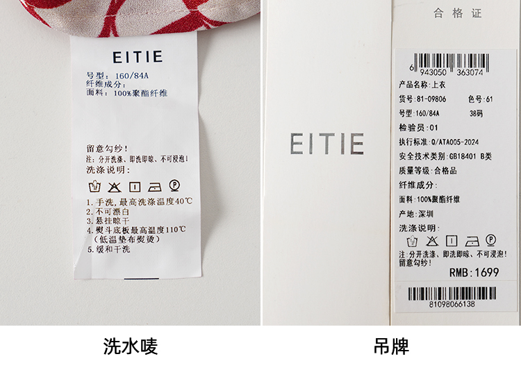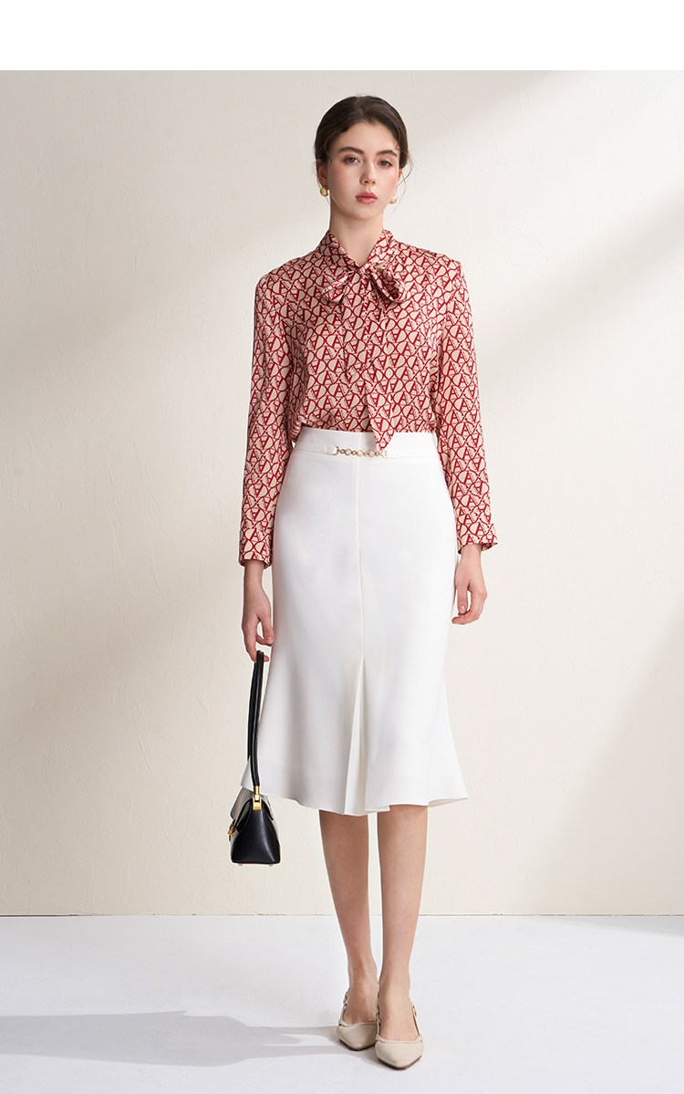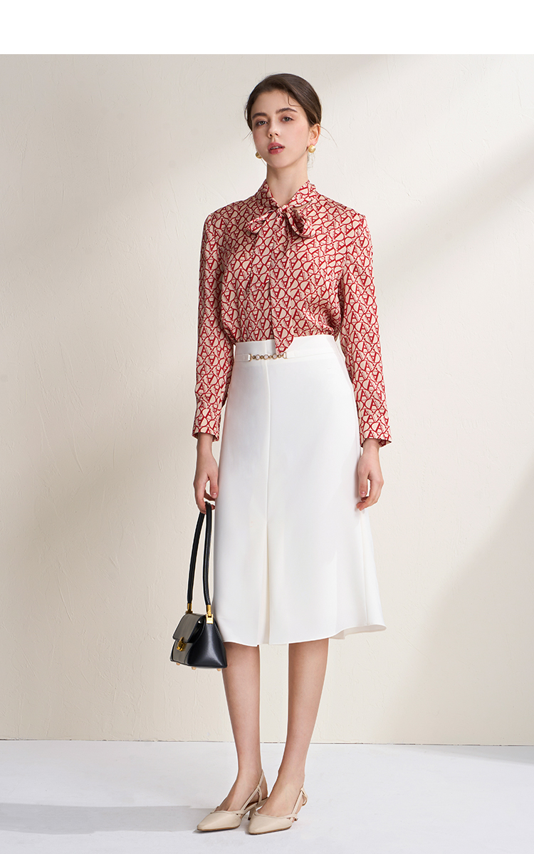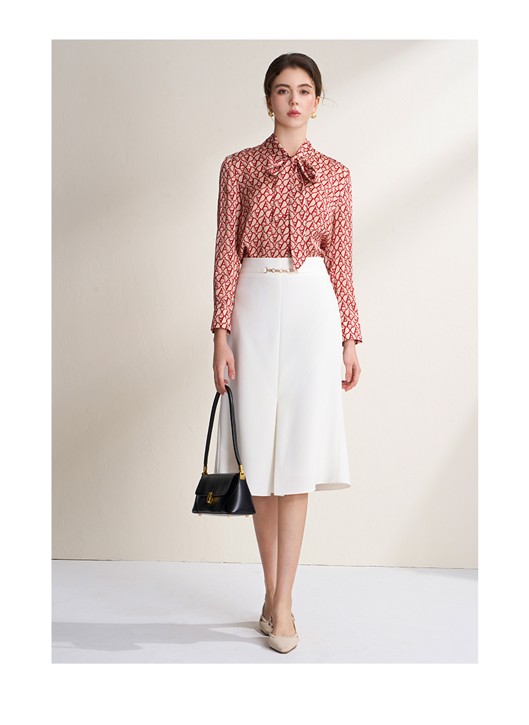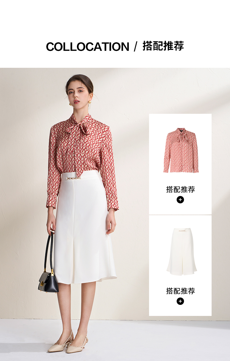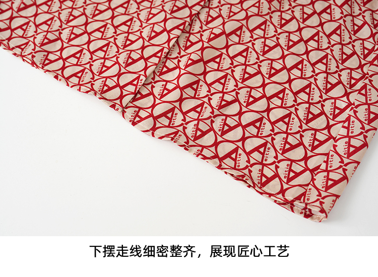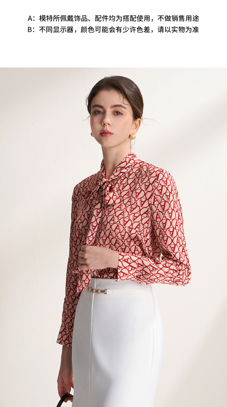 EITIE爱特爱复古飘带气质通勤直筒显瘦印花衬衫上衣2025春季新款8109806