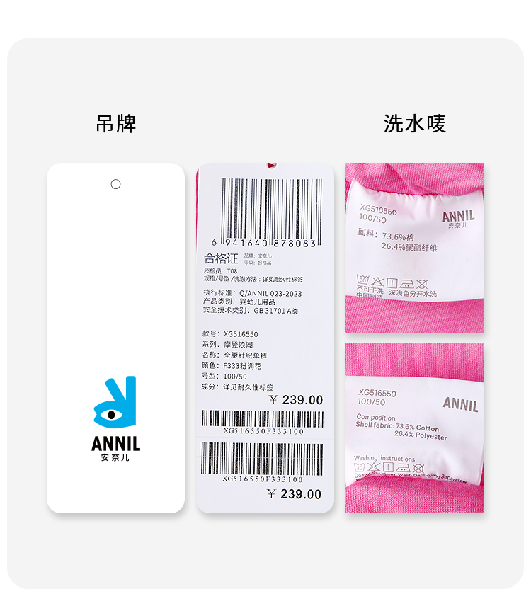 女童全腰SORONA针织单裤春季新款安奈儿童装实体店同款XG516550