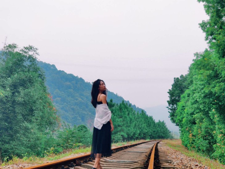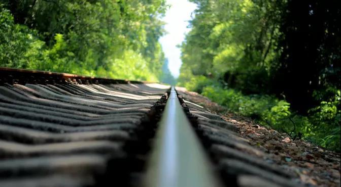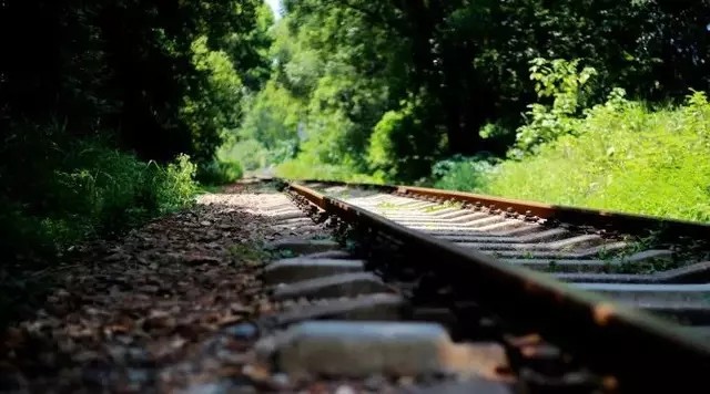 在笔直的铁路上空编织成仿佛能穿越时空的隧道