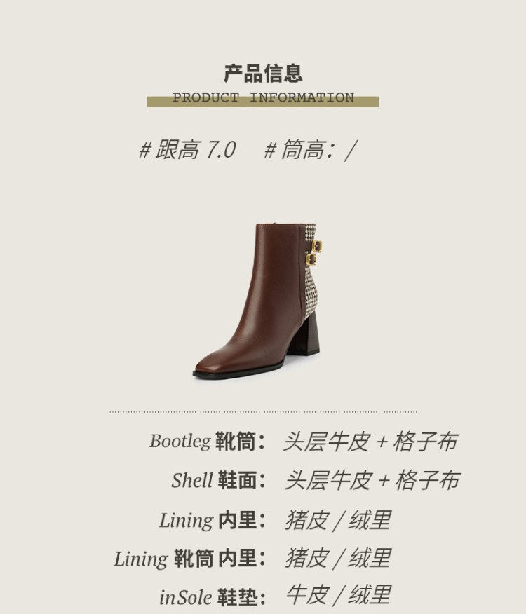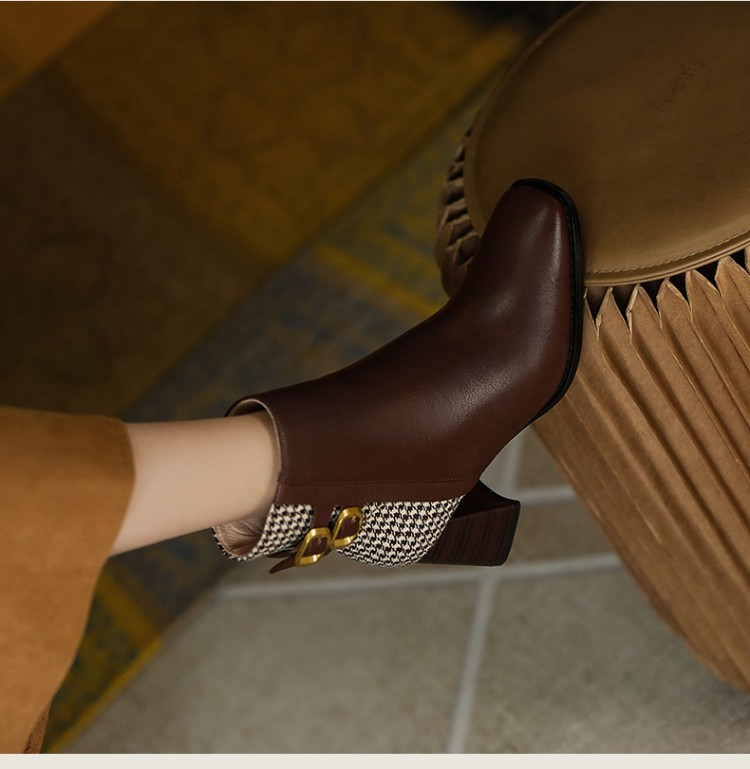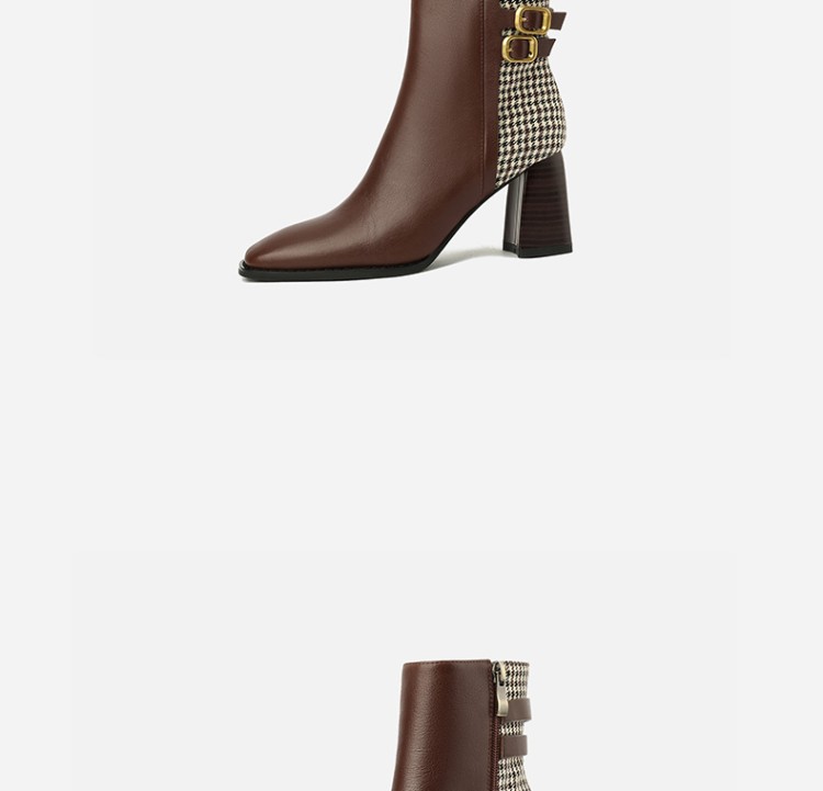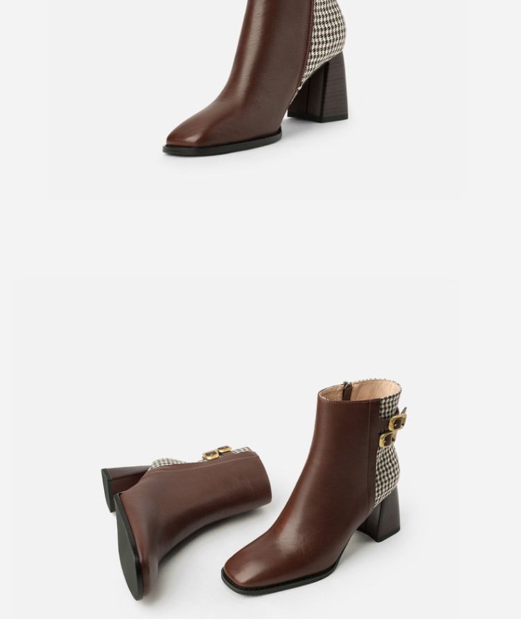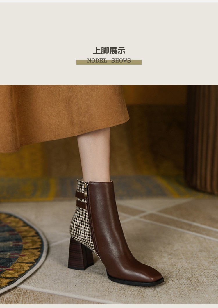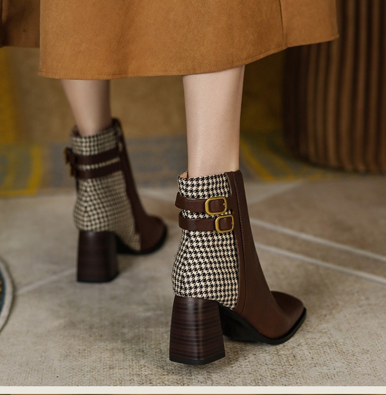 法式复古,格子拼色高跟短靴马丁靴MCC-C1553