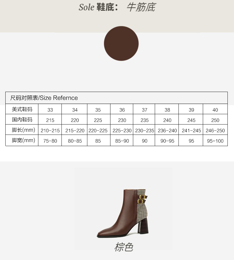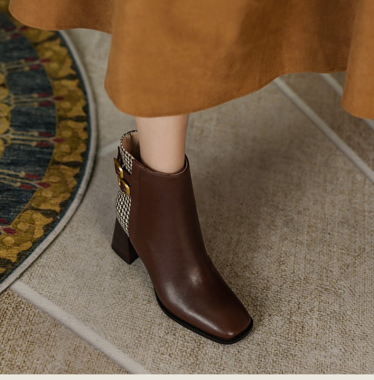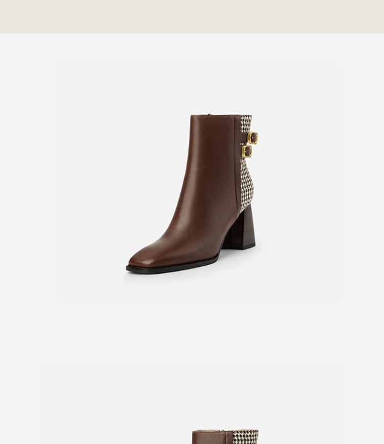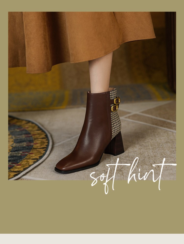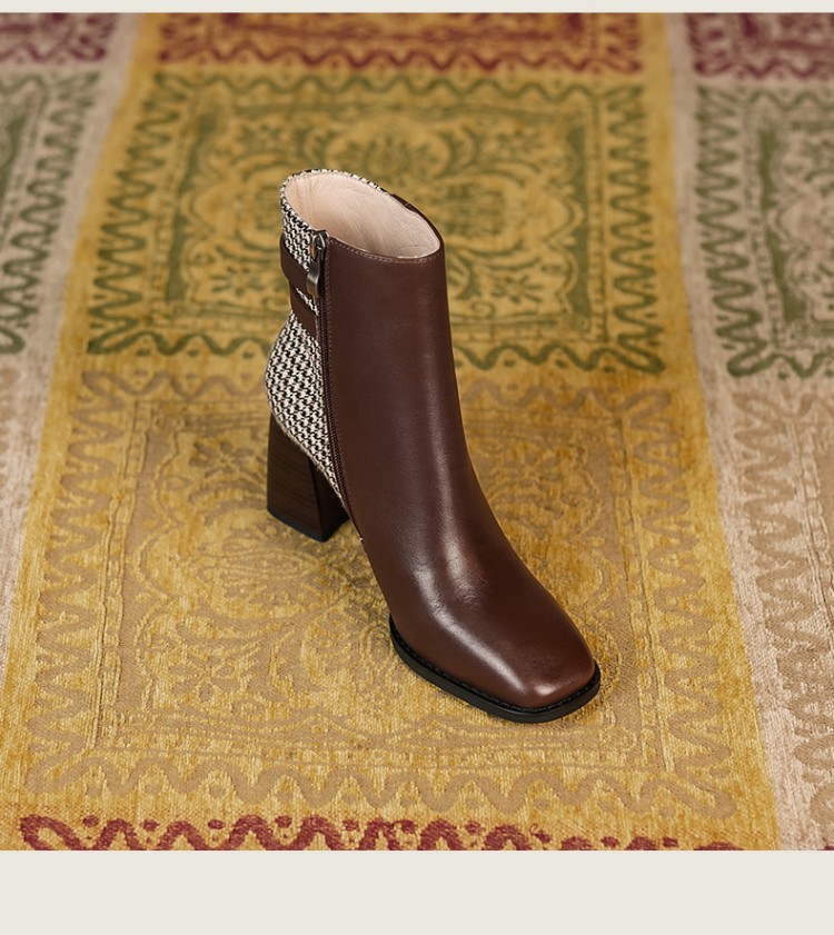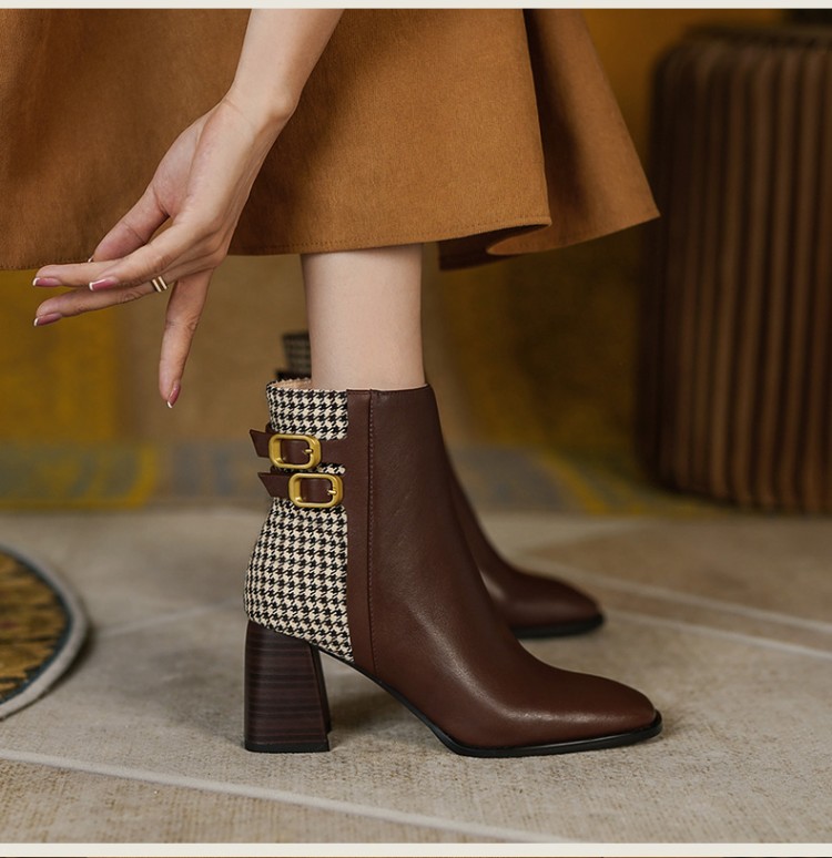 法式复古,格子拼色高跟短靴马丁靴MCC-C1553