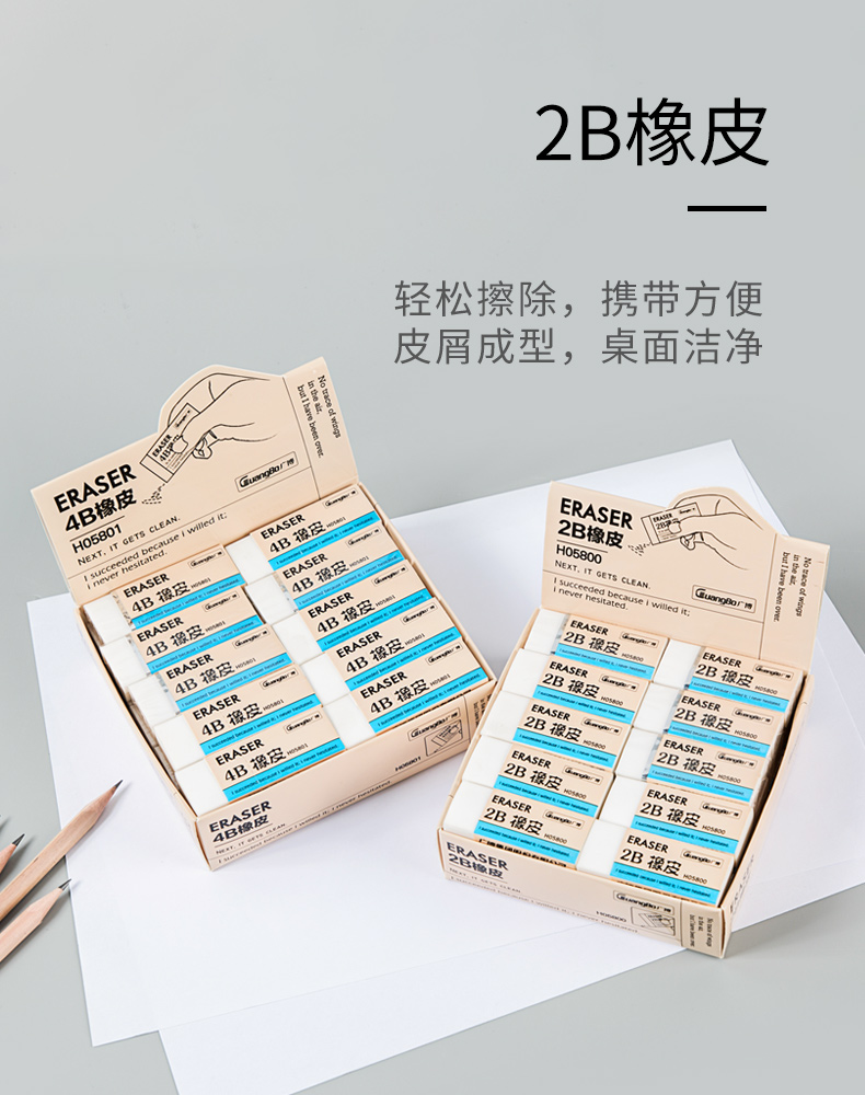 【广博】2b橡皮擦小学生专用4b美术橡皮擦儿童安全无毒不留痕专用可爱铅笔绘图考试象皮无痕不伤纸儿童素描无碎屑