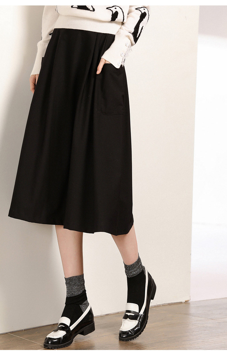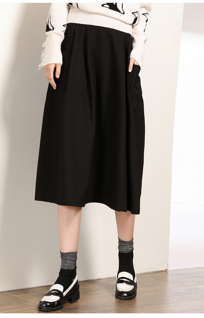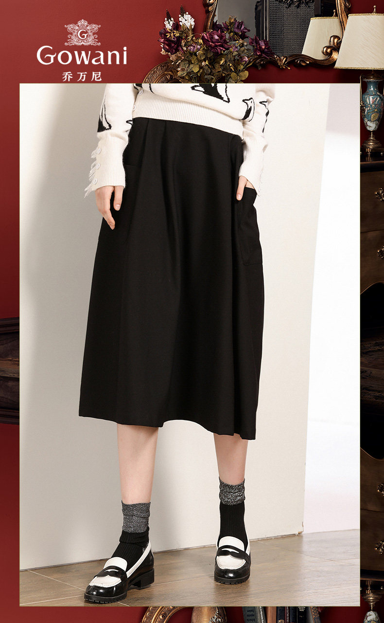 乔万尼半身裙女秋季黑色垂感休闲高腰显瘦a字伞裙中长款EN3D307