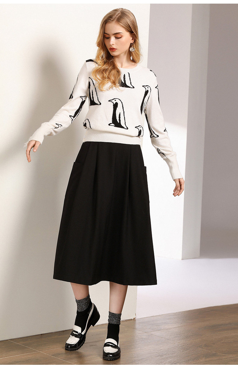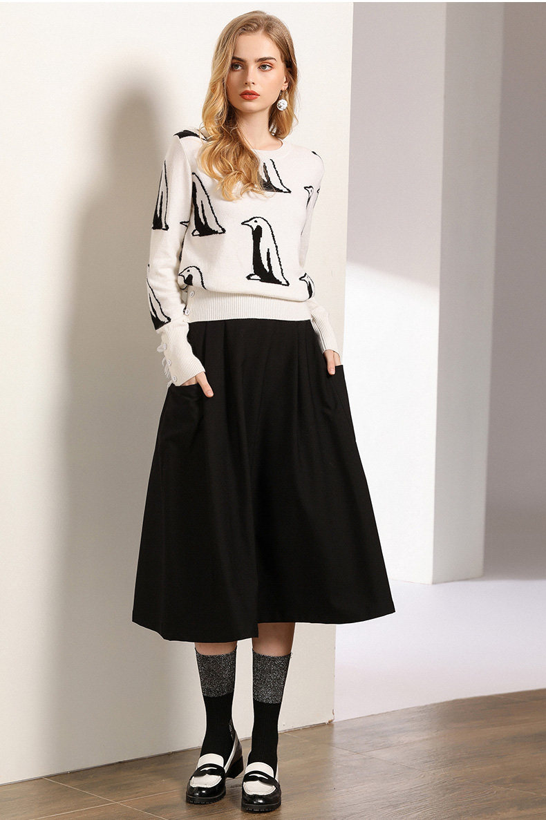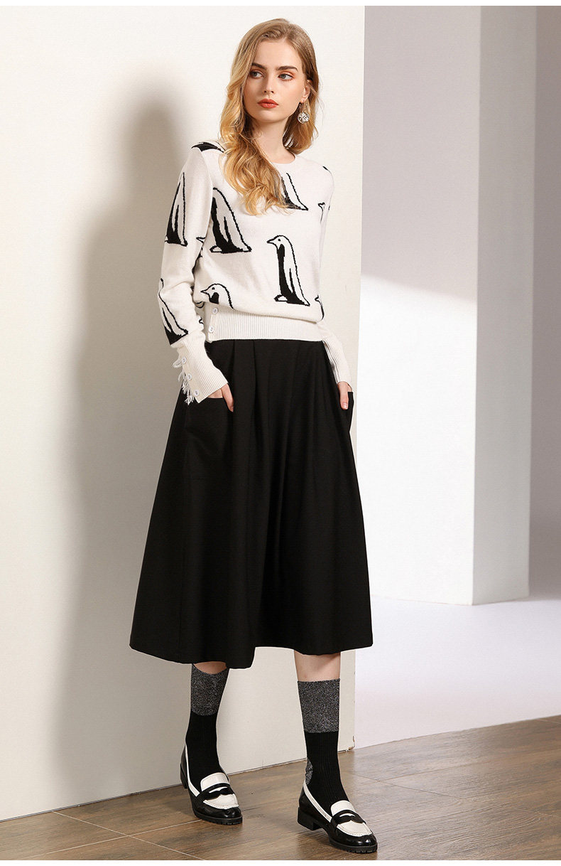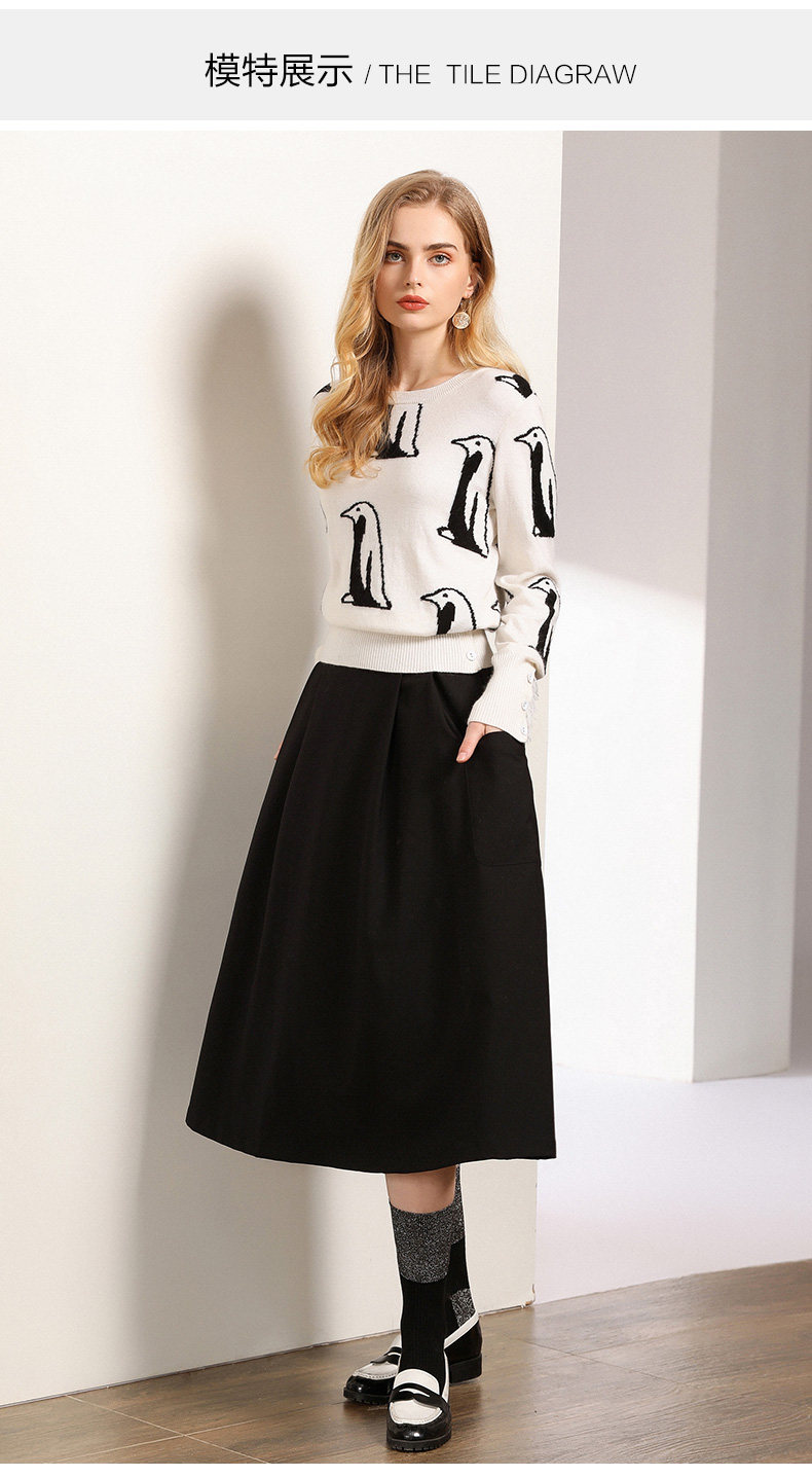 乔万尼半身裙女秋季黑色垂感休闲高腰显瘦a字伞裙中长款EN3D307