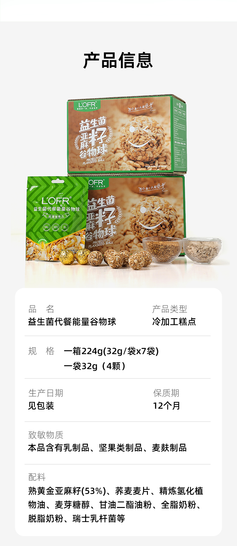 【新派即食营养代餐,好吃不怕长肉】LOFR乐乎益生菌代餐谷物球高蛋白高膳食纤维精选加拿大进口黄金亚麻籽
